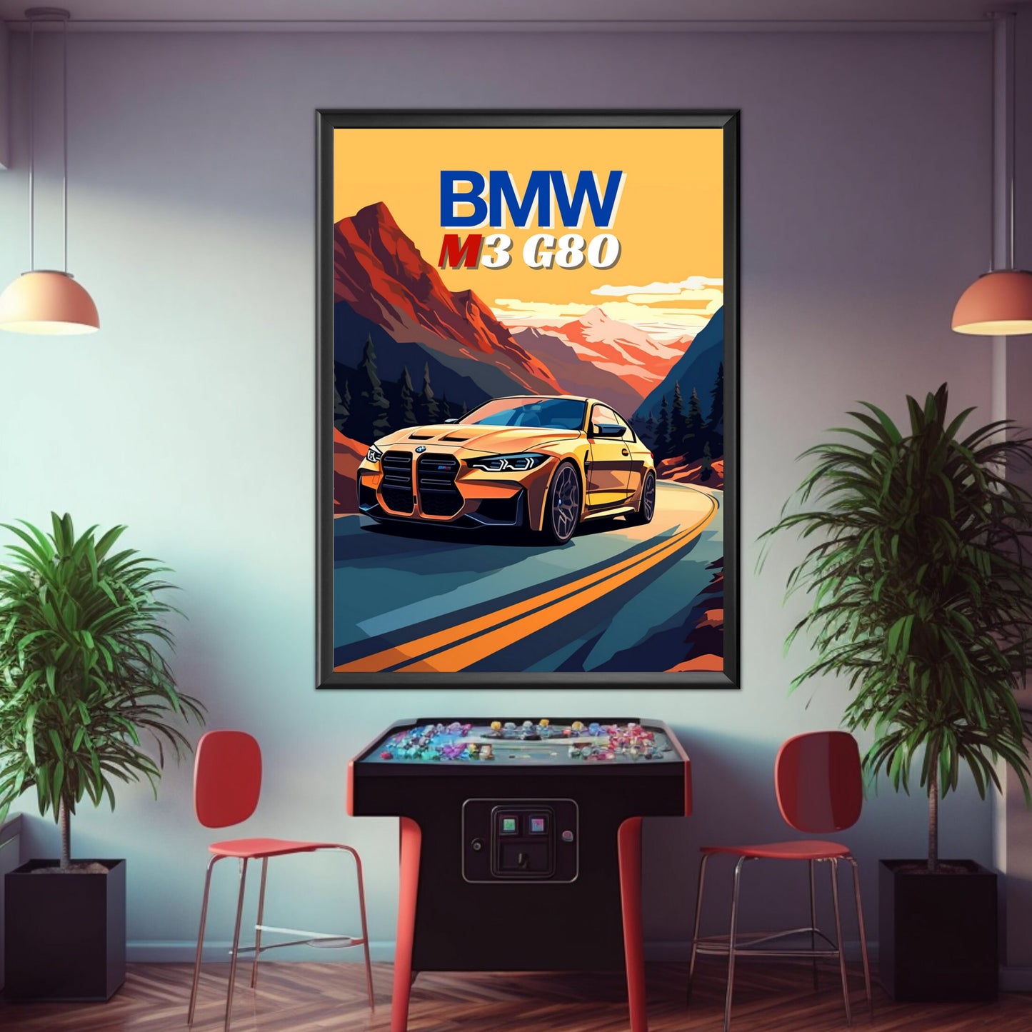 Impression BMW M3 G80 – Décoration murale moderne de voiture de sport allemande