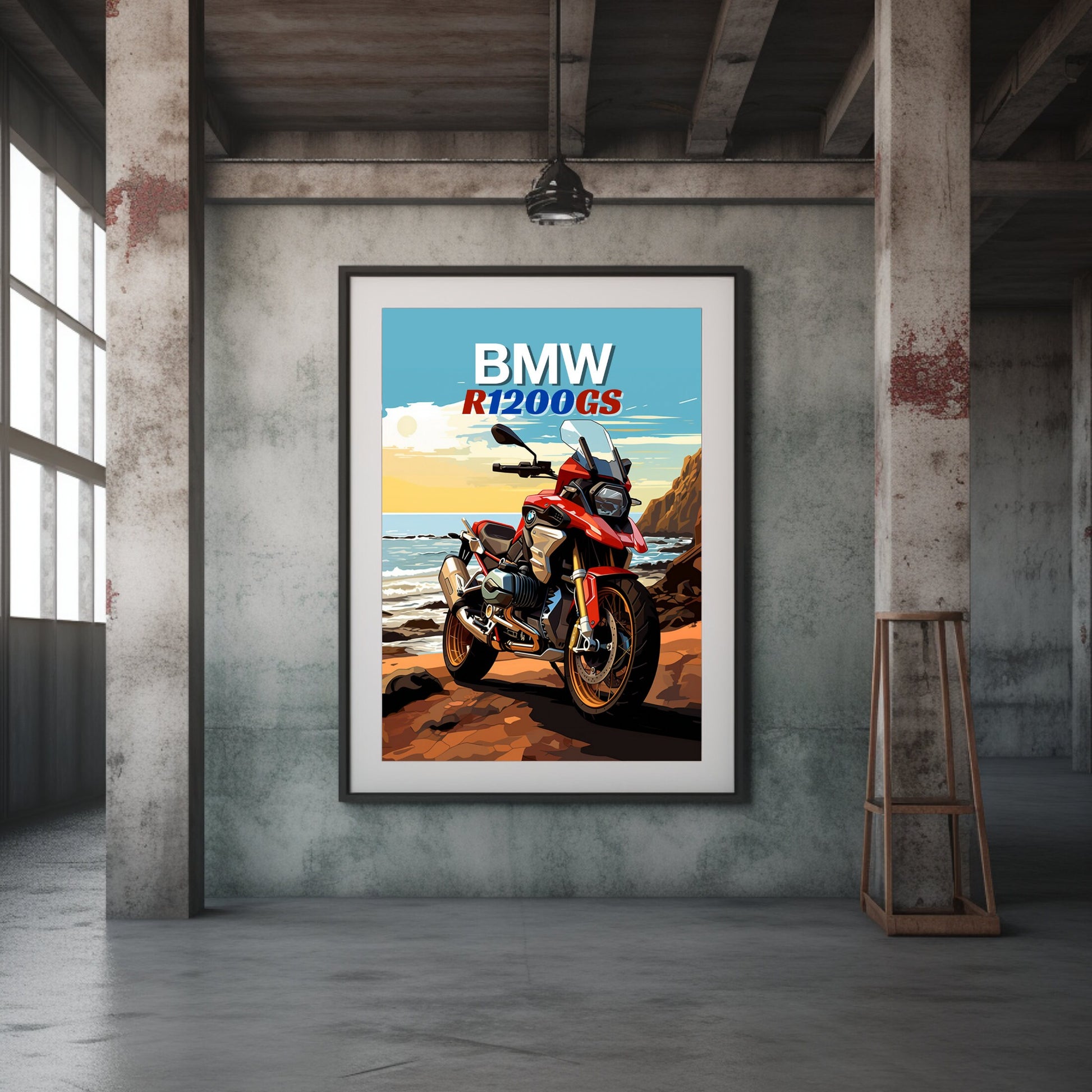 Célébrez l'emblématique BMW R1200GS avec ce poster R1200GS haut de gamme, hommage à l'une des motos de tourisme aventure les plus célèbres au monde. Connue pour ses performances polyvalentes, son moteur robuste et son confort sur les longues distances, la R1200GS est une favorite des passionnés de motos BMW , des motards aventuriers et des collectionneurs de motos de tourisme . Idéale pour décorer un mur de garage , décorer un bureau ou offrir aux passionnés de moto , cette affiche incarne l'esprit d'aventure et la précision mécanique dans tous les espaces.