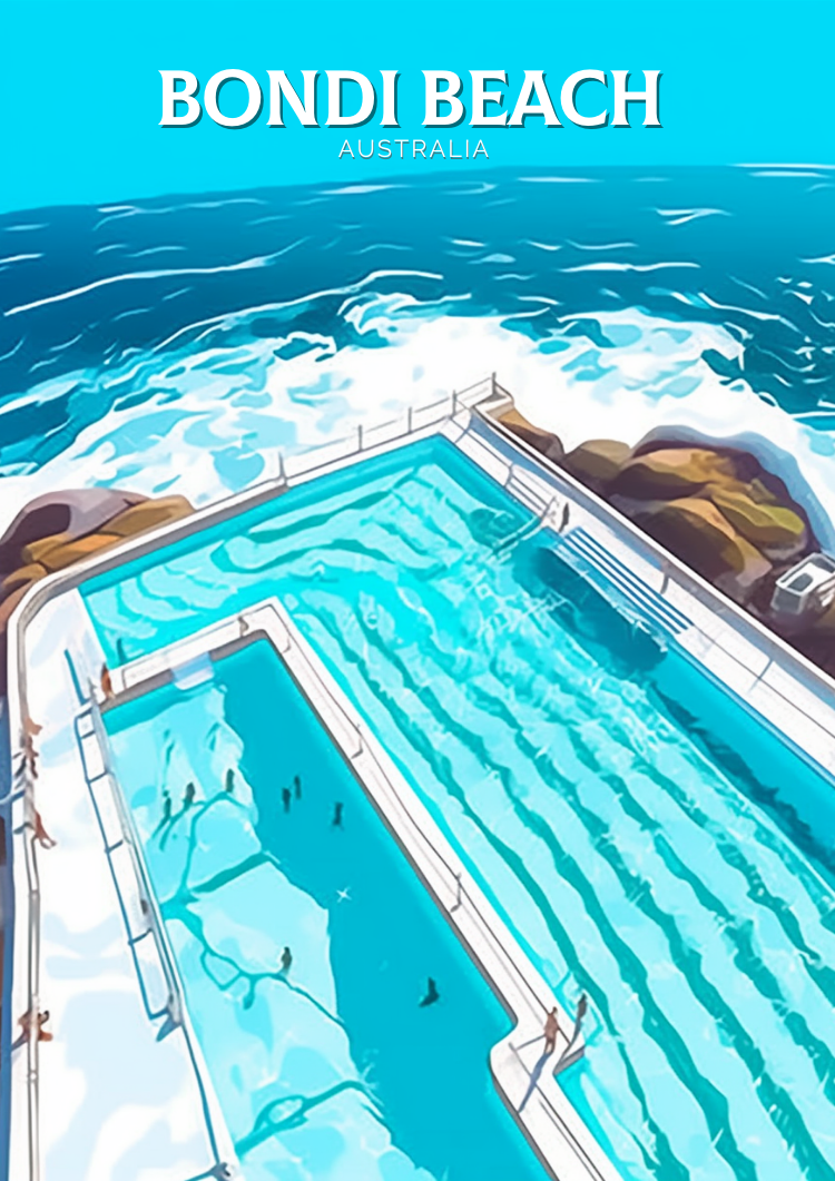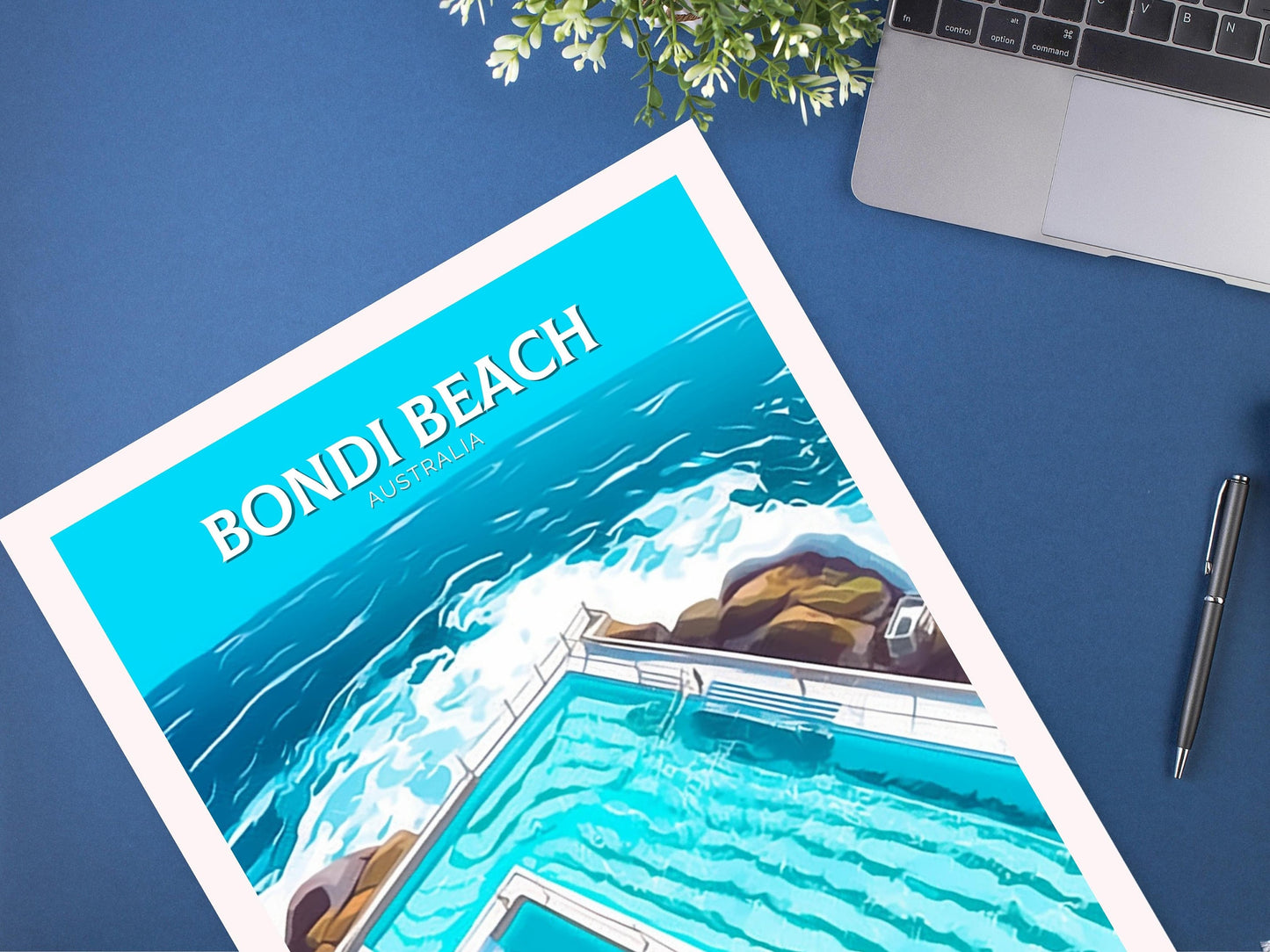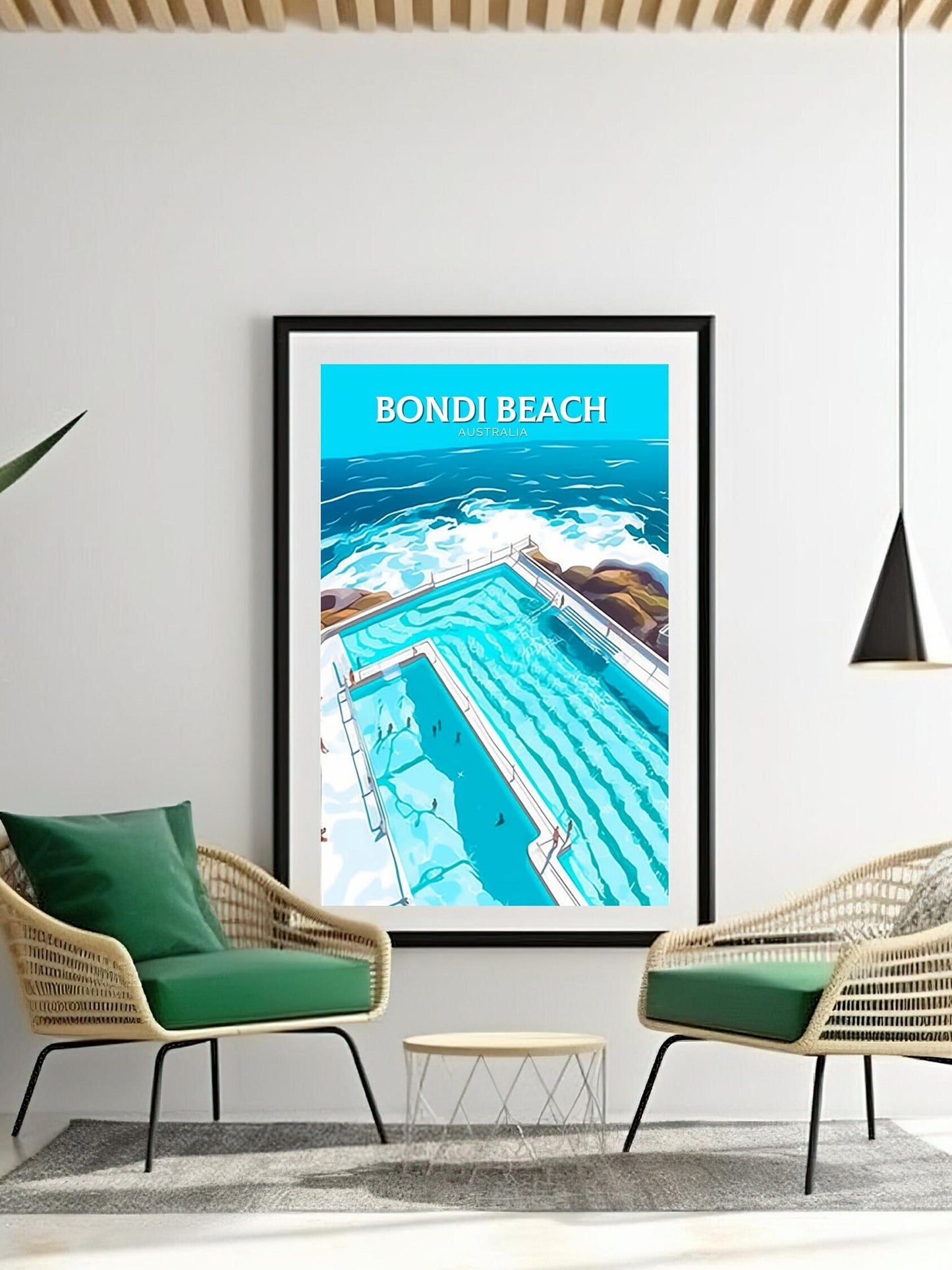 Célébrez l'esprit de Bondi Beach avec cet imprimé de voyage élégant.
