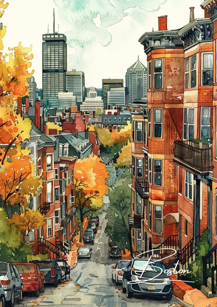 Affiche de voyage de Boston - Aquarelle