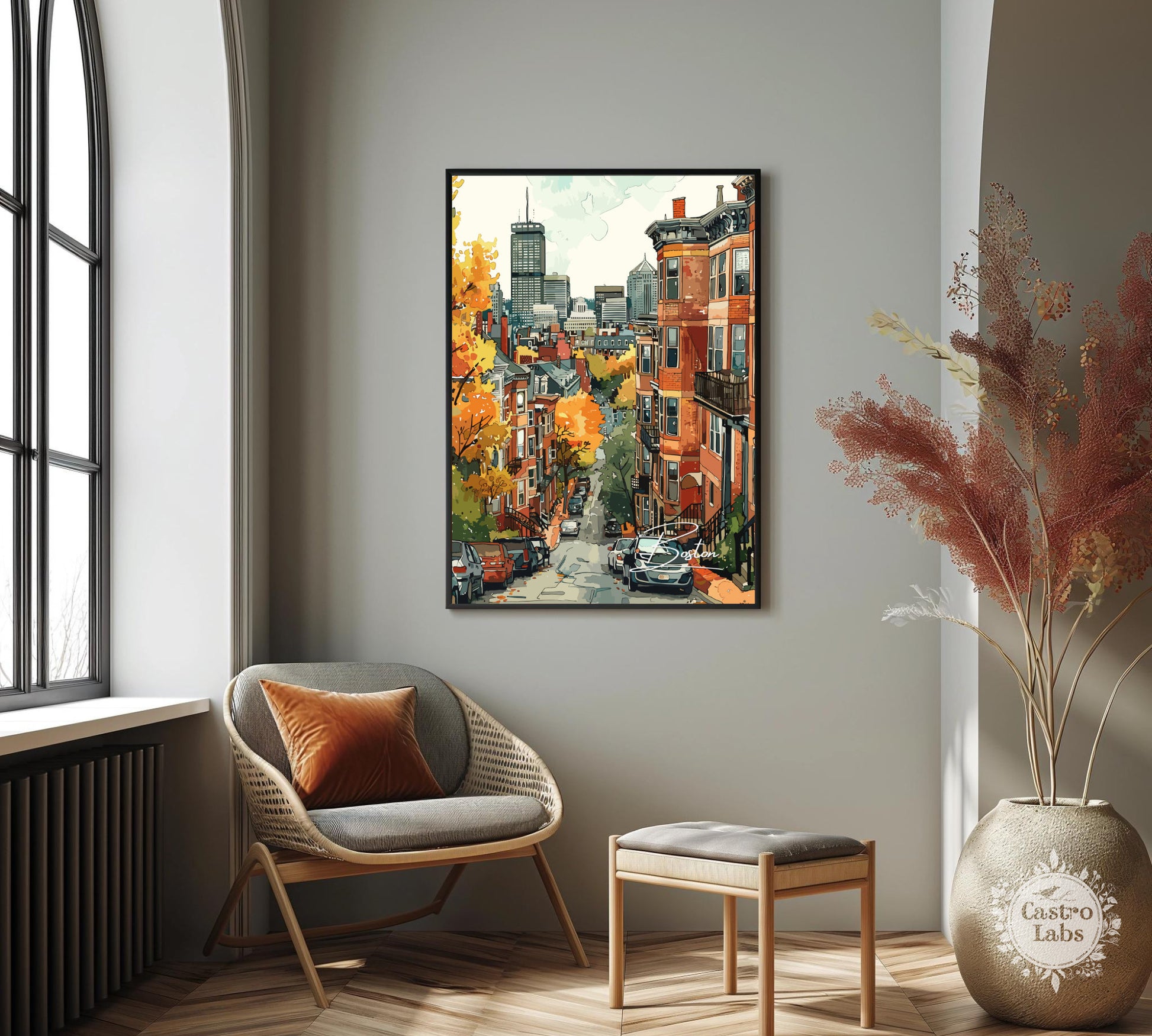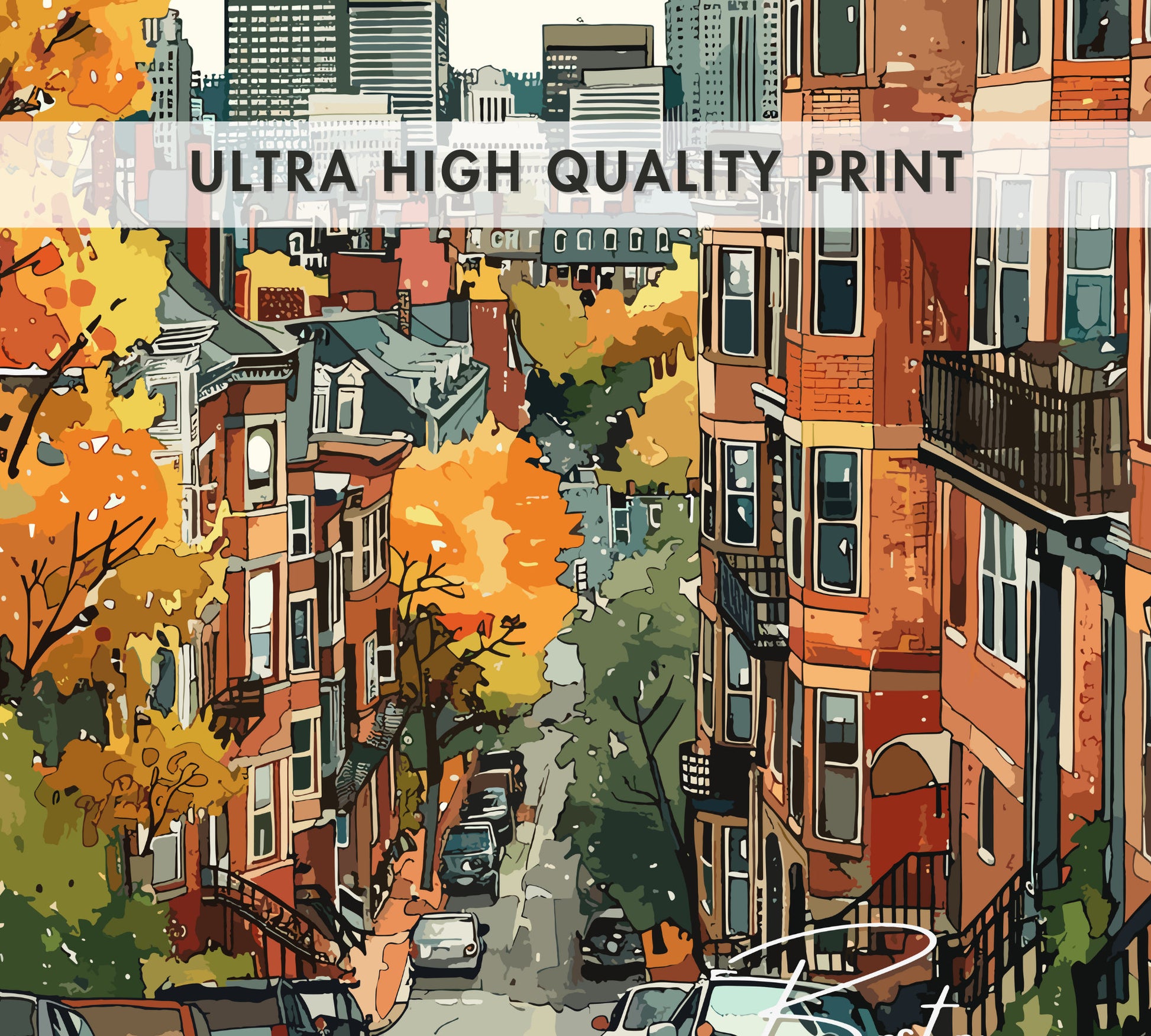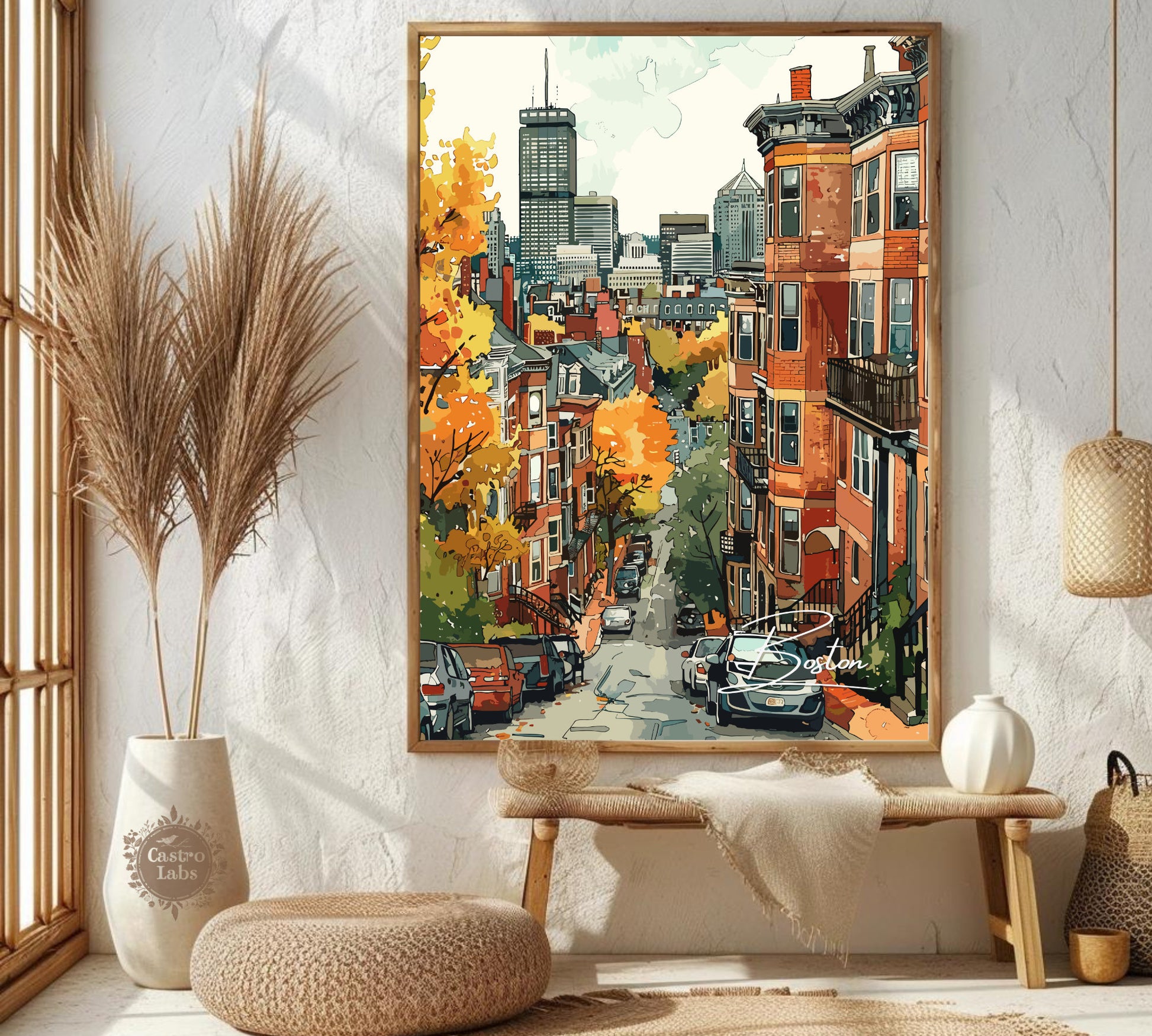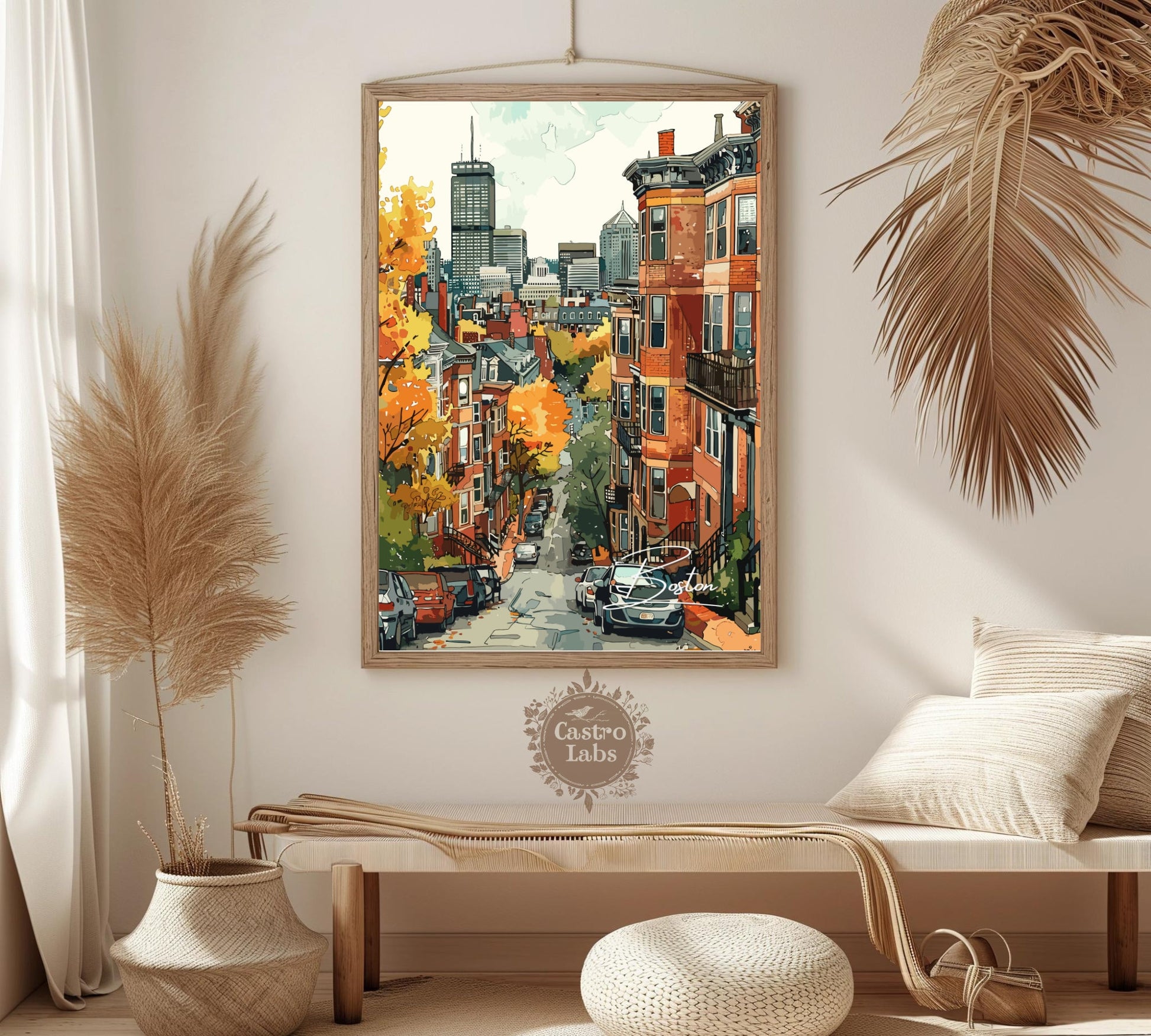 Disponible en téléchargement numérique et en tirage physique premium , cette affiche de voyage de Boston est disponible dans une variété de formats, du format standard de la série A au grand format 76 x 102 cm. Imprimée sur un papier de haute qualité aux couleurs vives et aux délicats détails aquarellés, elle est idéale pour les salons, les bureaux ou comme cadeau attentionné pour toute personne inspirée par l'histoire et le charme de Boston.