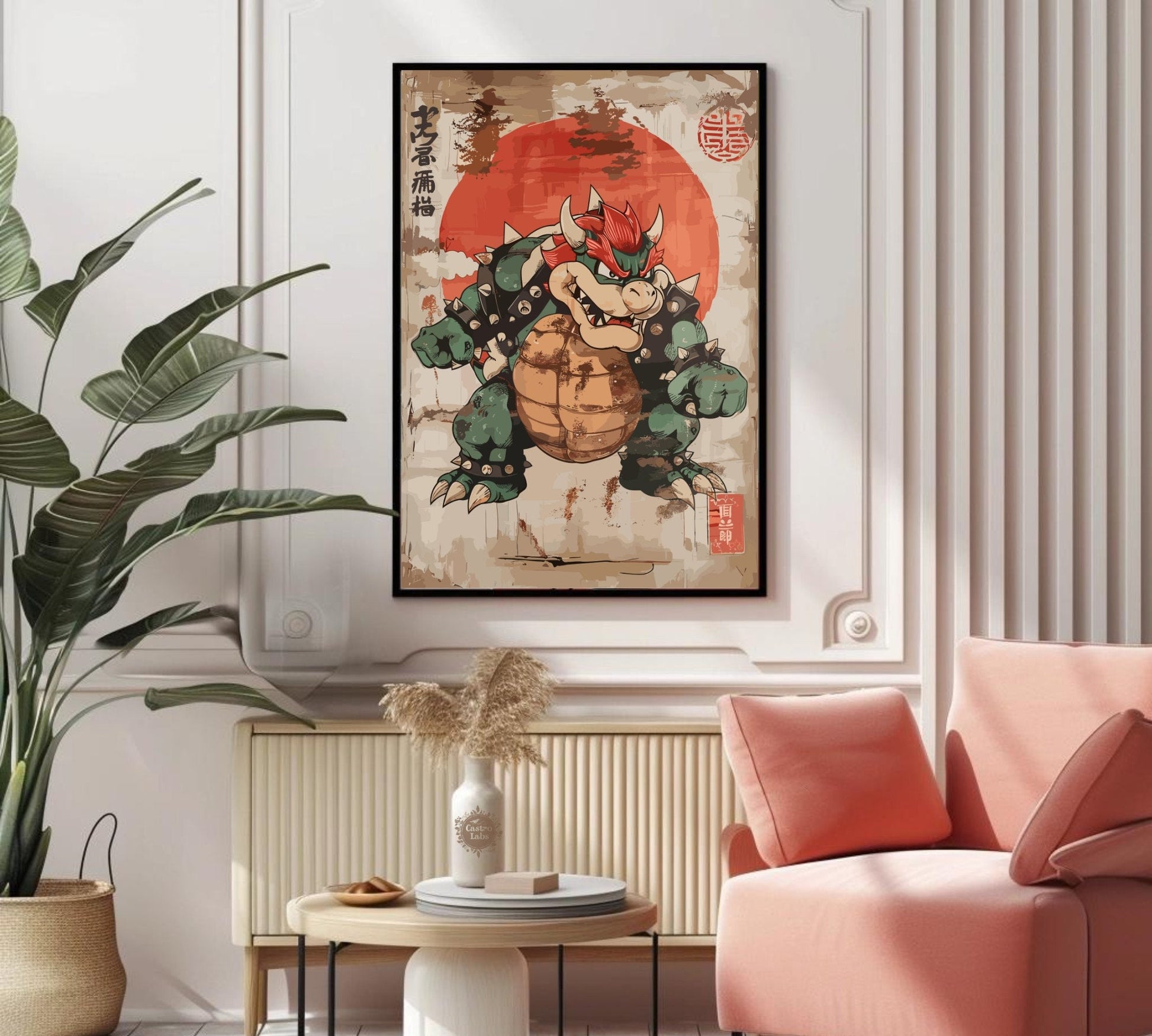 L' affiche Bowser est également un cadeau amusant et mémorable pour vos amis, votre famille ou tous ceux qui apprécient les jeux vidéo classiques et les décorations inspirées des animes. Encadrée ou non, elle allie humour, nostalgie et style rétro japonais pour une touche d'originalité dans n'importe quelle pièce.