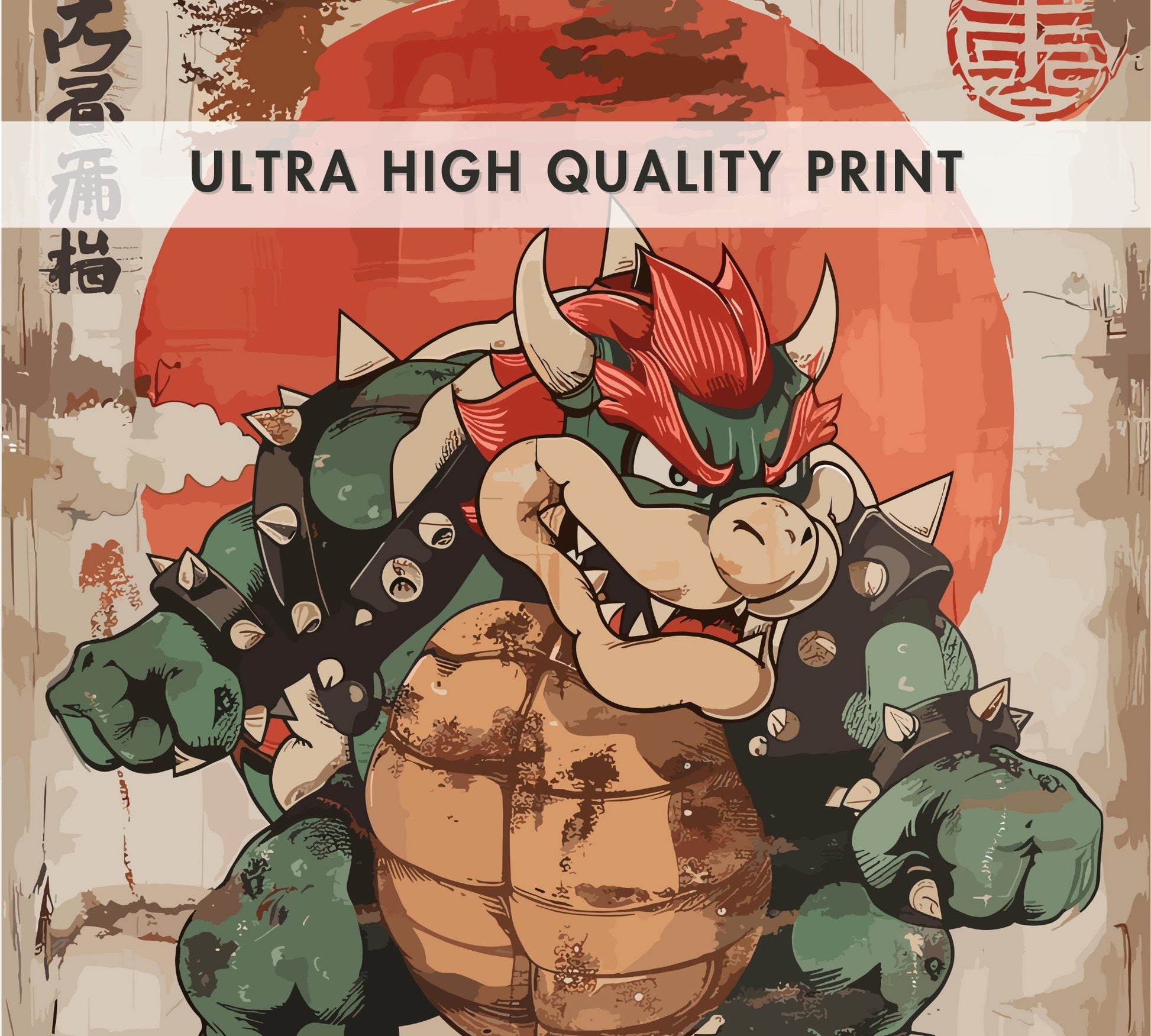 Imprimé sur un papier durable de haute qualité, le poster Bowser offre des détails nets et des couleurs vives qui en font une œuvre d'art remarquable. Les passionnés de jeux vidéo, les collectionneurs et les fans d'anime japonais adoreront exposer ce poster unique, seul ou dans une galerie murale de jeux vidéo rétro.