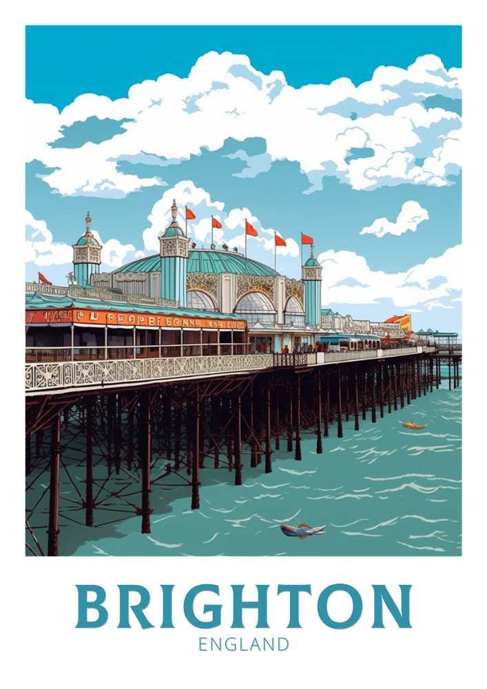 Capturez l'esprit vibrant de l'emblématique jetée de Brighton en Angleterre avec cette affiche de voyage . Mettant en valeur l'atmosphère animée du bord de mer et l'architecture historique de la jetée, cette œuvre apporte une touche de charme côtier à votre maison ou votre bureau.