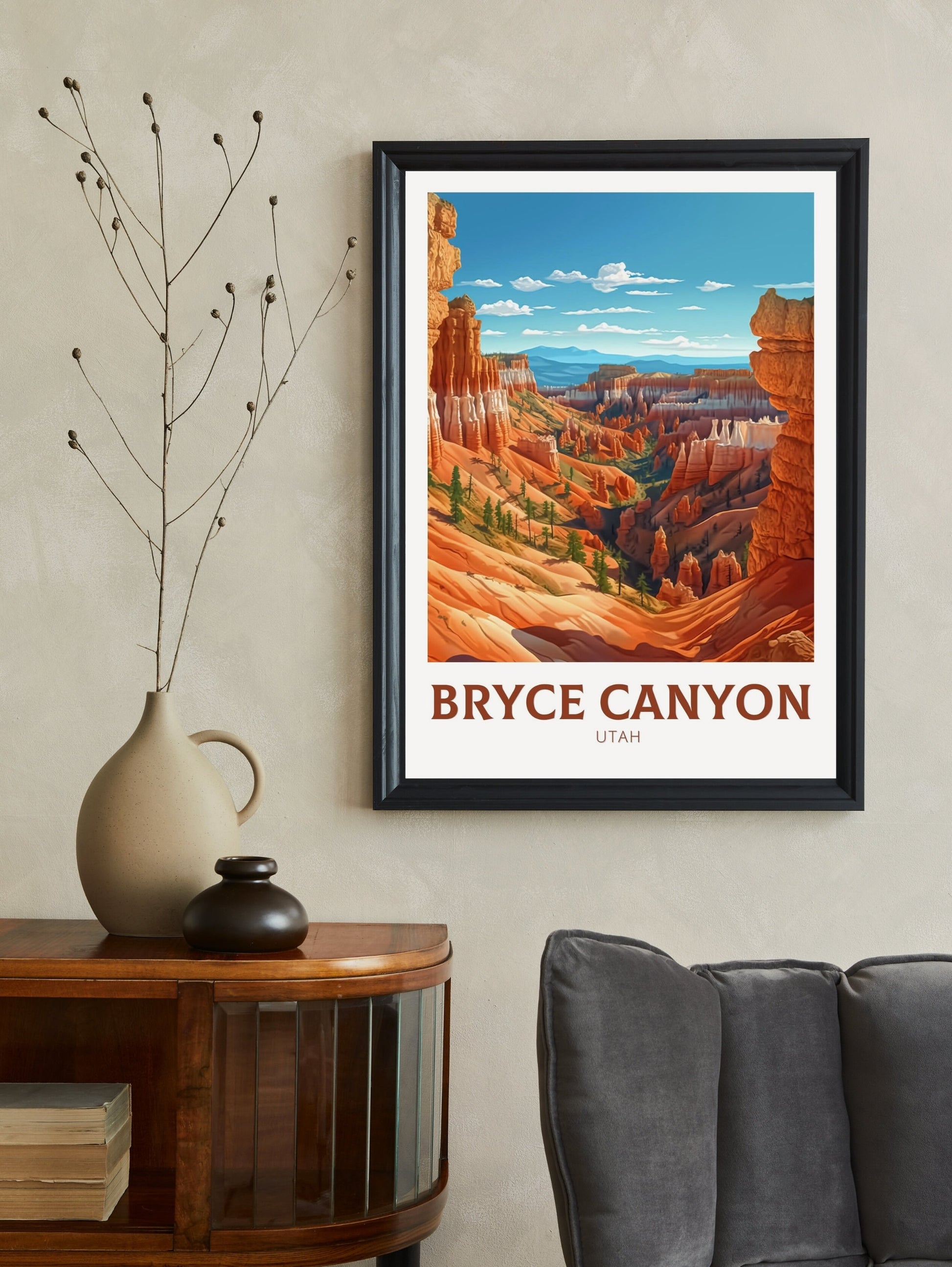 Disponible en téléchargement numérique et en tirage physique premium , cette affiche de voyage de Bryce Canyon est disponible dans une variété de formats, du format standard de la série A aux grands formats 30 x 40 pouces. Imprimée sur du papier de haute qualité aux couleurs vives et aux détails précis, elle est idéale pour les salons, les bureaux ou comme cadeau attentionné pour toute personne inspirée par les merveilles naturelles de l'Utah.