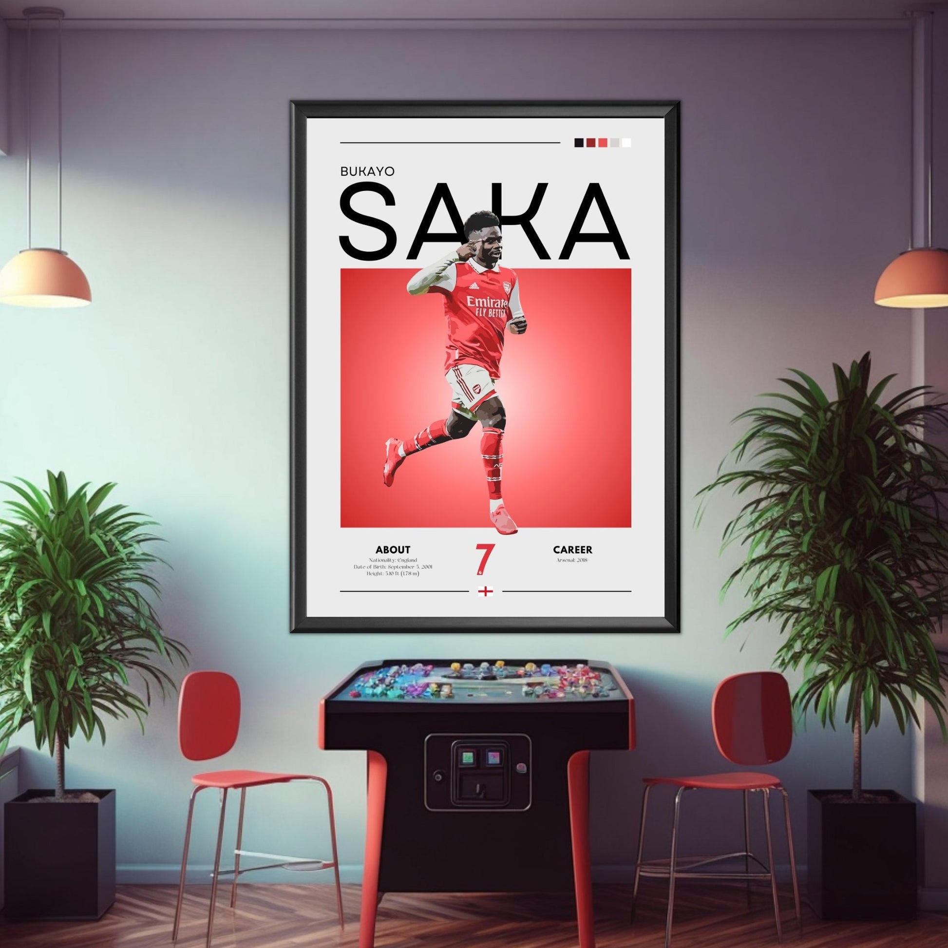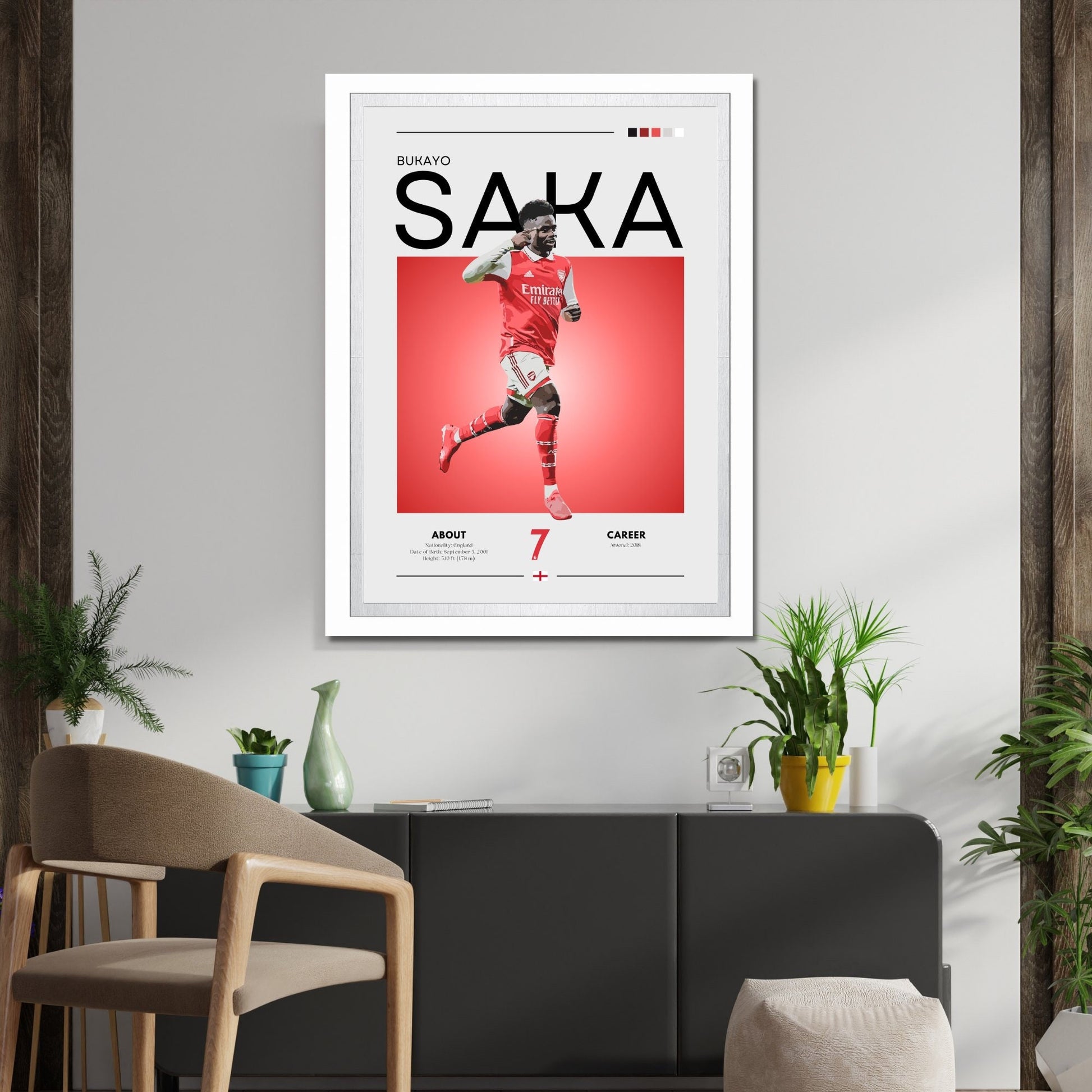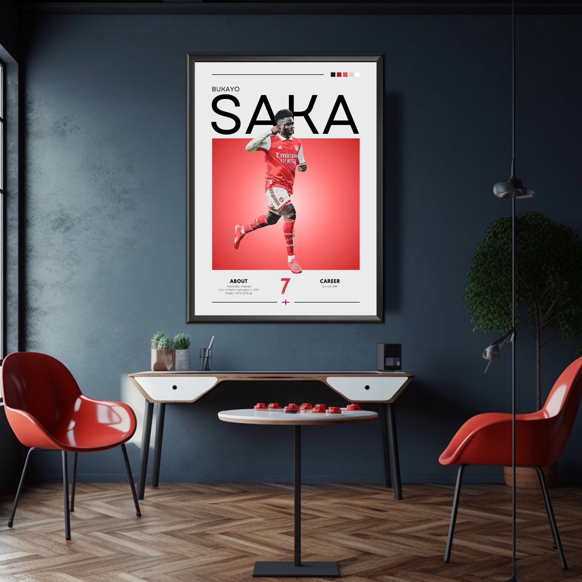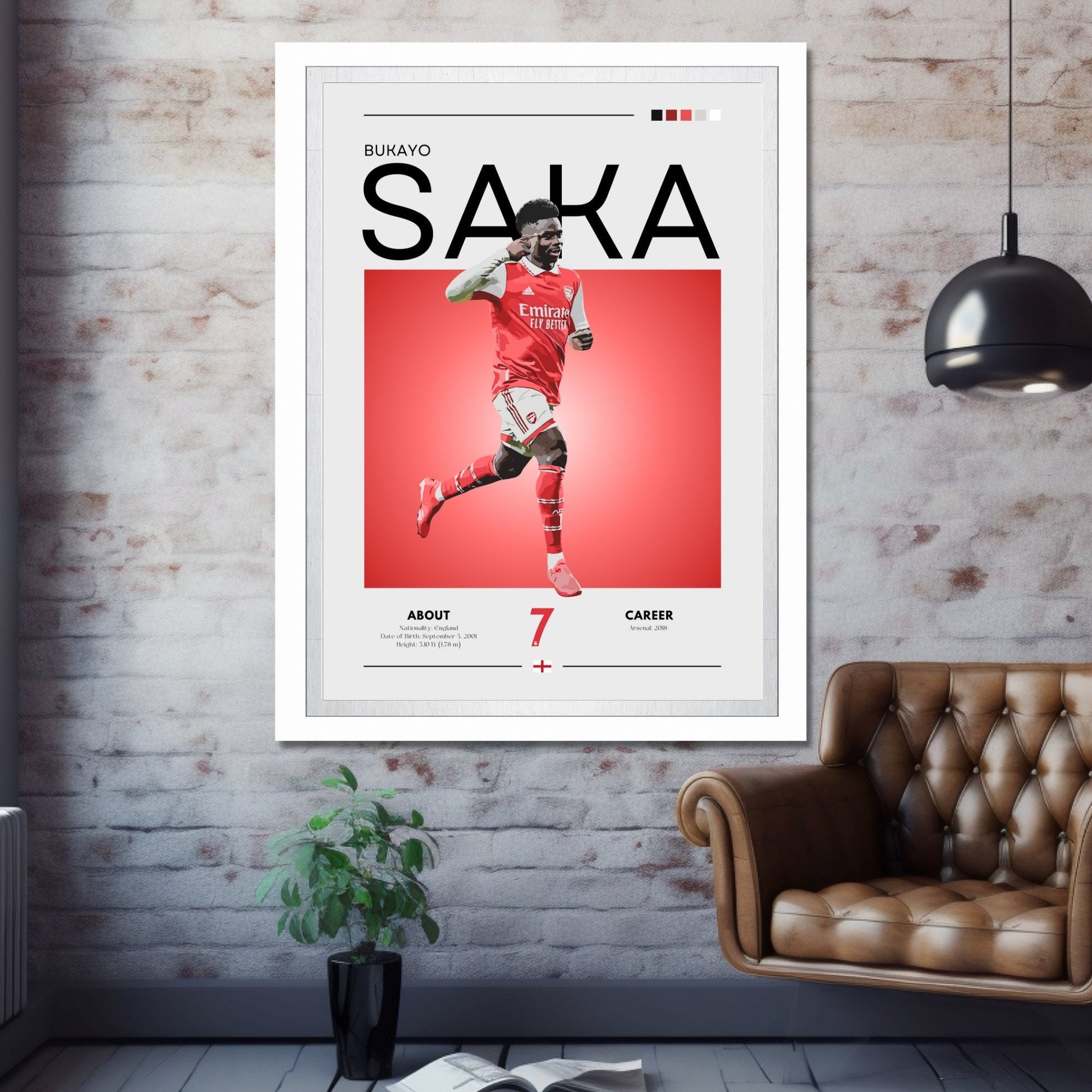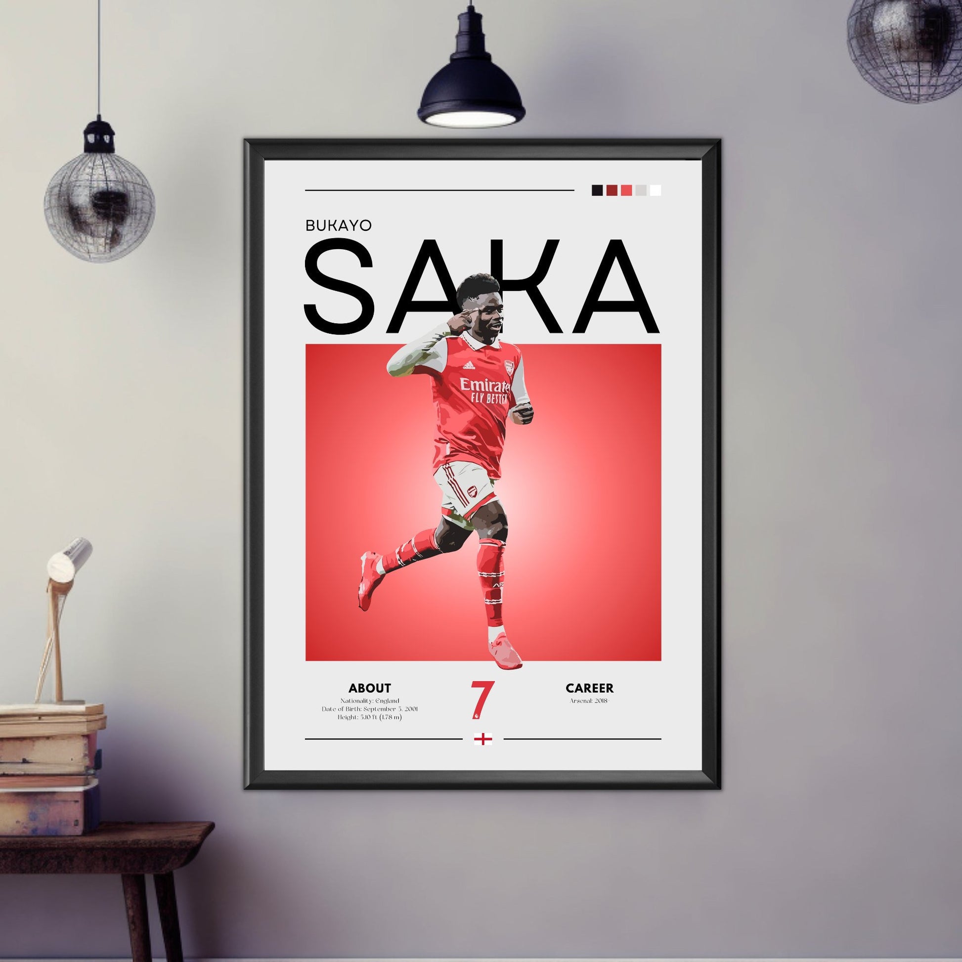 Allumez votre passion pour le football avec notre affiche exclusive de Bukayo Saka , mettant en vedette le milieu de terrain dynamique portant le maillot emblématique d'Arsenal. Soigneusement conçue et imprimée sur un support de haute qualité, cette affiche capture la ténacité, le talent et la présence marquante de Saka sur le terrain. Que vous soyez un fervent supporter d'Arsenal ou que vous appréciez simplement les prouesses d'un milieu de terrain de haut niveau, cette œuvre sera un ajout remarquable à votre collection.