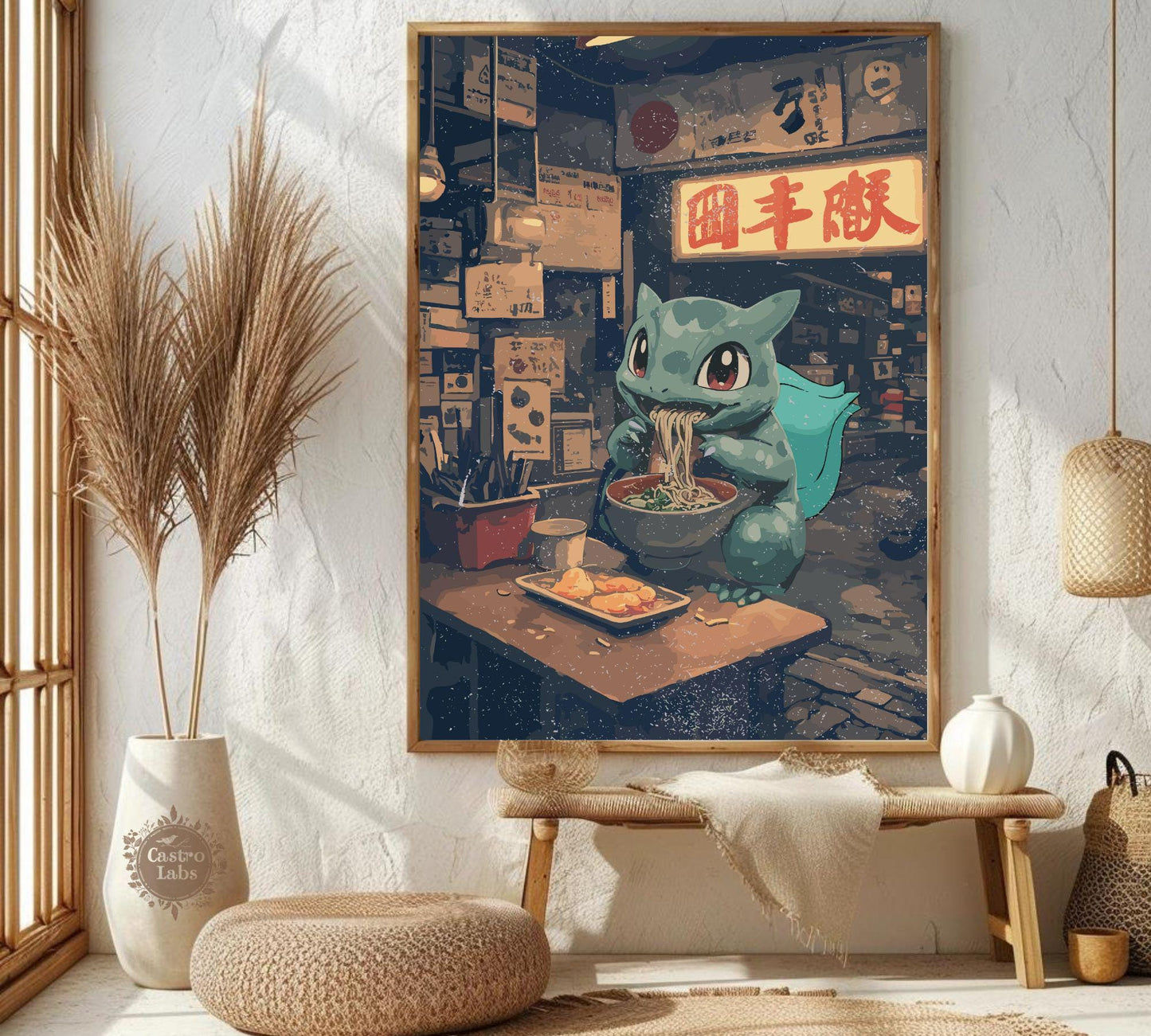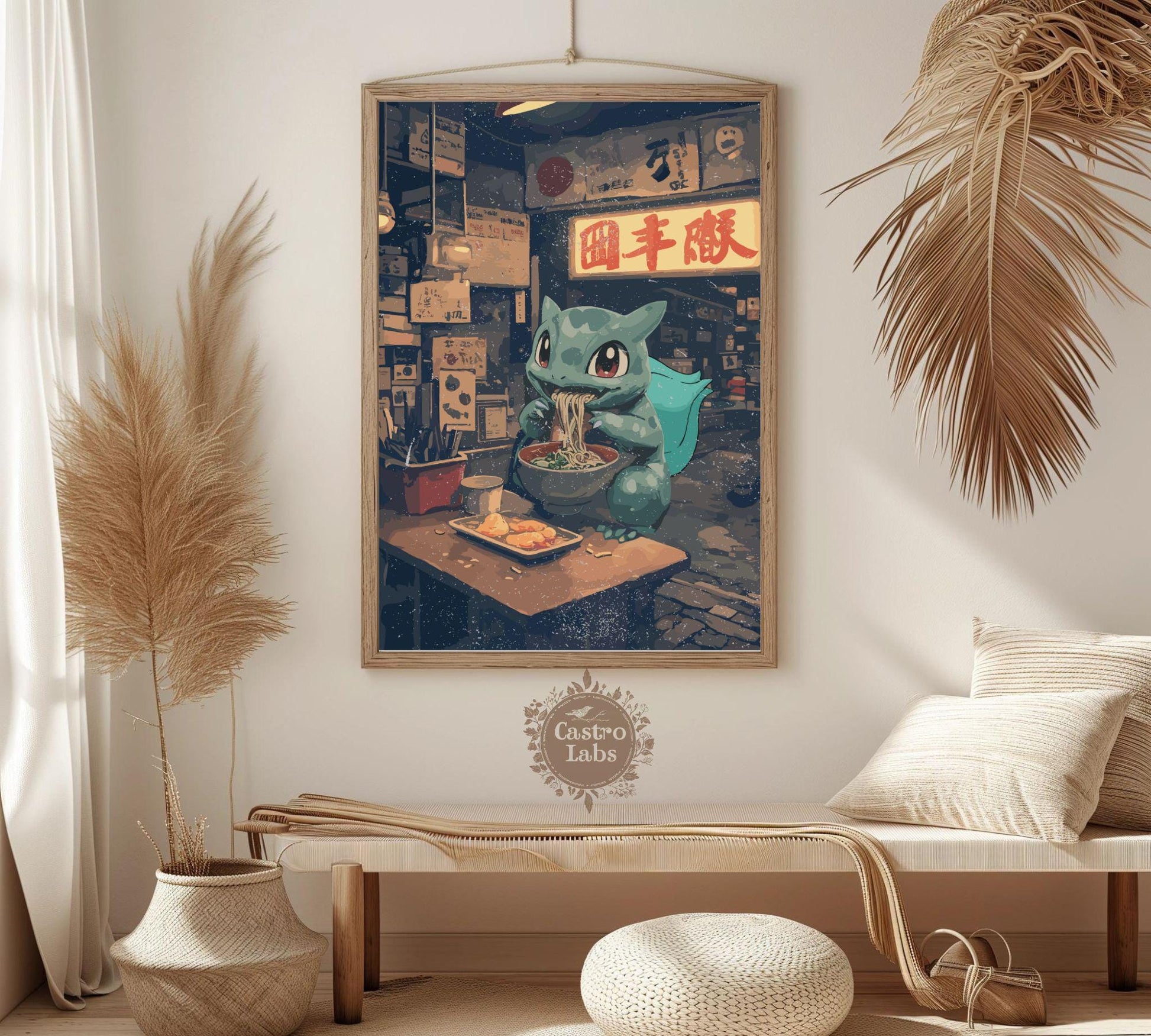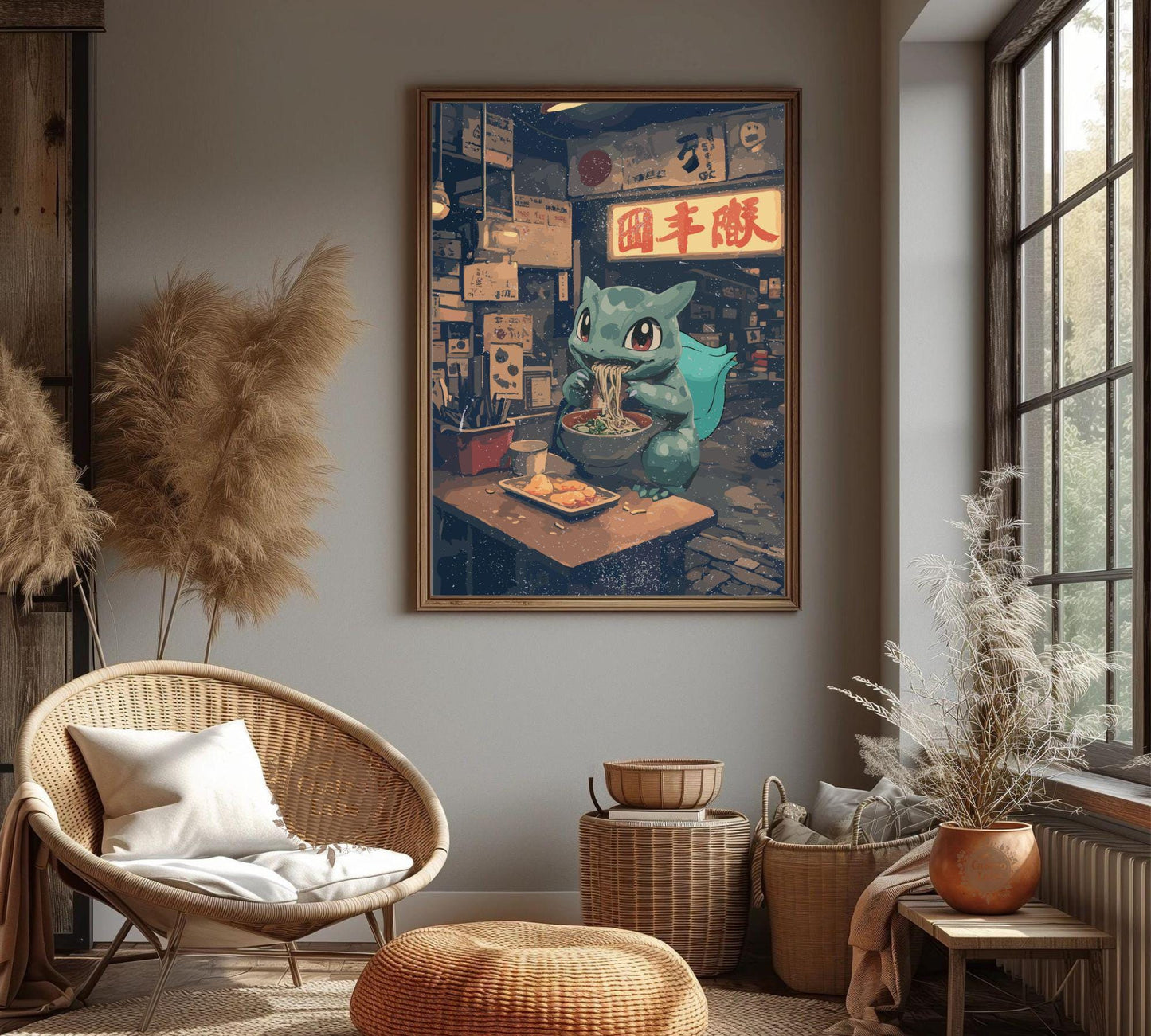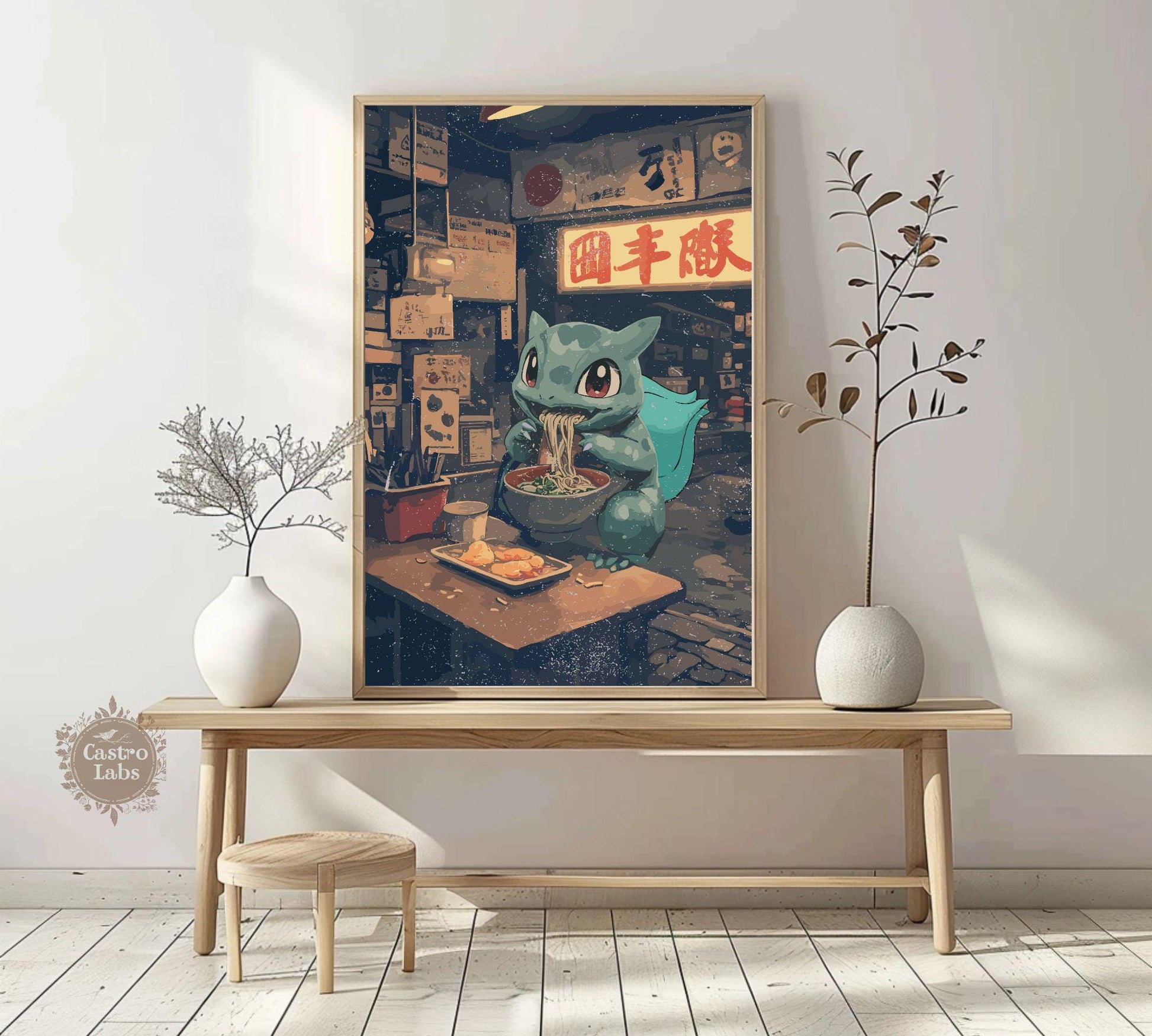 Affiche de la série Bulbasaur Ramen - Illustration Pokémon de style japonais