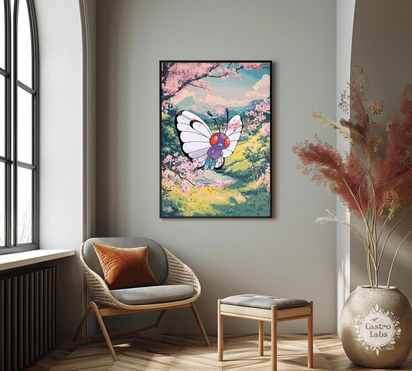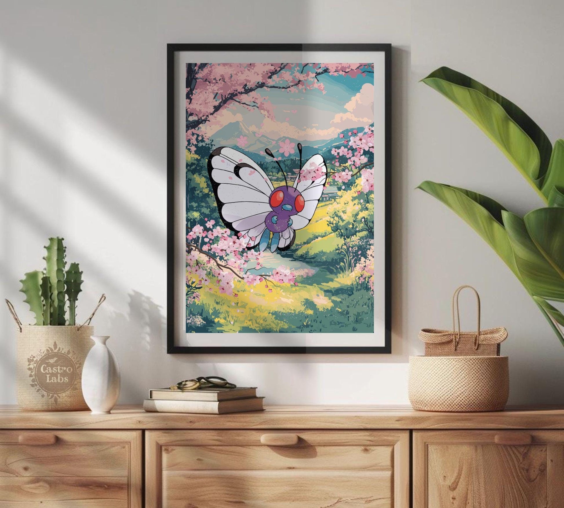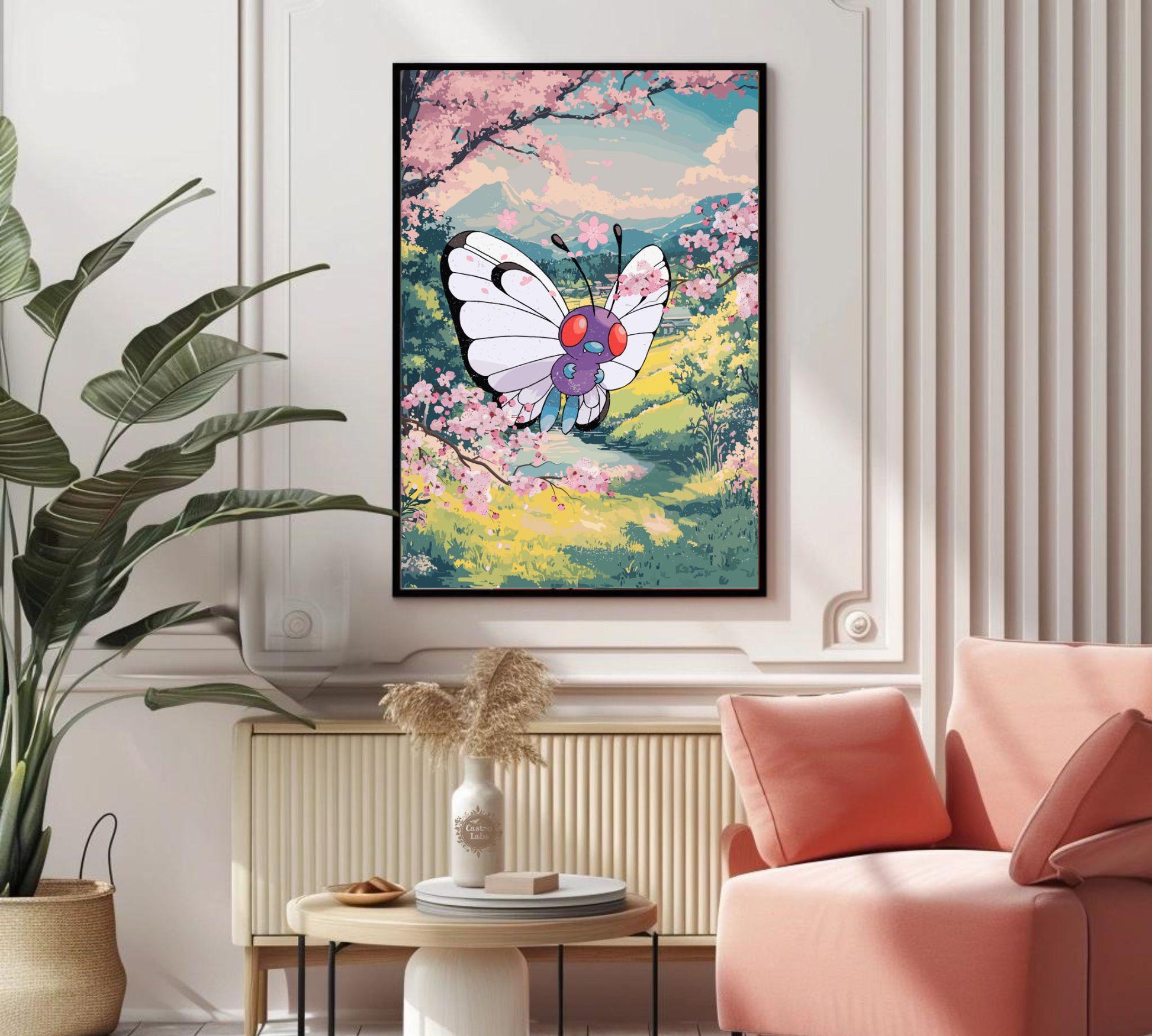 Affiche Pokémon Butterfree - Illustration d'anime japonais