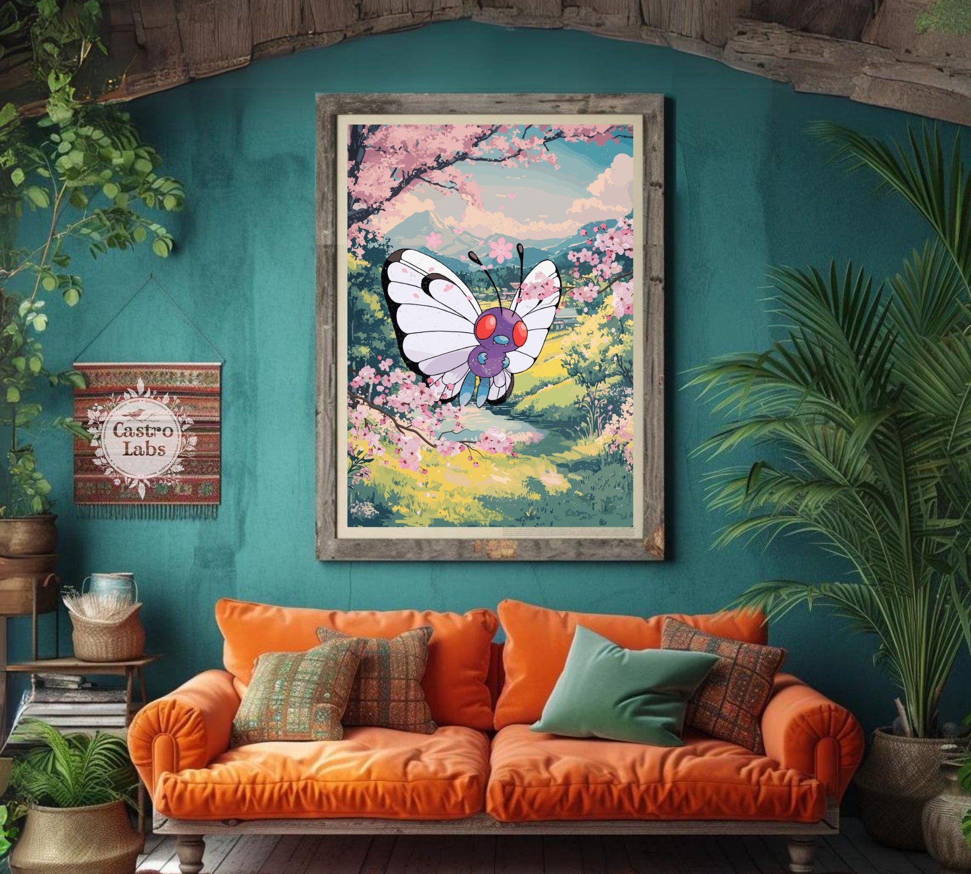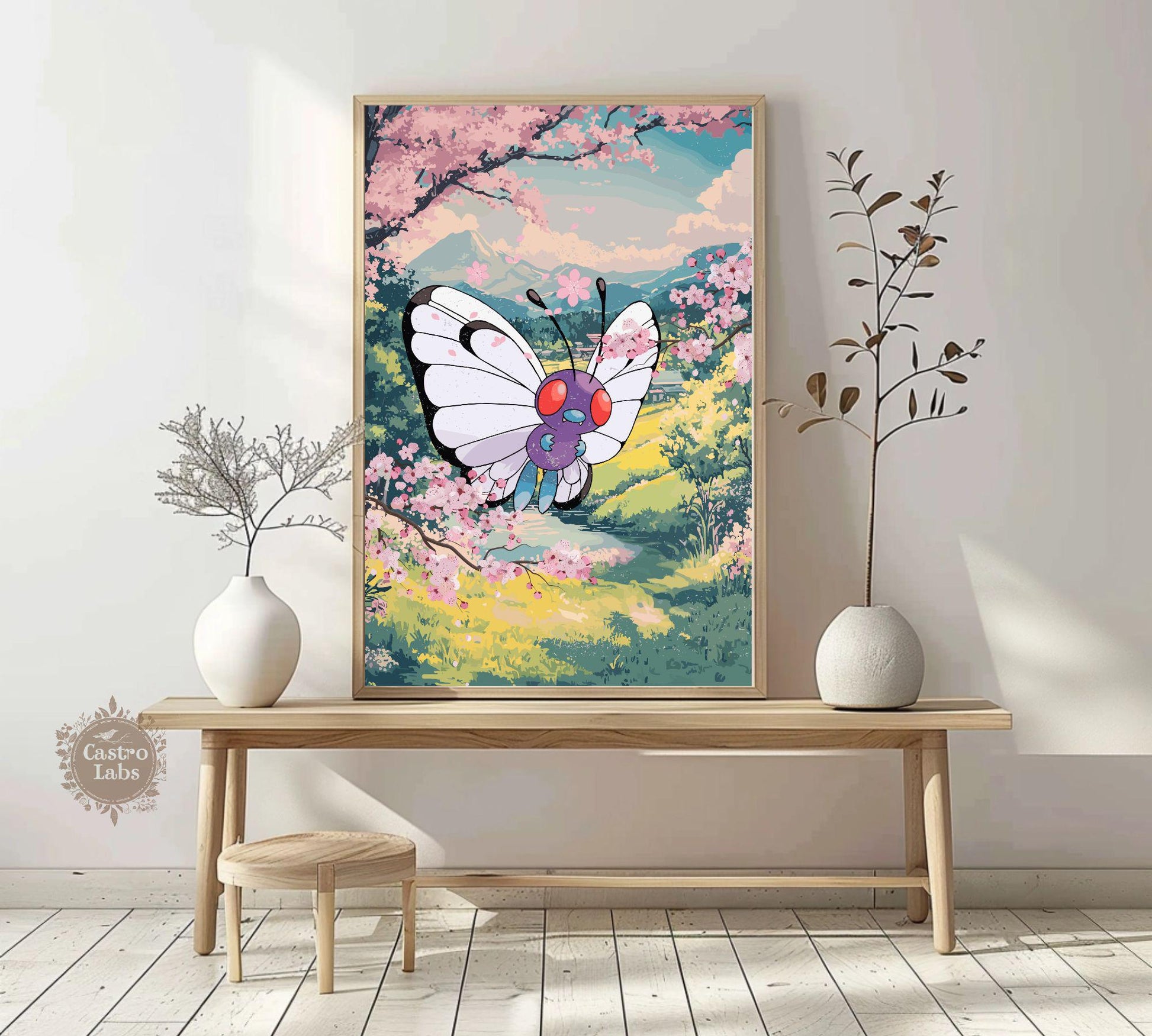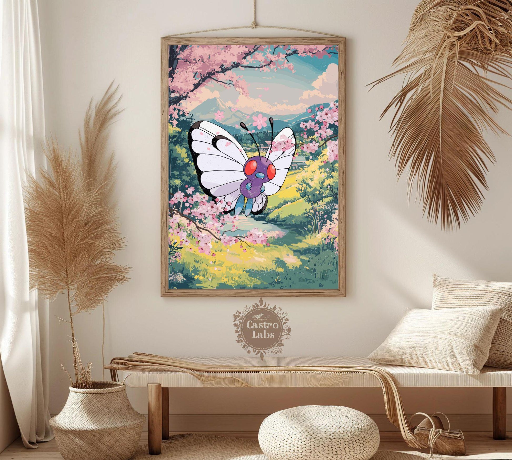 Affiche Pokémon Butterfree - Illustration d'anime japonais