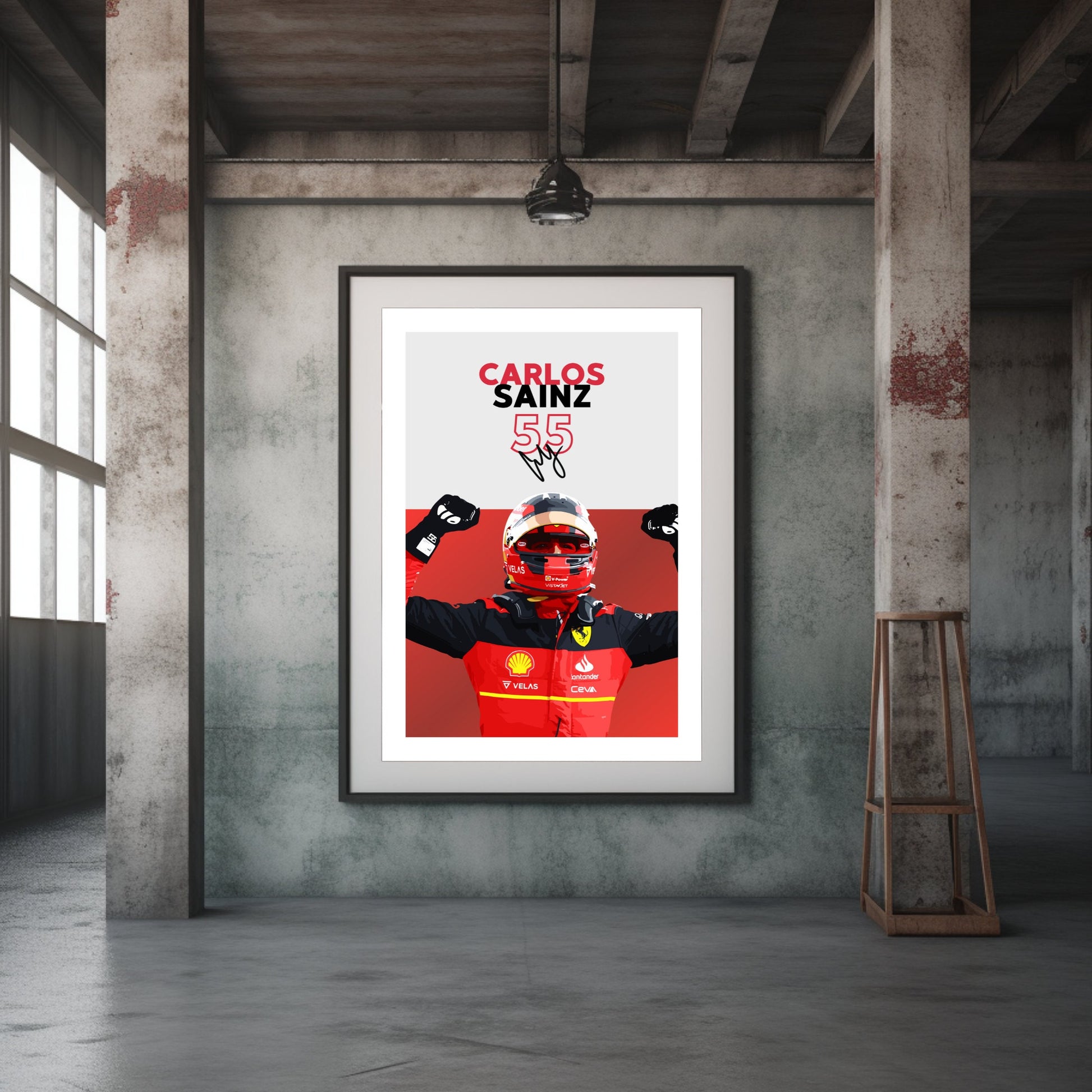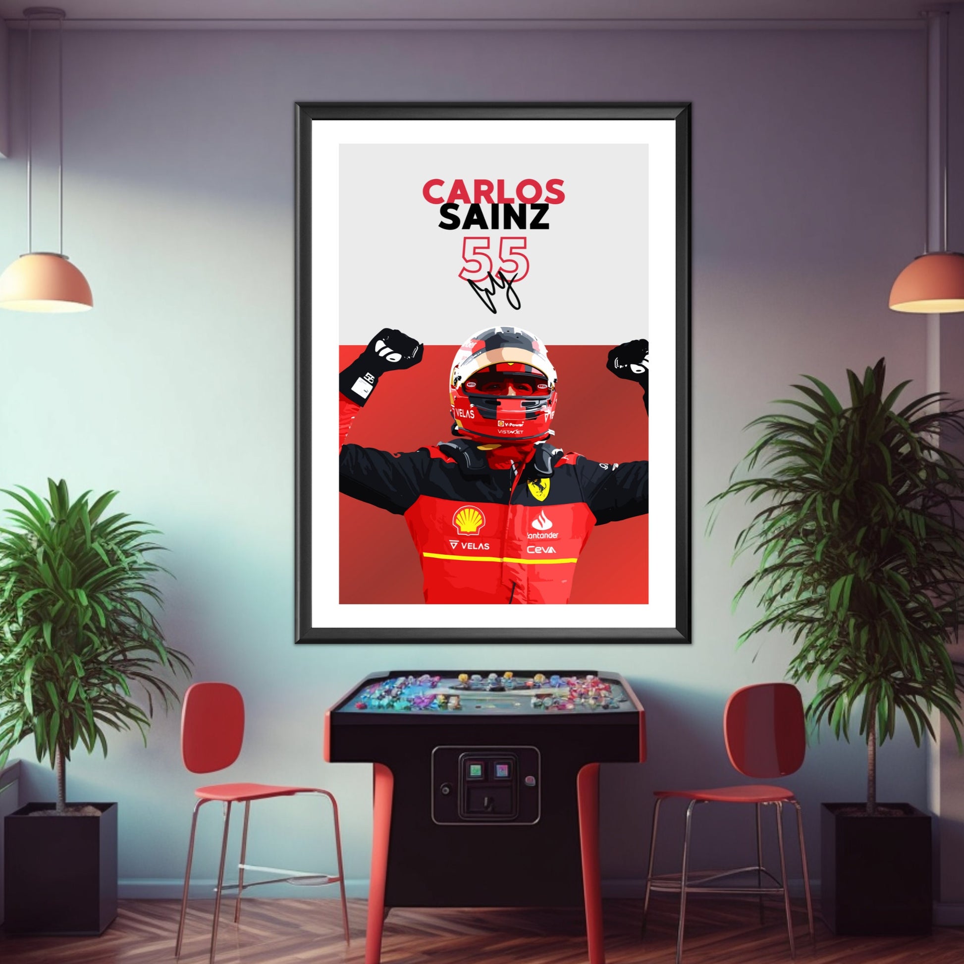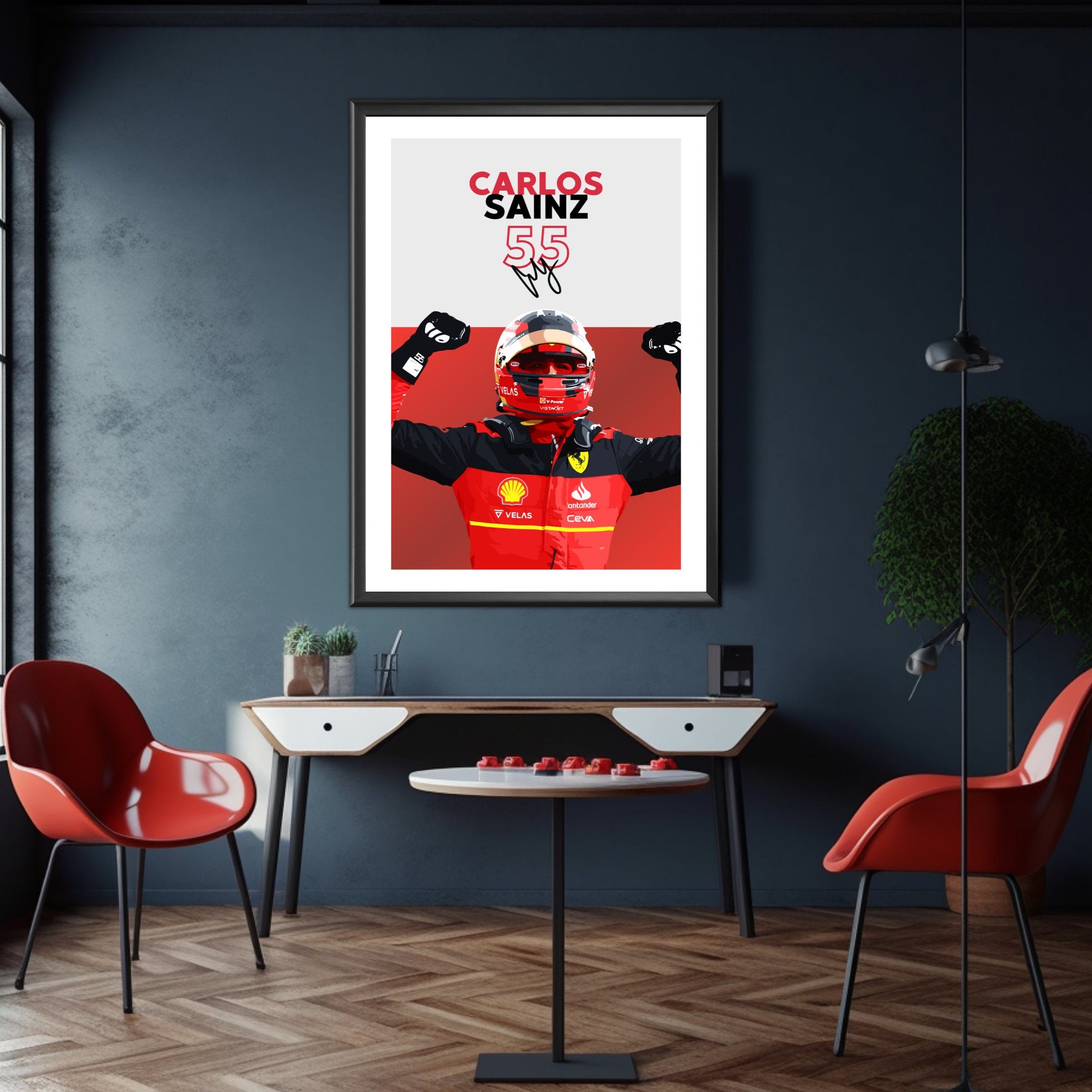 Affiche Ferrari F1 de Carlos Sainz – Décoration murale moderne pour le sport automobile