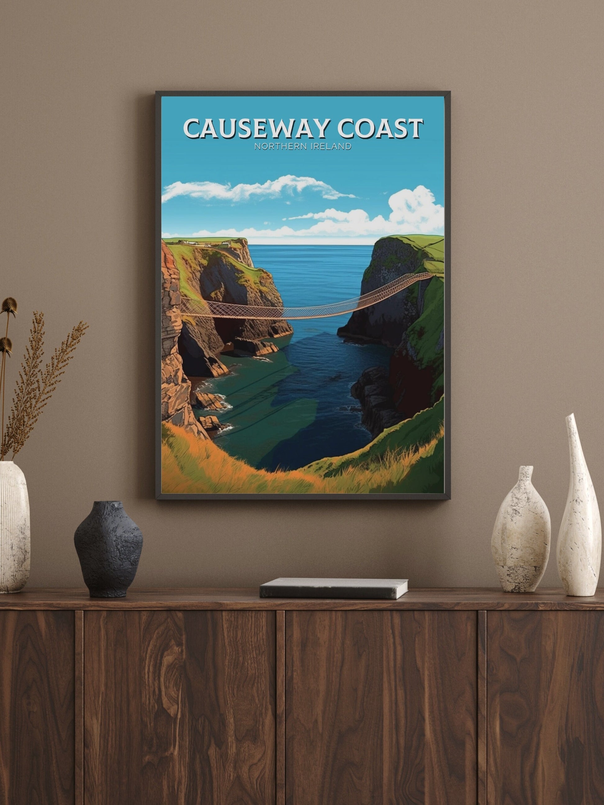 Capturez la beauté brute de l'Irlande du Nord avec cette affiche de voyage de la côte de la Chaussée des Géants . Mettant en vedette les falaises spectaculaires et les paysages marins époustouflants de ce littoral emblématique, cette œuvre apporte le charme sauvage de la Chaussée des Géants et des paysages environnants à votre intérieur.