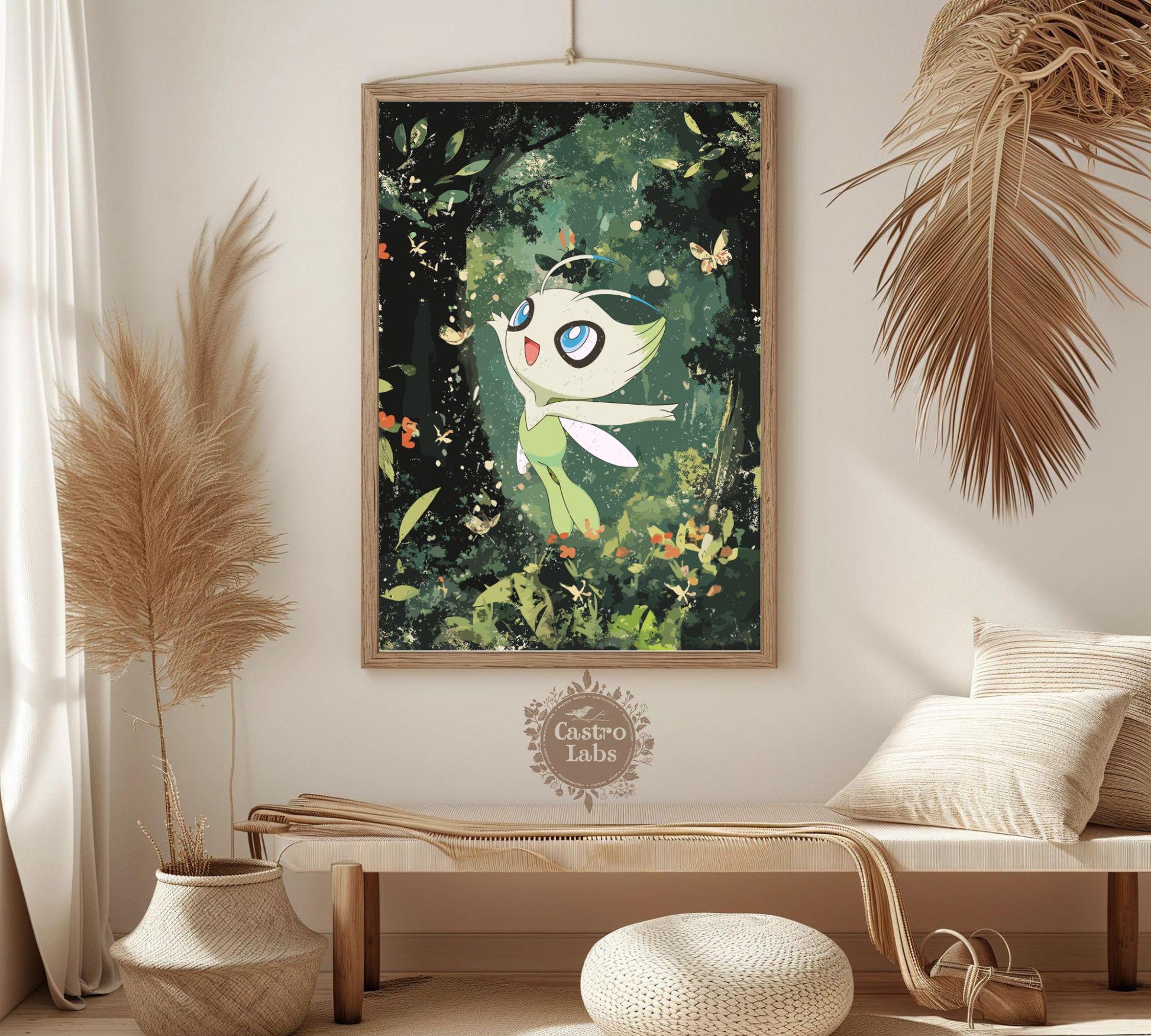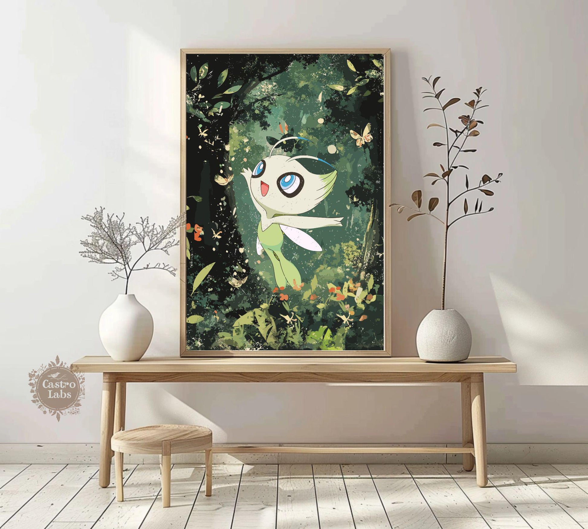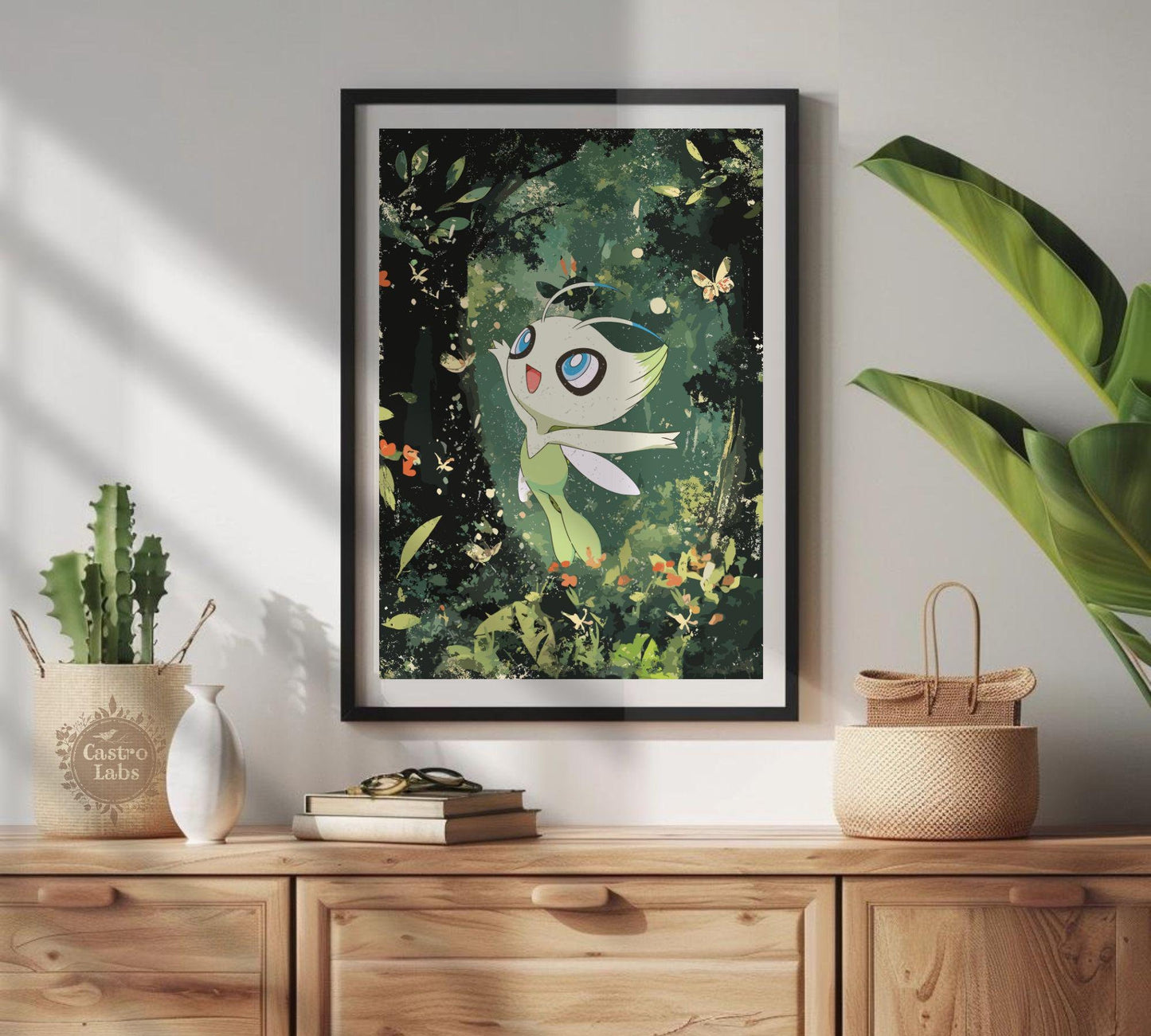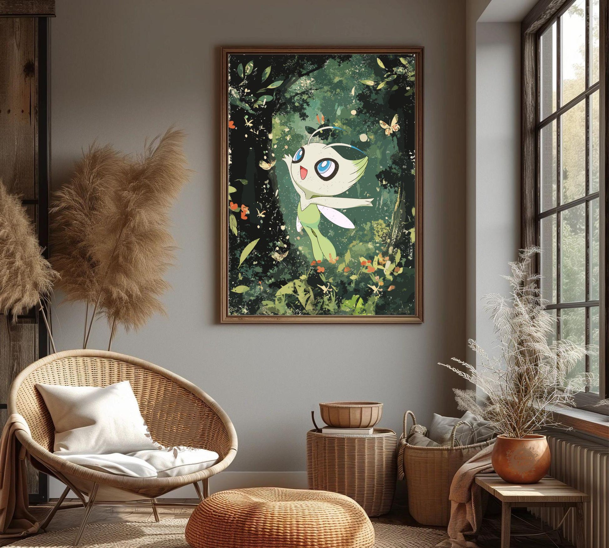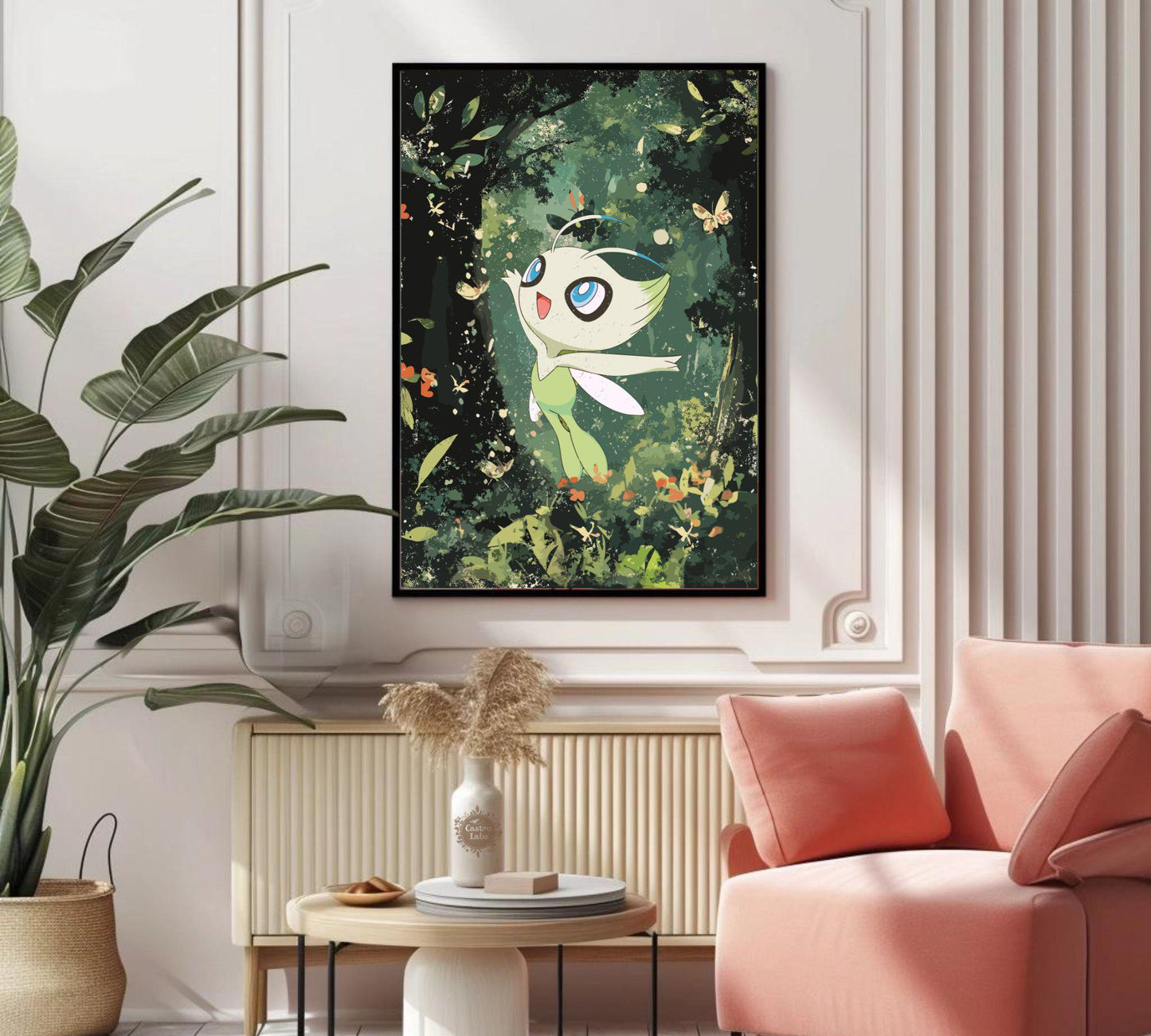 Imprimé sur du papier de haute qualité, le tableau Pokémon Celebi offre des couleurs vives, des détails complexes et des lignes nettes qui mettent en valeur les traits délicats et aériens de Celebi. Idéal pour les chambres, les salles de jeux ou les espaces à thème animé, il apporte une touche ludique et mystique à toute collection Pokémon.
