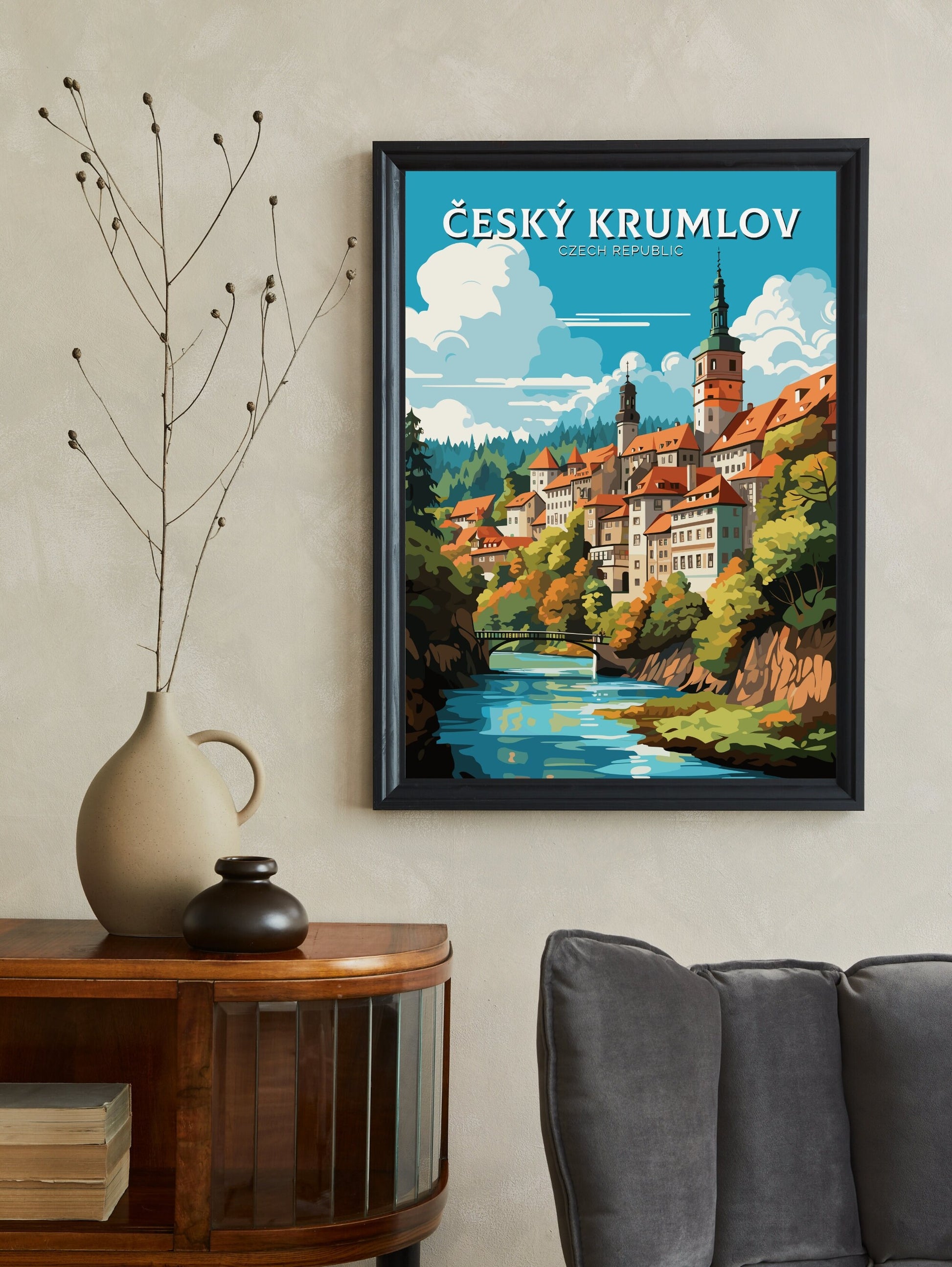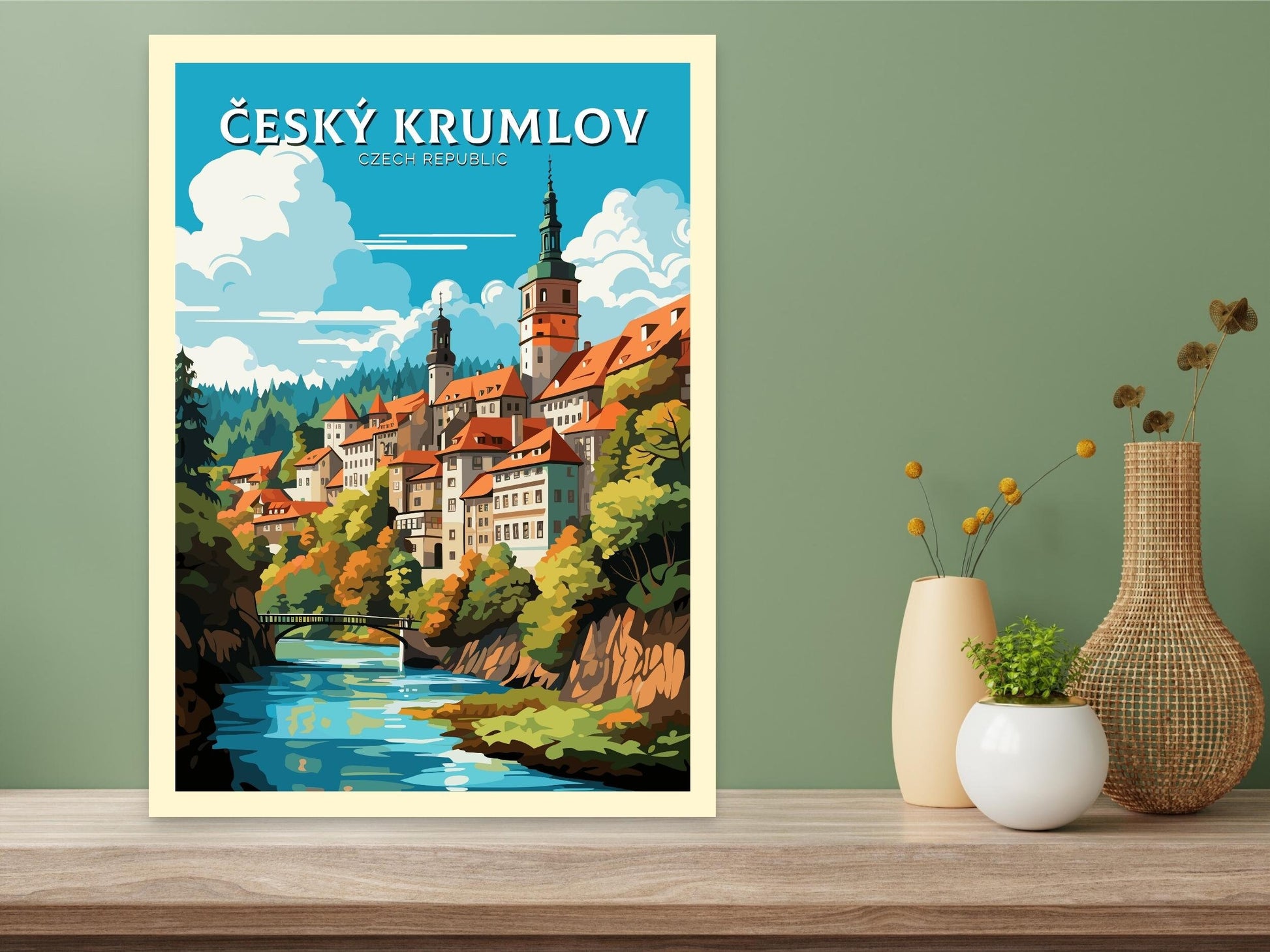 Plongez dans un conte de fées avec cette affiche de voyage de Český Krumlov , mettant en valeur la charmante vieille ville, la sinueuse Vltava et l'emblématique tour du château. Cette œuvre d'art de la République tchèque capture la beauté médiévale et l'architecture colorée de l'une des villes les plus pittoresques d'Europe.