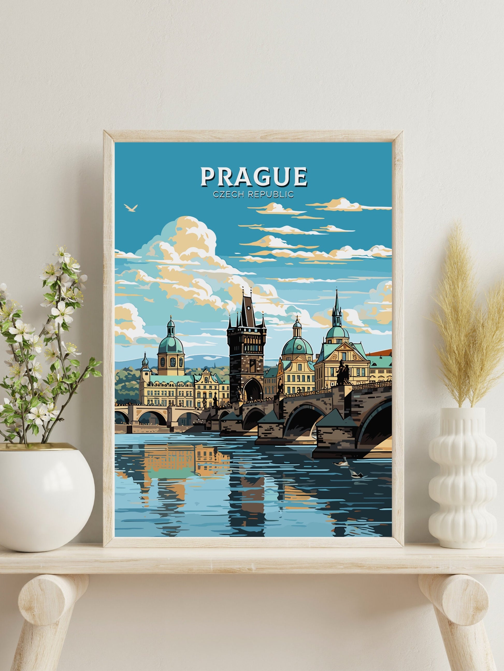 Affiche de voyage du pont Charles - Œuvre d'art de Prague