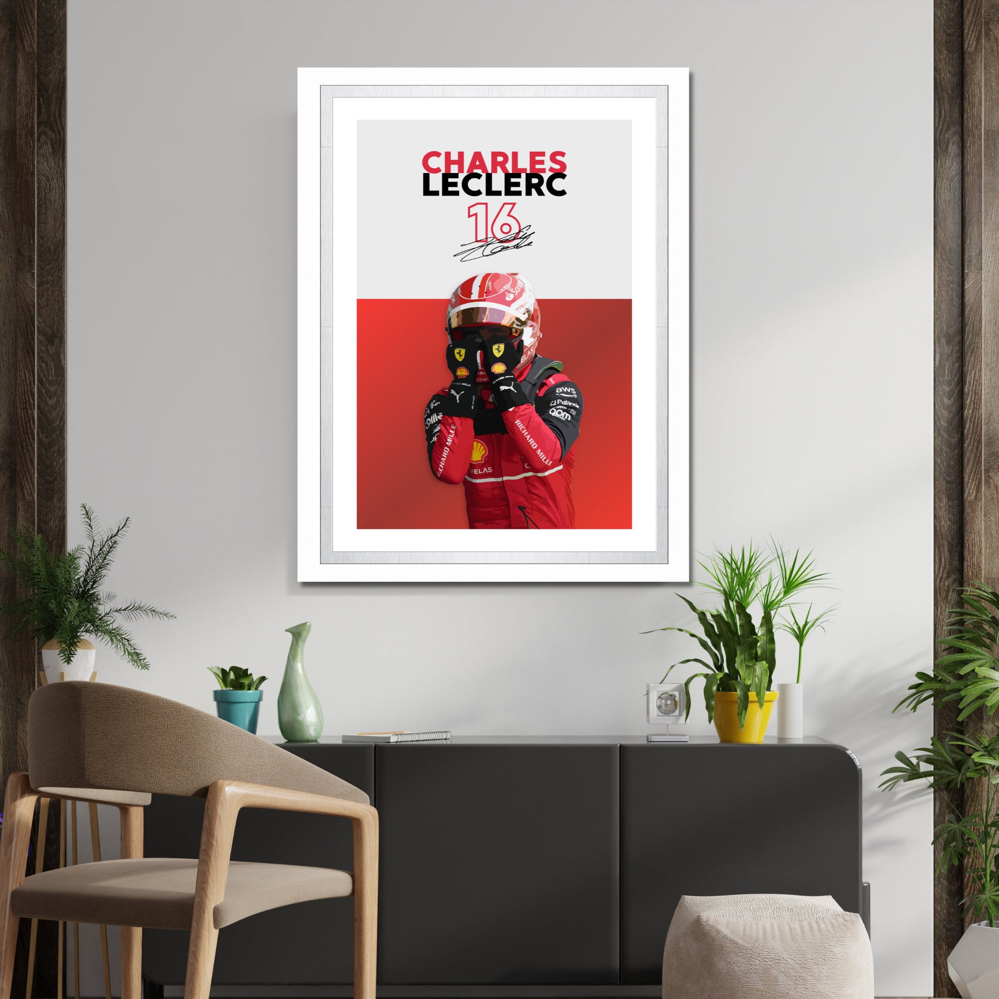 Affiche Ferrari F1 de Charles Leclerc – Art du sport automobile moderne