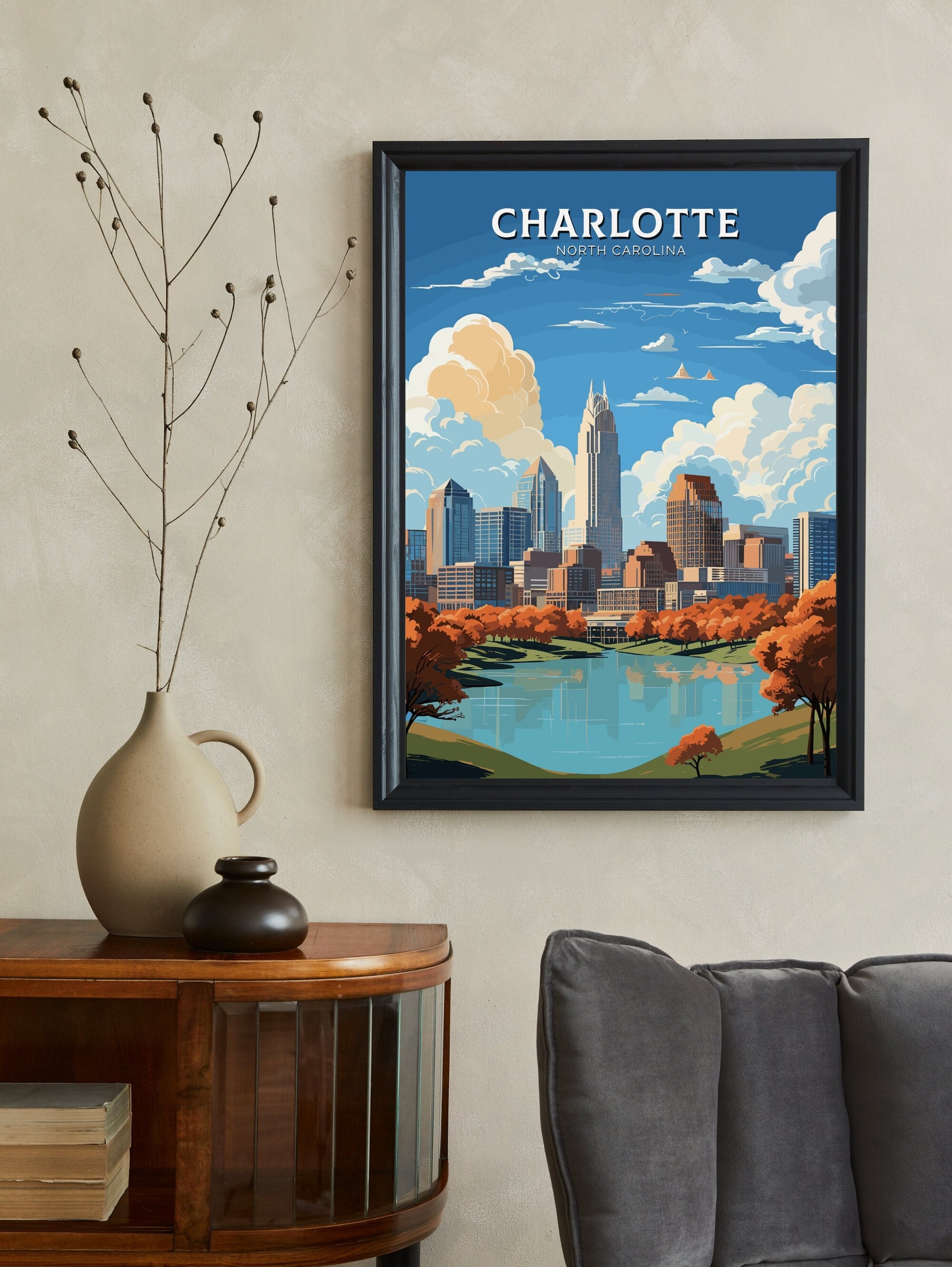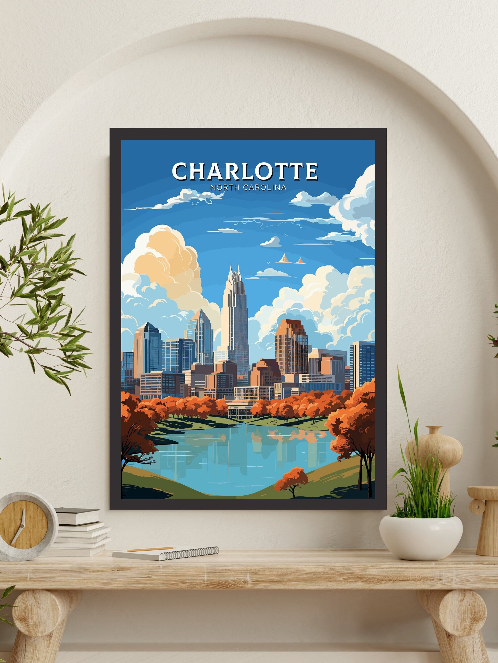 Affiche de voyage de Charlotte - Illustration de Caroline du Nord