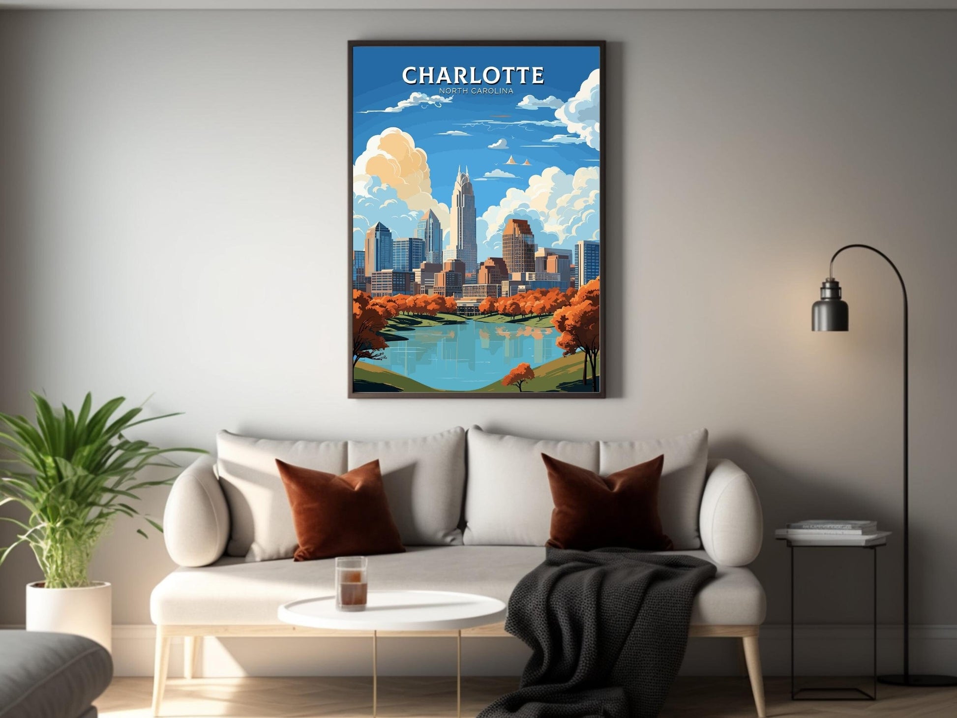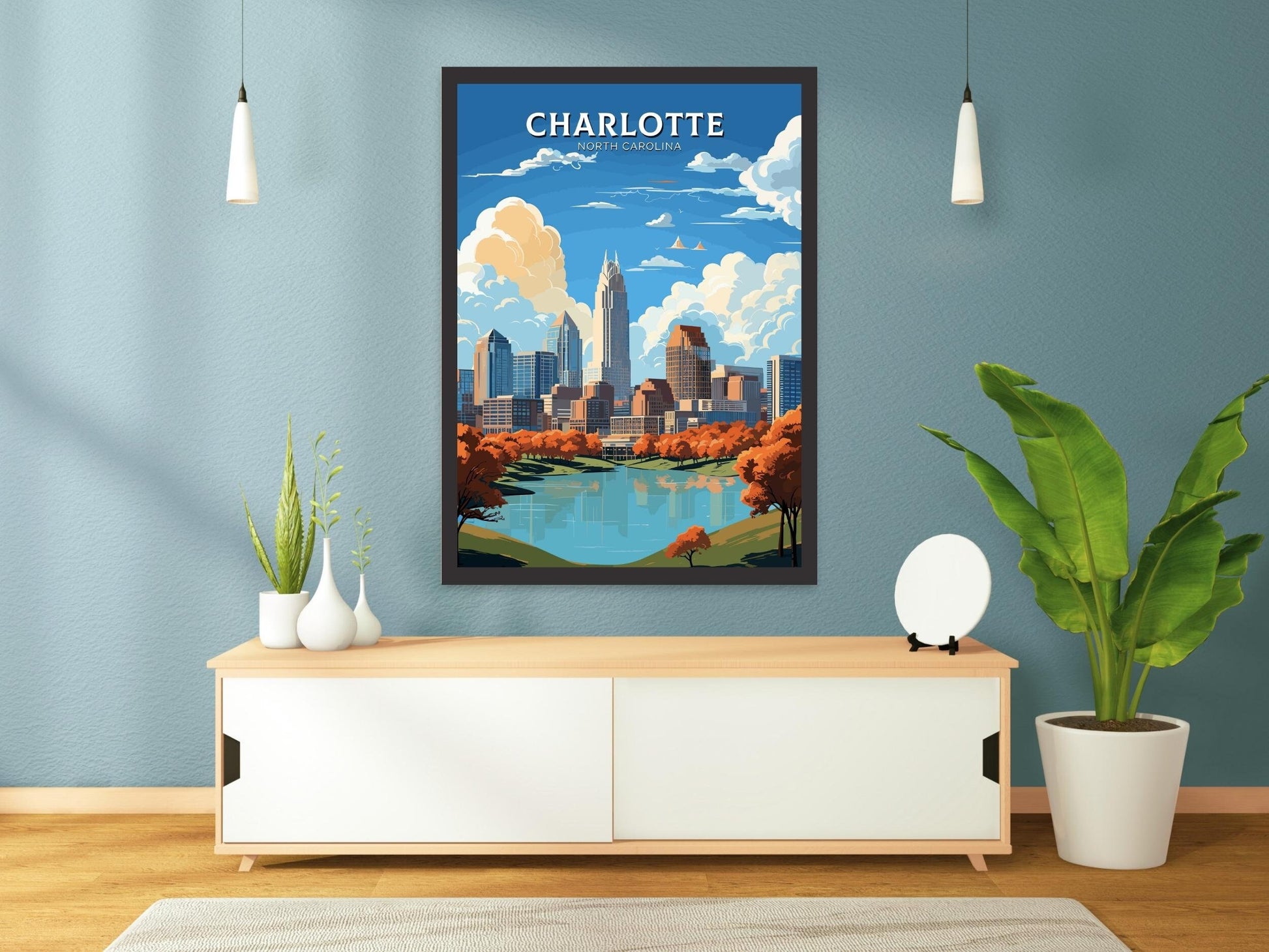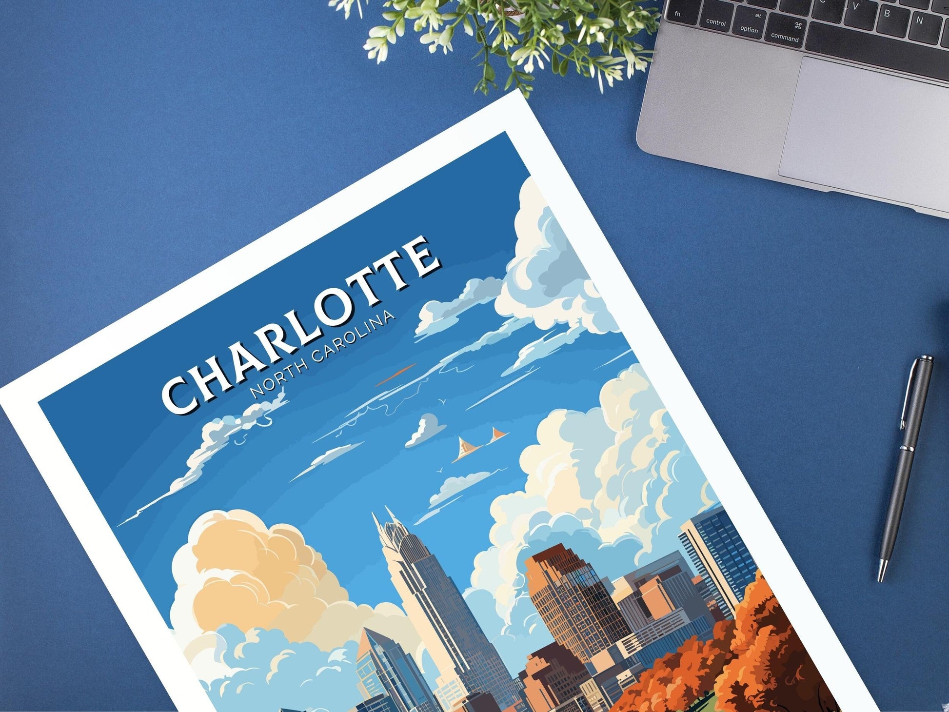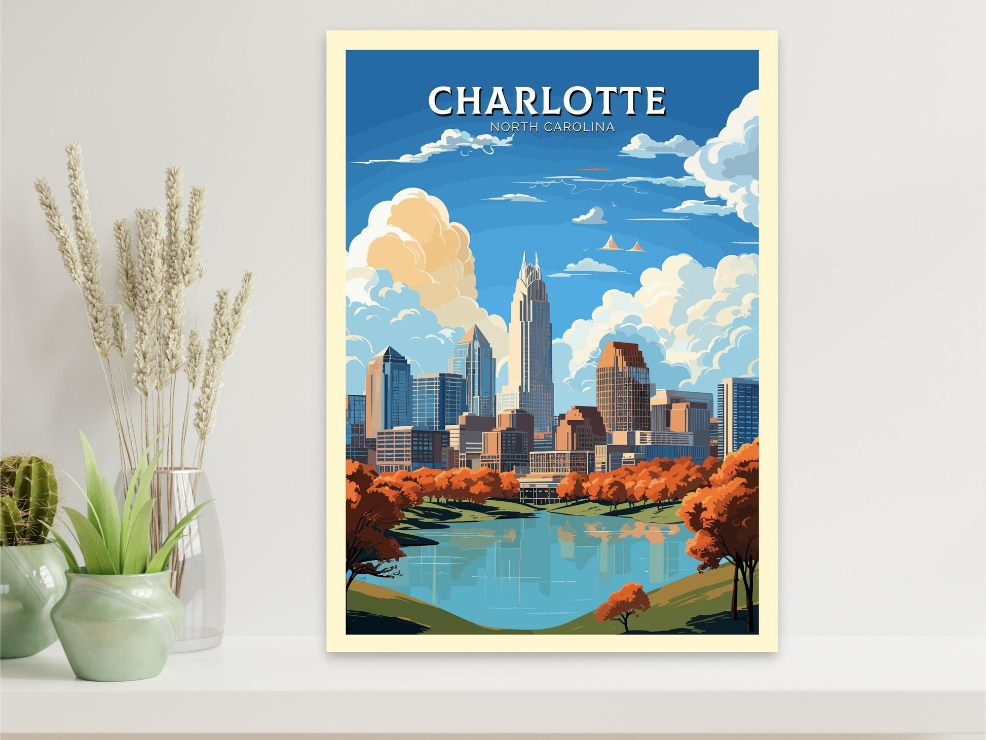 Disponible en téléchargement numérique et en tirage physique premium , cette affiche de voyage de Charlotte est disponible en plusieurs formats, du format standard de la série A au grand format 76 x 102 cm. Imprimée sur un papier de haute qualité aux couleurs vives et aux détails précis, elle est idéale pour les salons, les bureaux ou comme cadeau attentionné pour toute personne inspirée par la plus grande ville de Caroline du Nord.