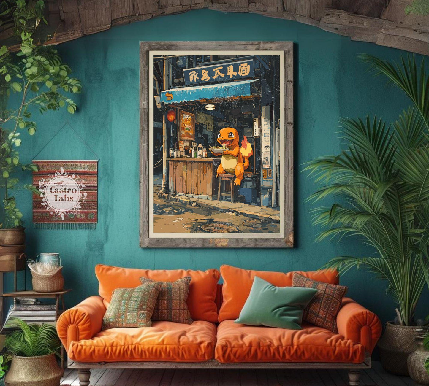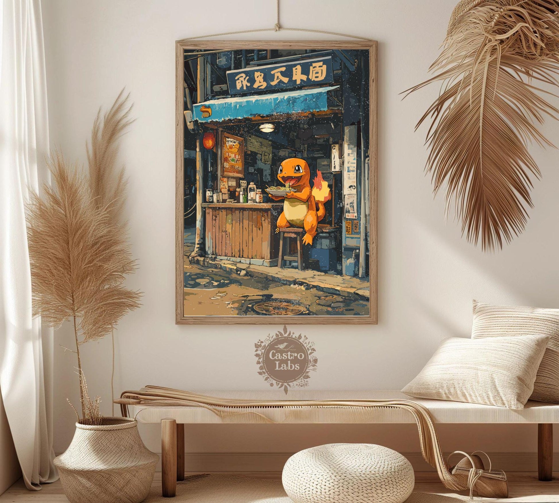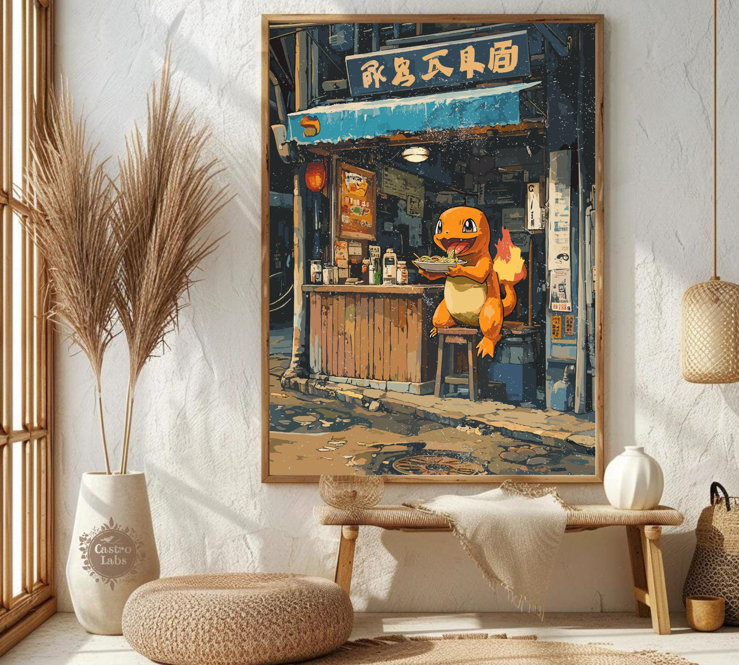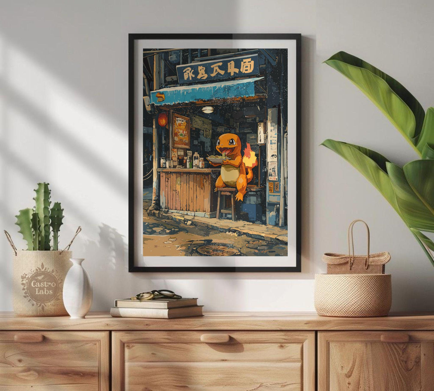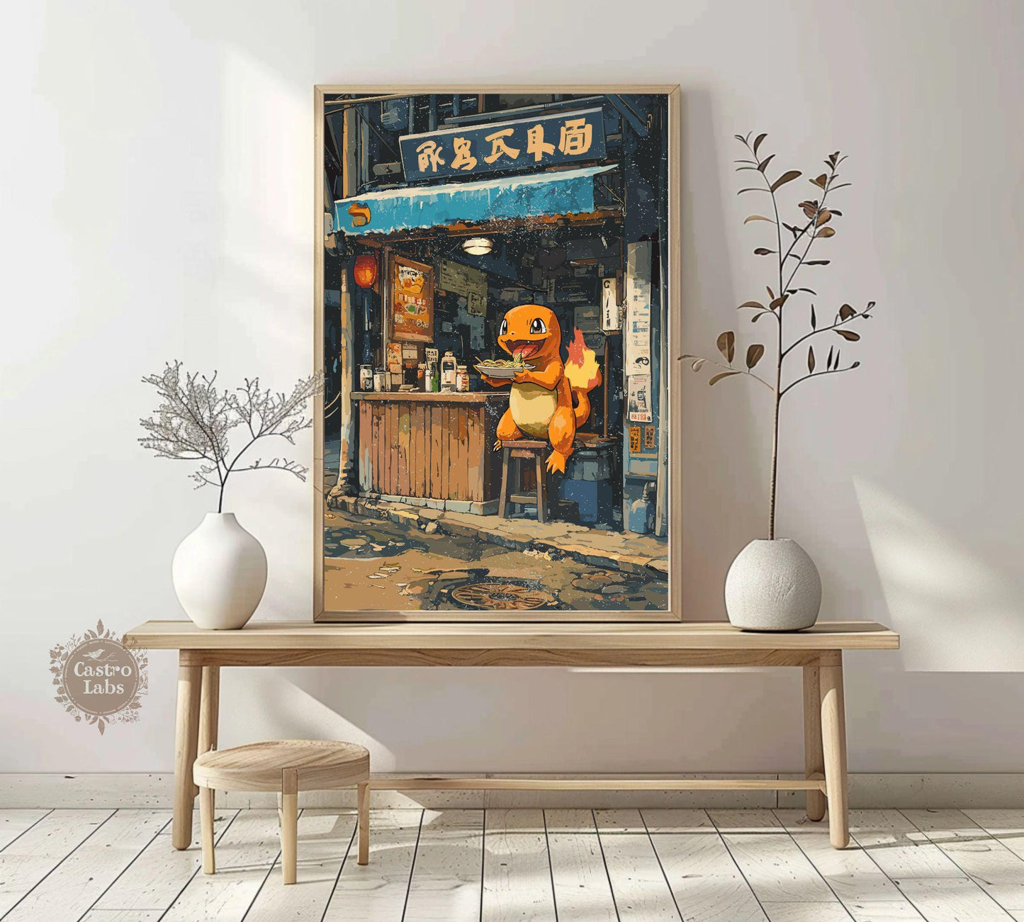 Affiche de la série Ramen de Charmander - Illustration Pokémon de style japonais