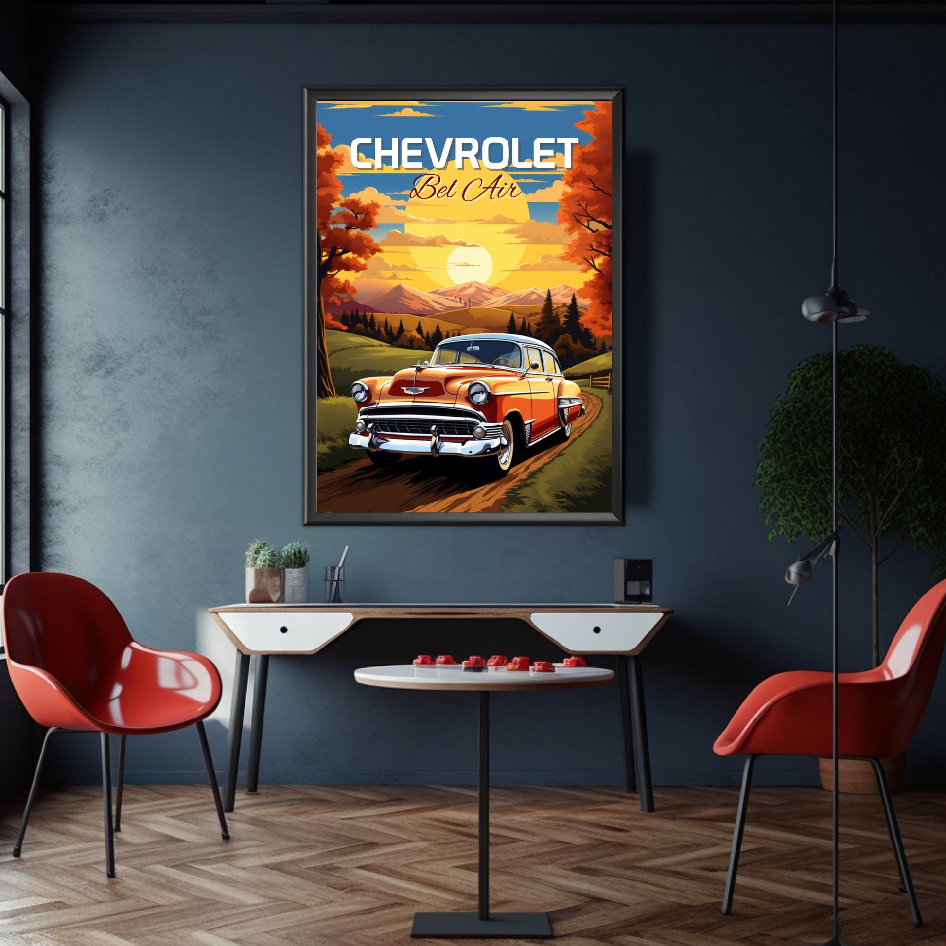 L' affiche Chevrolet Bel Air est l'œuvre d'art murale idéale pour les passionnés de voitures anciennes, les collectionneurs et les passionnés d'automobiles américaines emblématiques. Affichant le design intemporel et l'élégance de la Chevrolet Bel Air , cette affiche de qualité supérieure capture le style, le charme et l'héritage de l'une des voitures classiques les plus appréciées des États-Unis. Idéale pour décorer un garage , un espace réservé aux hommes , un showroom ou tout autre espace dédié aux véhicules anciens , cette affiche murale Bel Air ajoute nostalgie, sophistication et histoire automobile à votre collection.