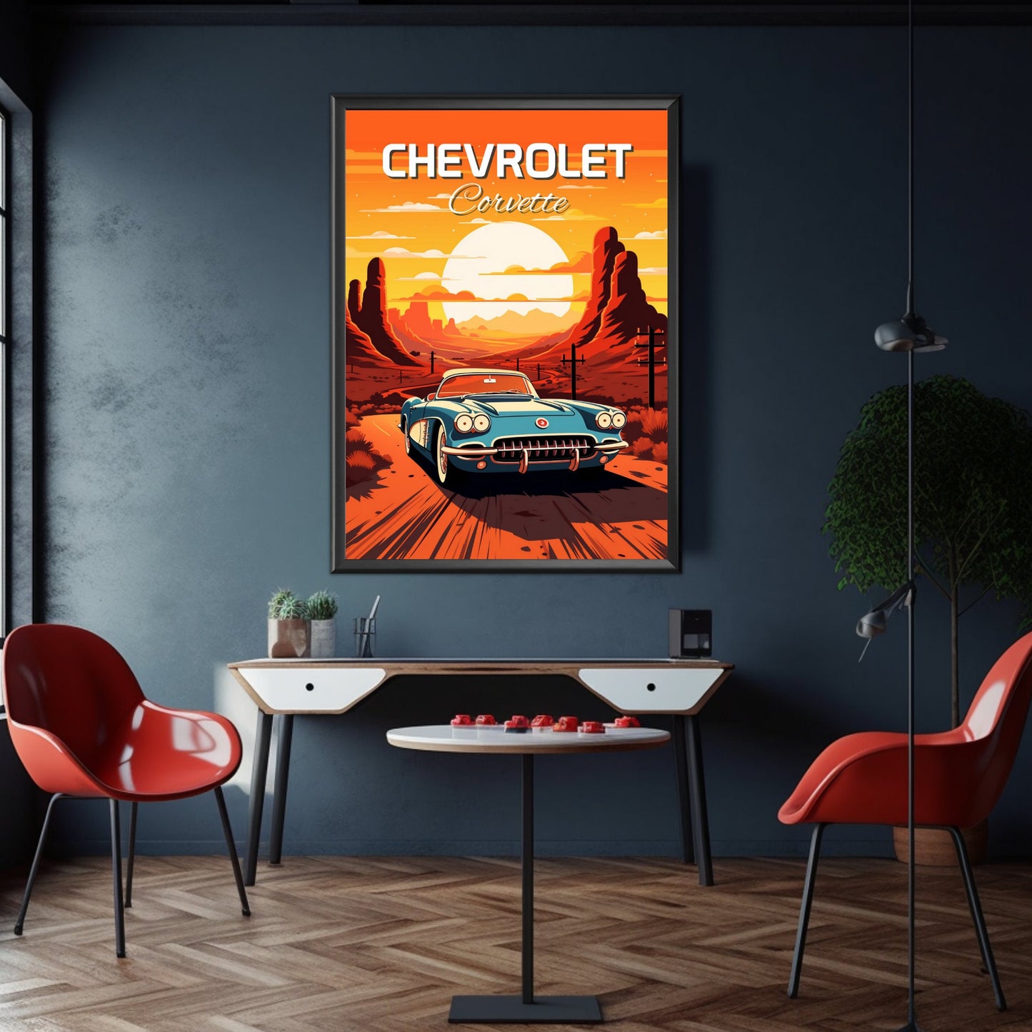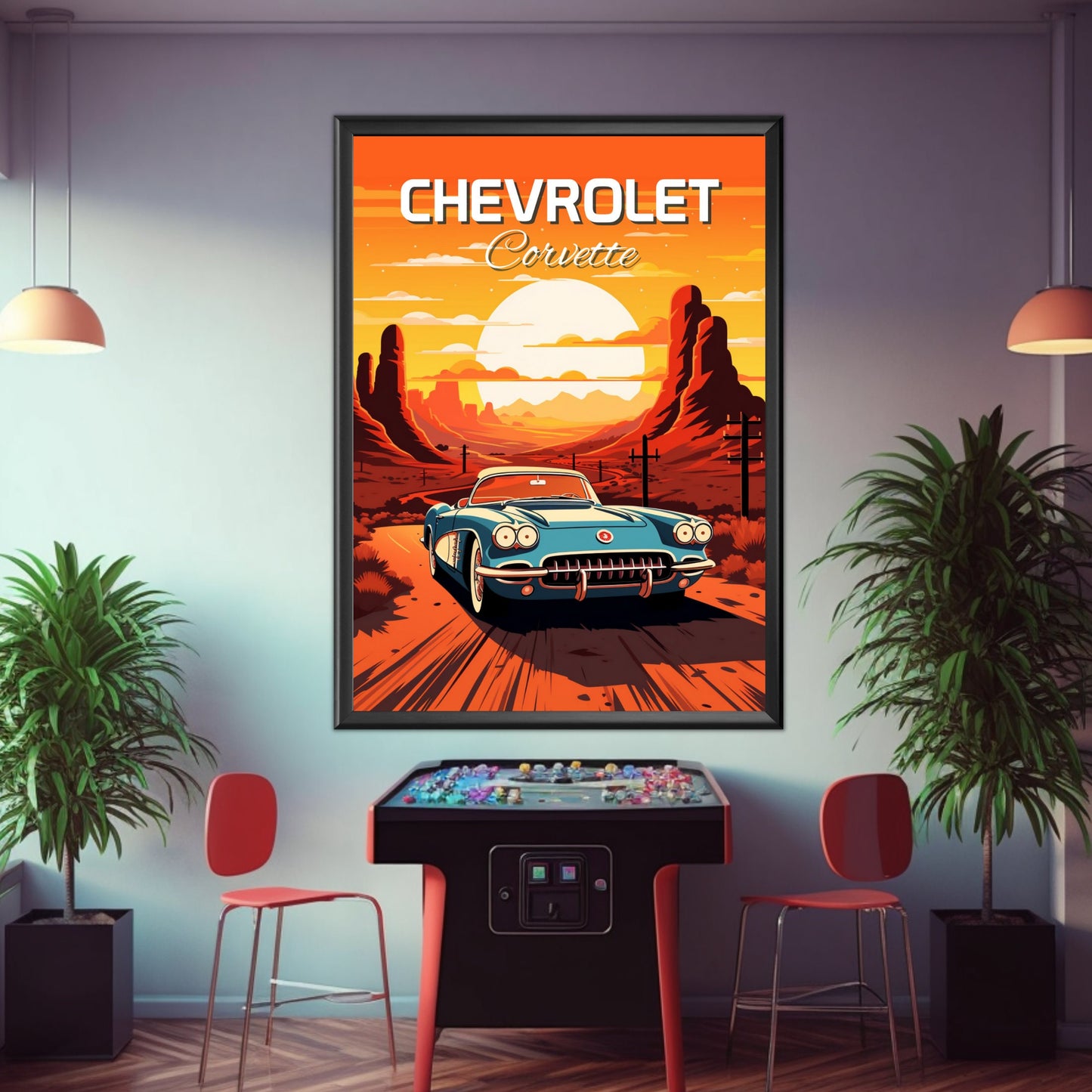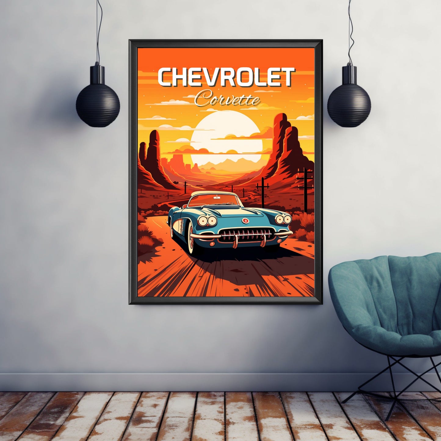 Impression Chevrolet Corvette C1 – Décoration murale classique de voiture de sport américaine