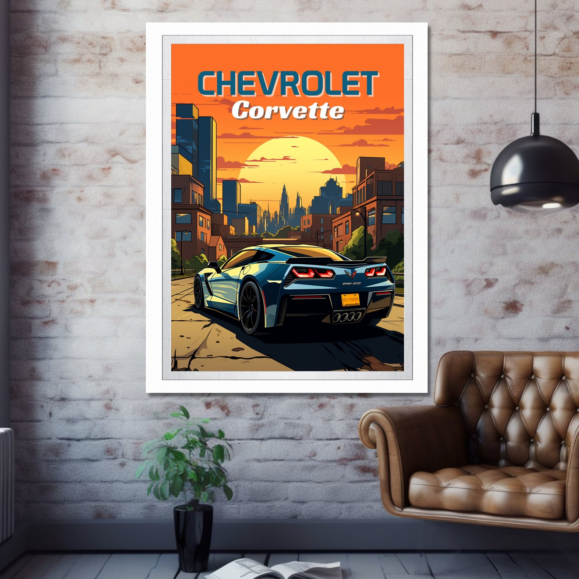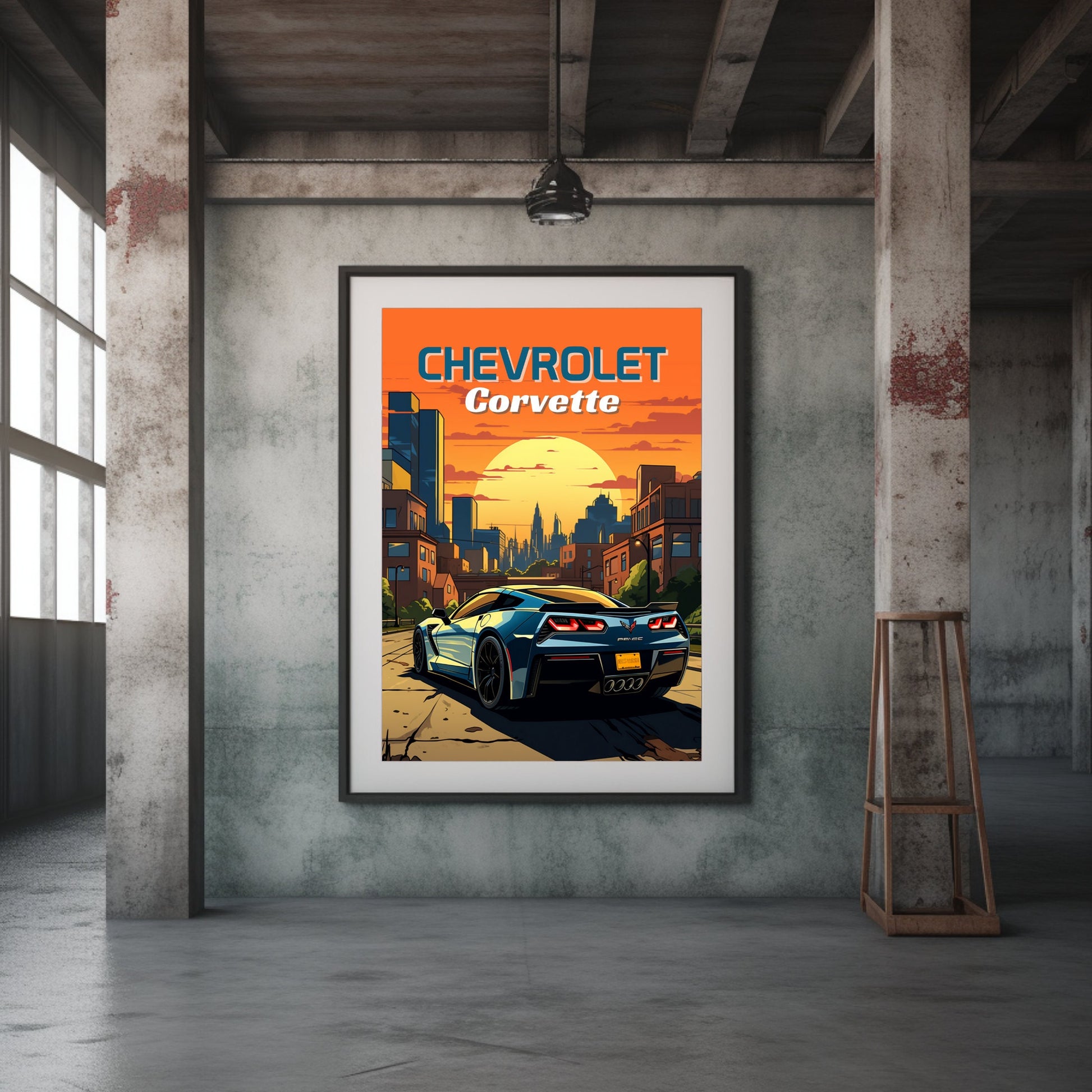 Affiche Chevrolet Corvette C7 – Décoration murale moderne de voiture de sport américaine