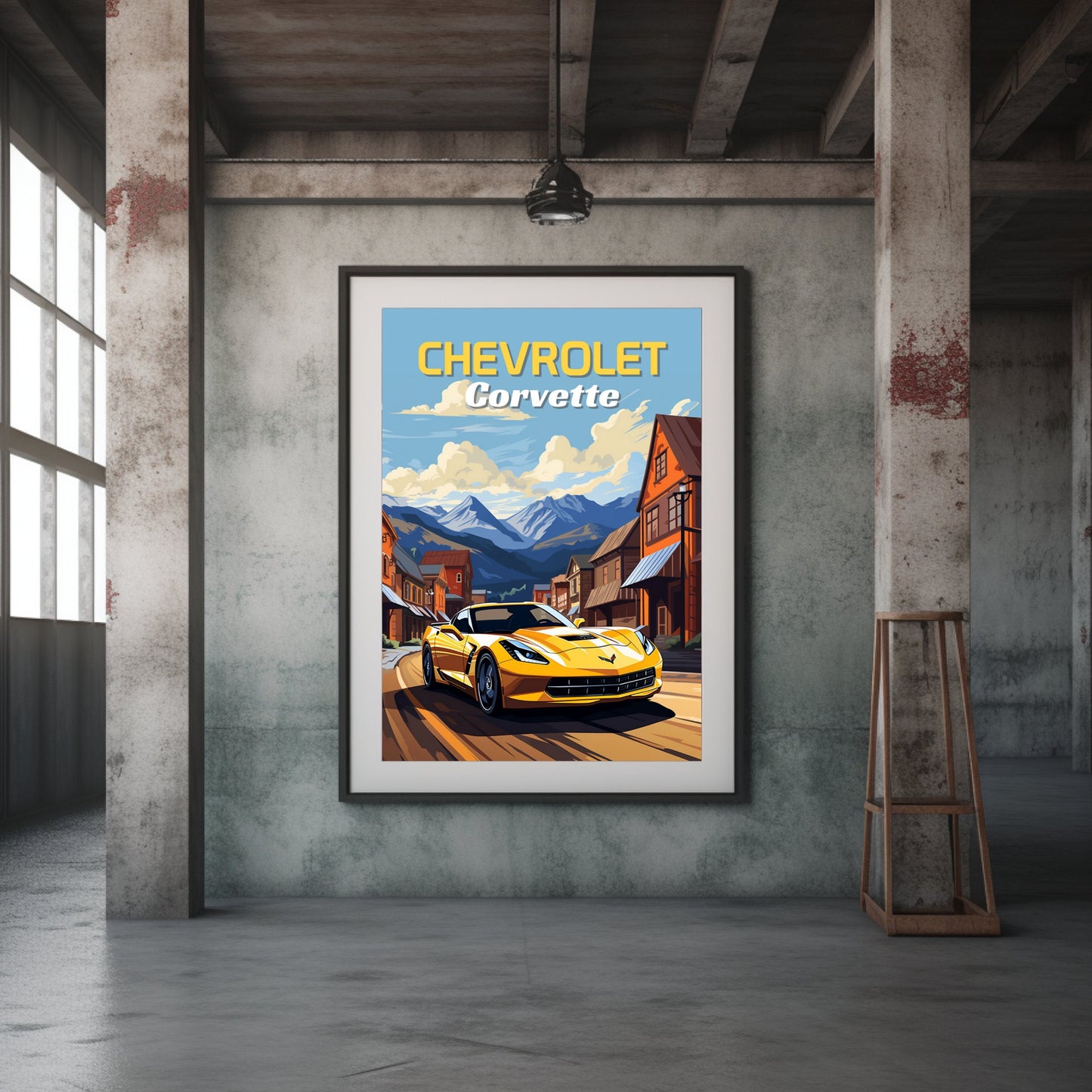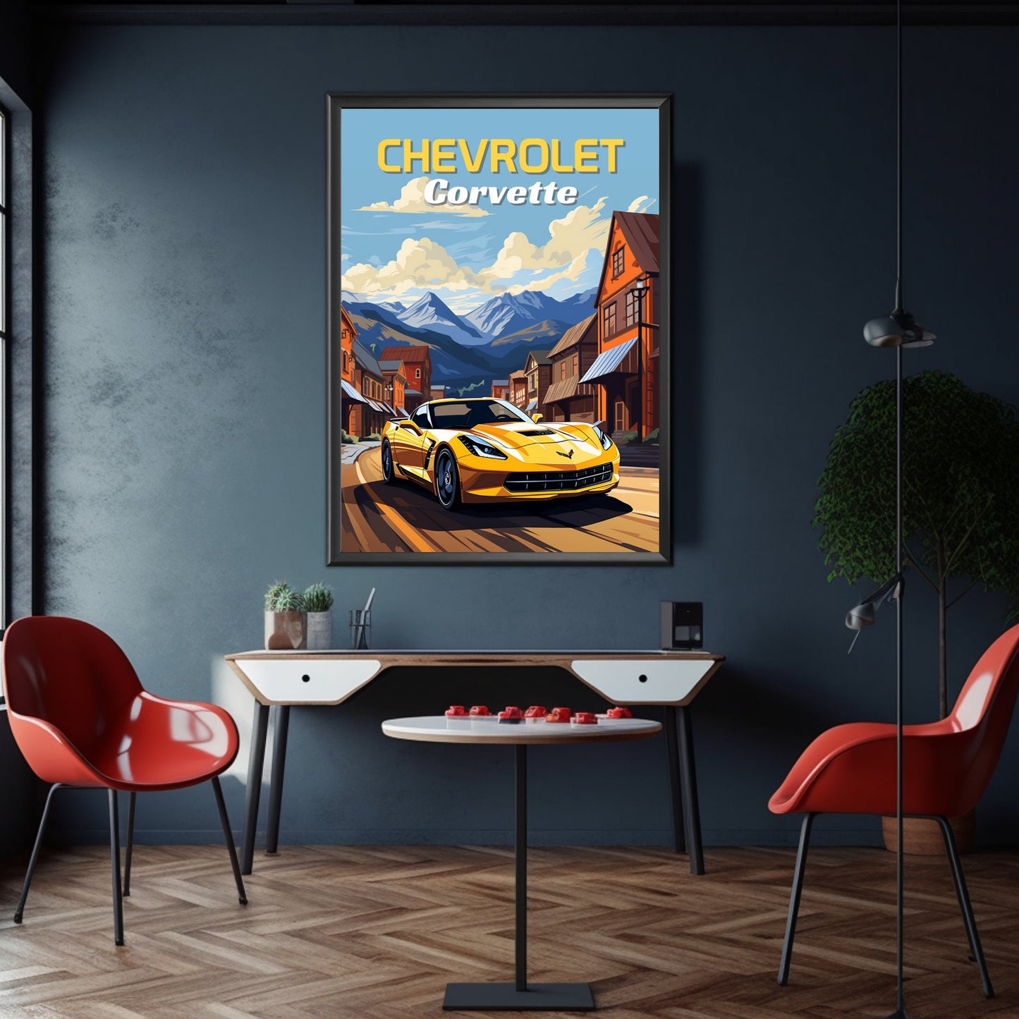 Impression Chevrolet Corvette C7 – Décoration murale moderne de voiture de sport américaine
