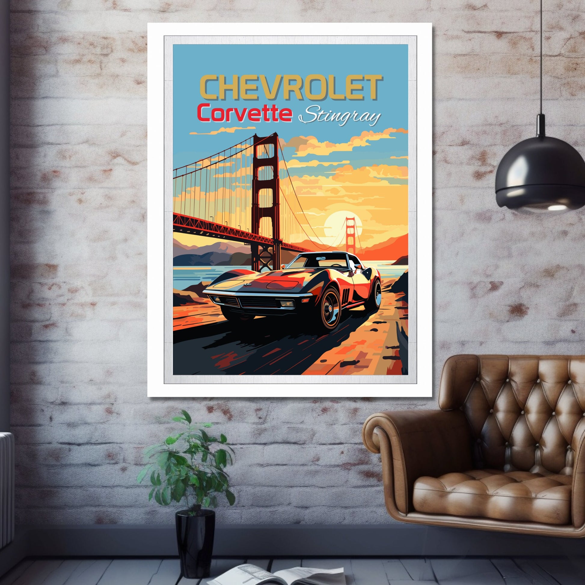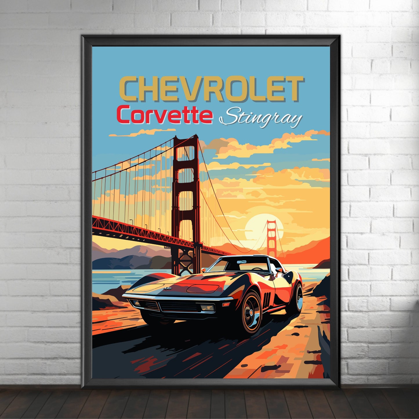 Impression Chevrolet Corvette Stingray C3 – Décoration murale classique de voiture de sport américaine