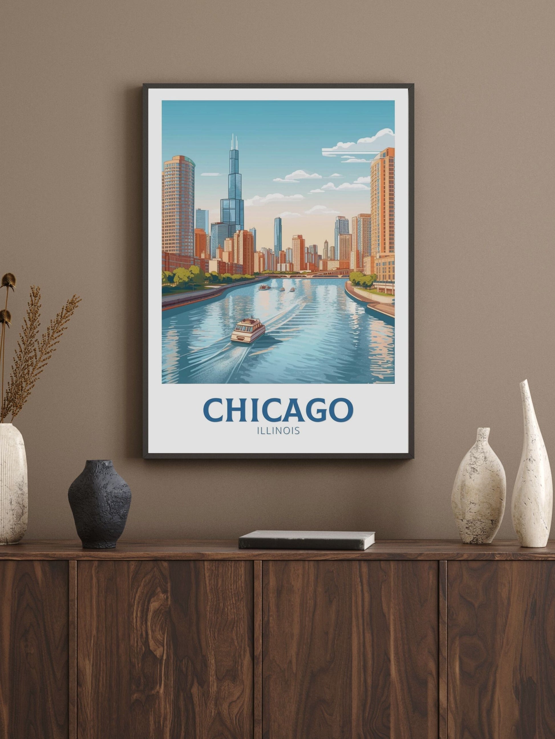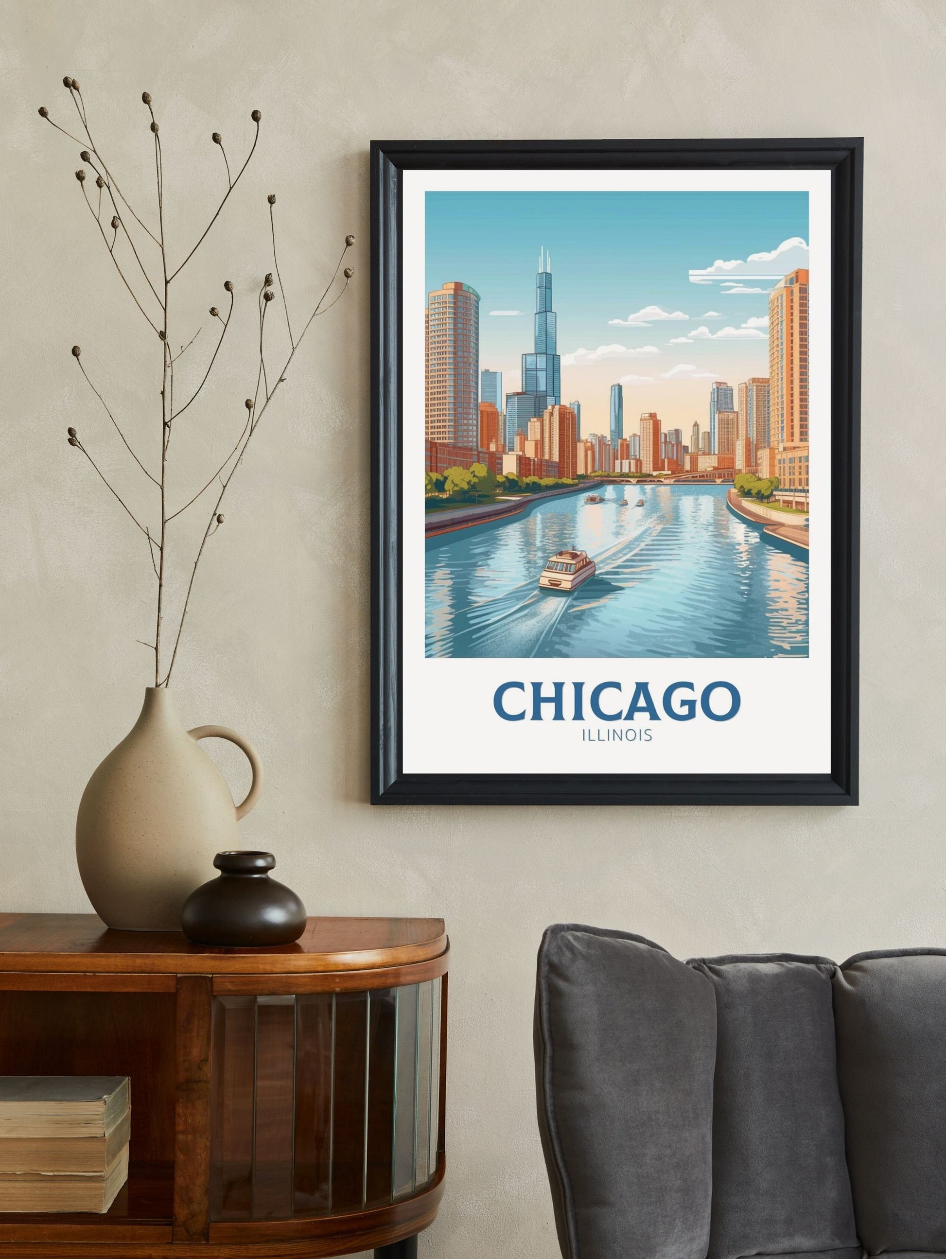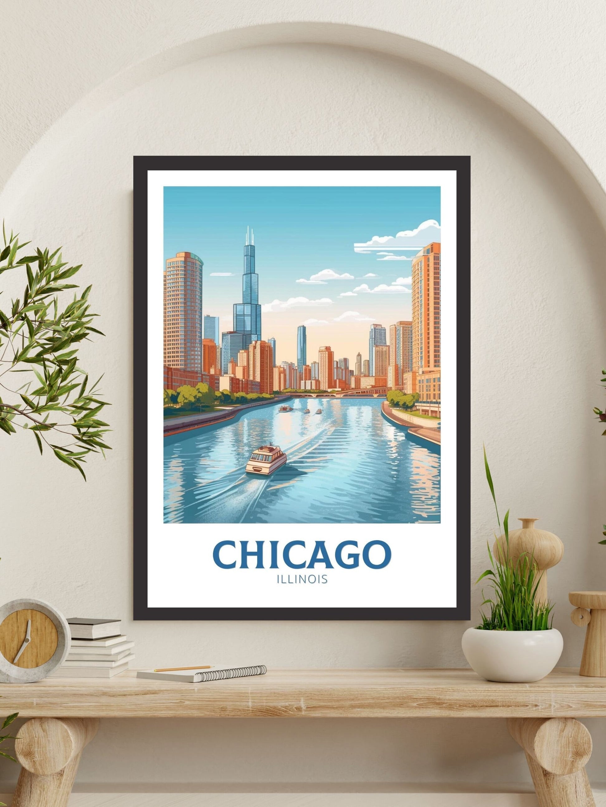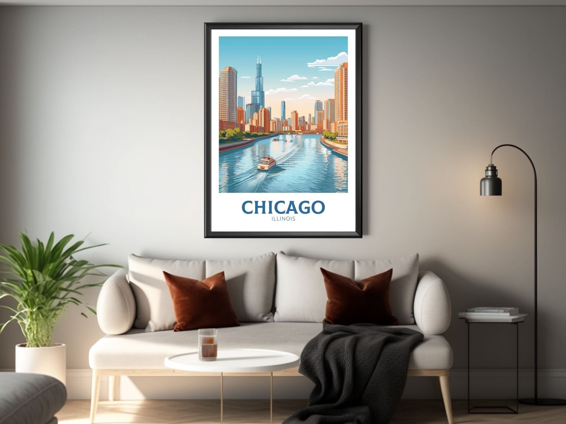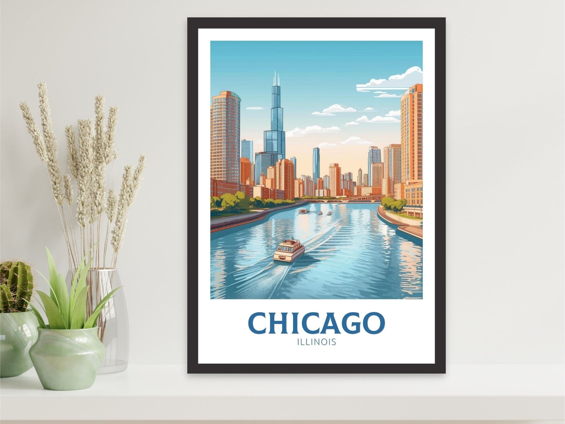 Disponible en téléchargement numérique et en tirage physique premium , cette décoration murale Chicago Travel est disponible en plusieurs formats, des formats standard de la série A aux grands formats 76 x 102 cm. Imprimée sur du papier de haute qualité aux couleurs vives et aux détails nets, elle est idéale pour les salons, les bureaux ou comme cadeau attentionné pour toute personne inspirée par la plus grande ville de l'Illinois.
