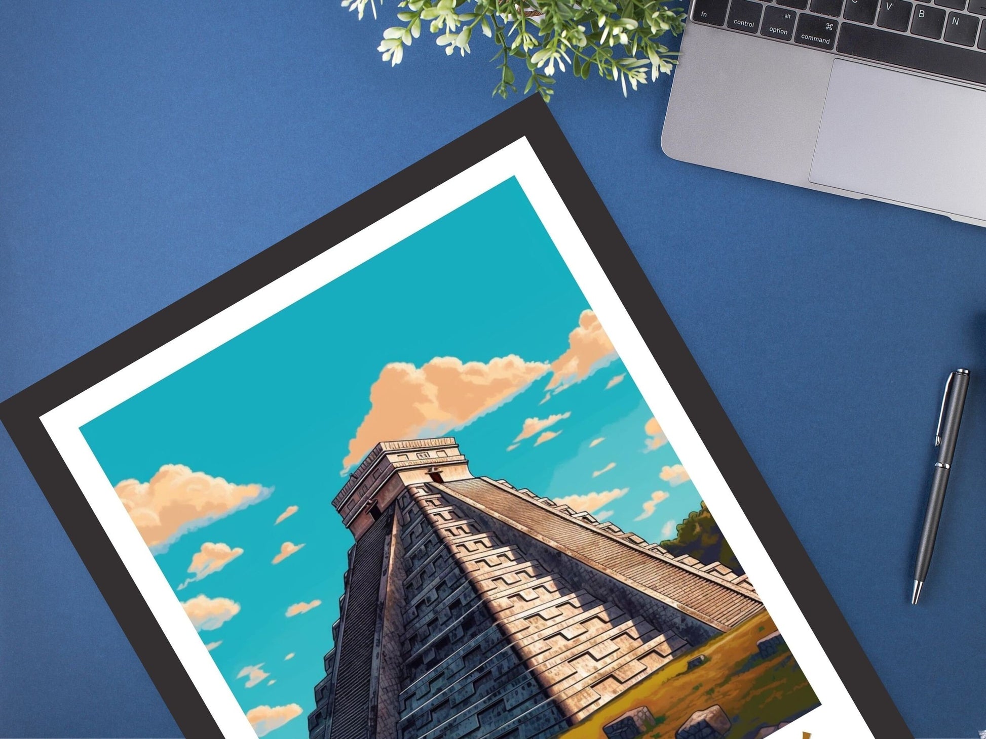 Cette affiche de Chichen Itza fait entrer la majesté ancestrale de la civilisation maya chez vous. Connue pour ses incroyables pyramides et temples, Chichen Itza est l'un des sites archéologiques les plus emblématiques du Mexique. Ce poster met en valeur la majestueuse pyramide d'El Castillo, une merveille architecturale qui attire des visiteurs du monde entier.