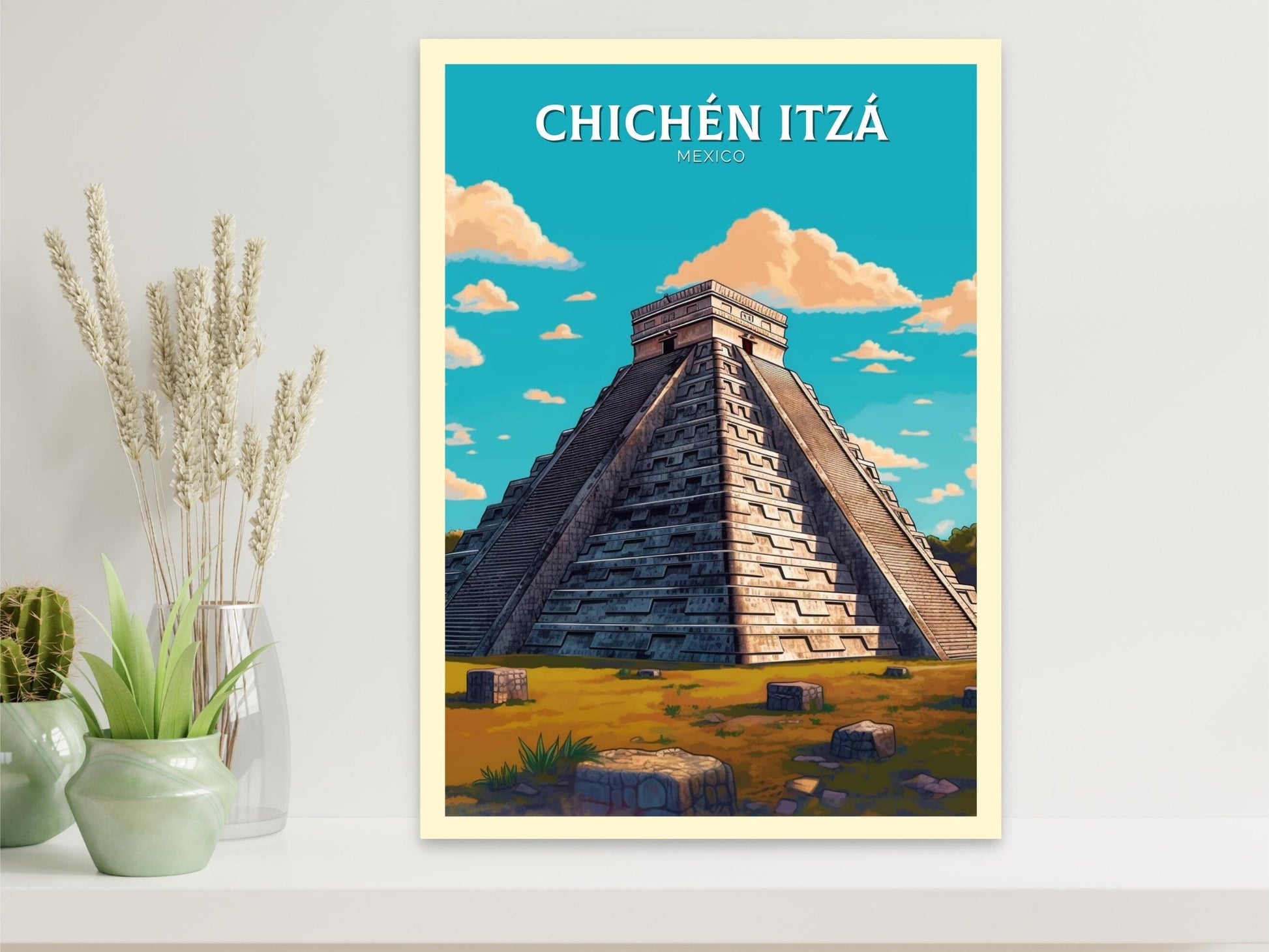 Symbole de la culture maya, l' estampe de la pyramide de Chichen Itza vous transporte sur l'un des sites archéologiques les plus importants au monde. Son design complexe et son importance historique en font un ajout idéal à toute collection ou décoration.