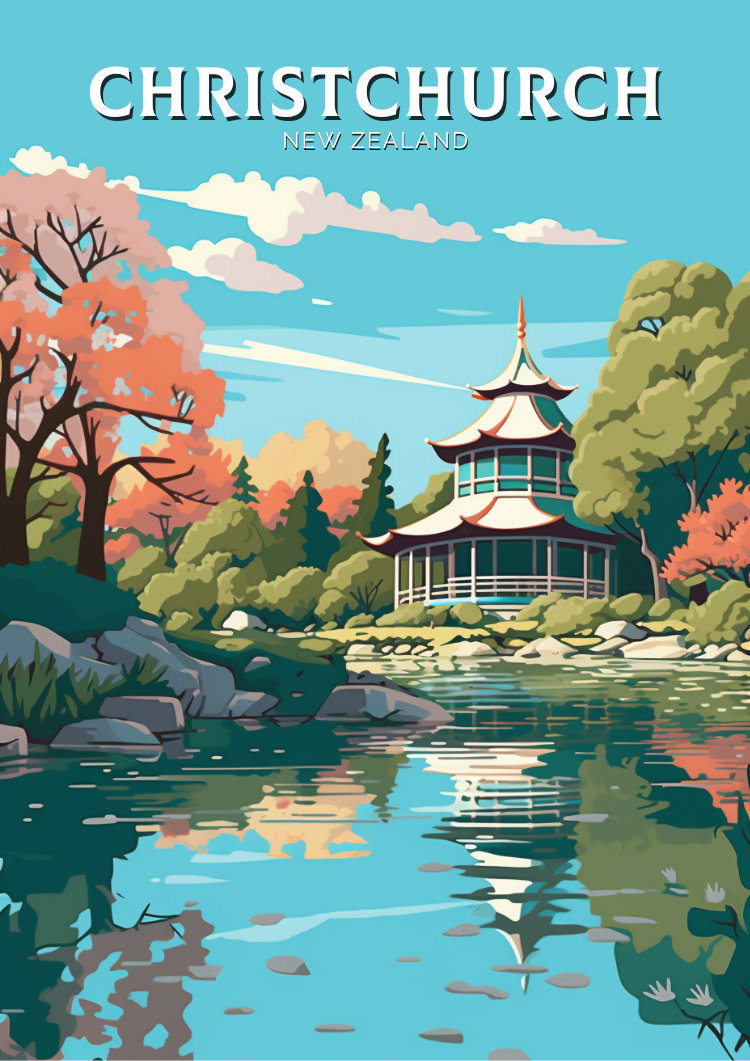 Célébrez l'esprit de Christchurch avec cet imprimé de voyage élégant et intemporel.