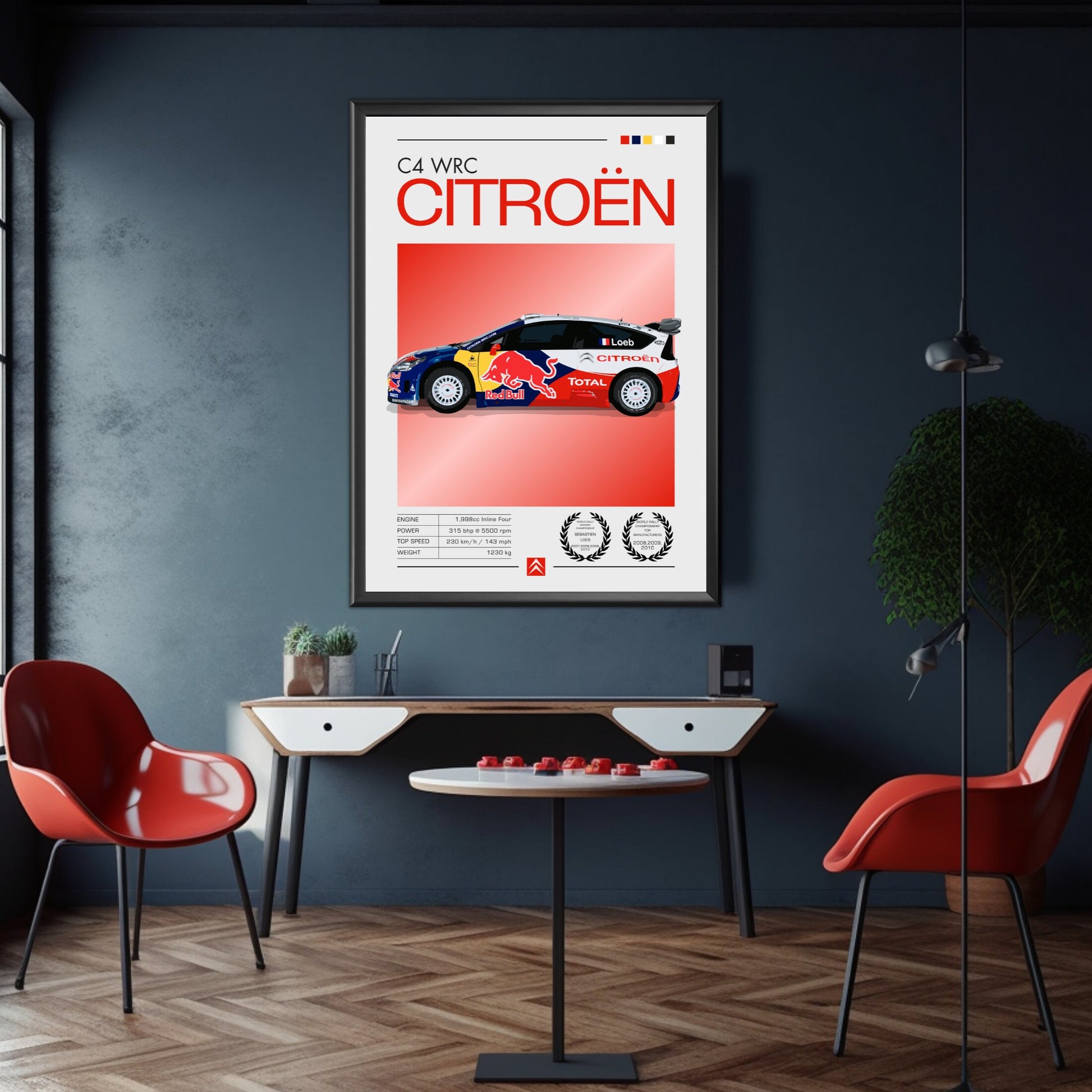 Affiche Citroën C4 WRC – Sébastien Loeb Champion des Rallyes Car Print