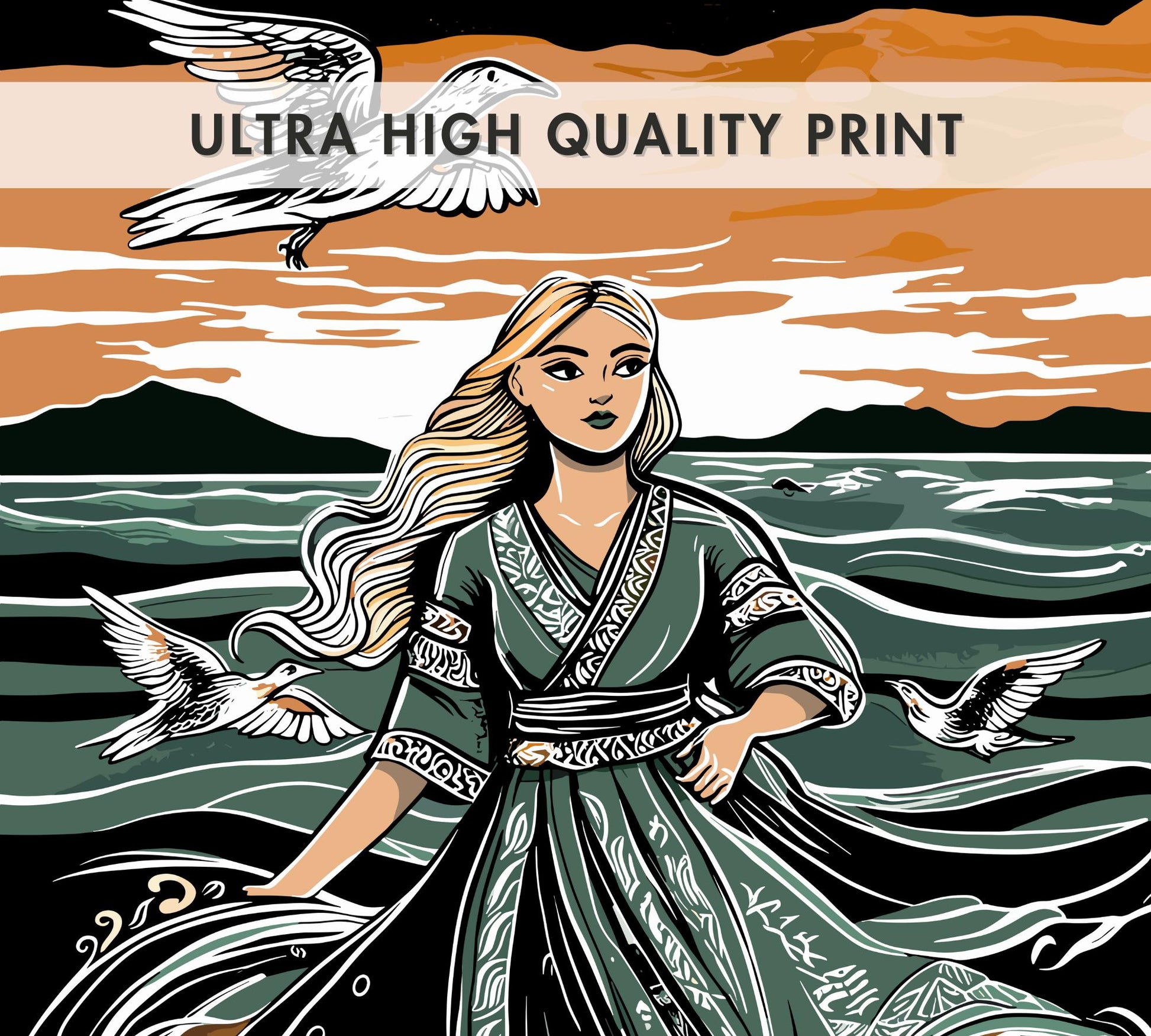 Réalisée sur un papier durable et de haute qualité, cette œuvre d'art mythologique celtique dévoile son charme enchanteur, parfaite pour les amateurs de mythes ou ceux qui recherchent une touche romantique à leur mur. C'est l'appel de la sirène de Cliodhna.