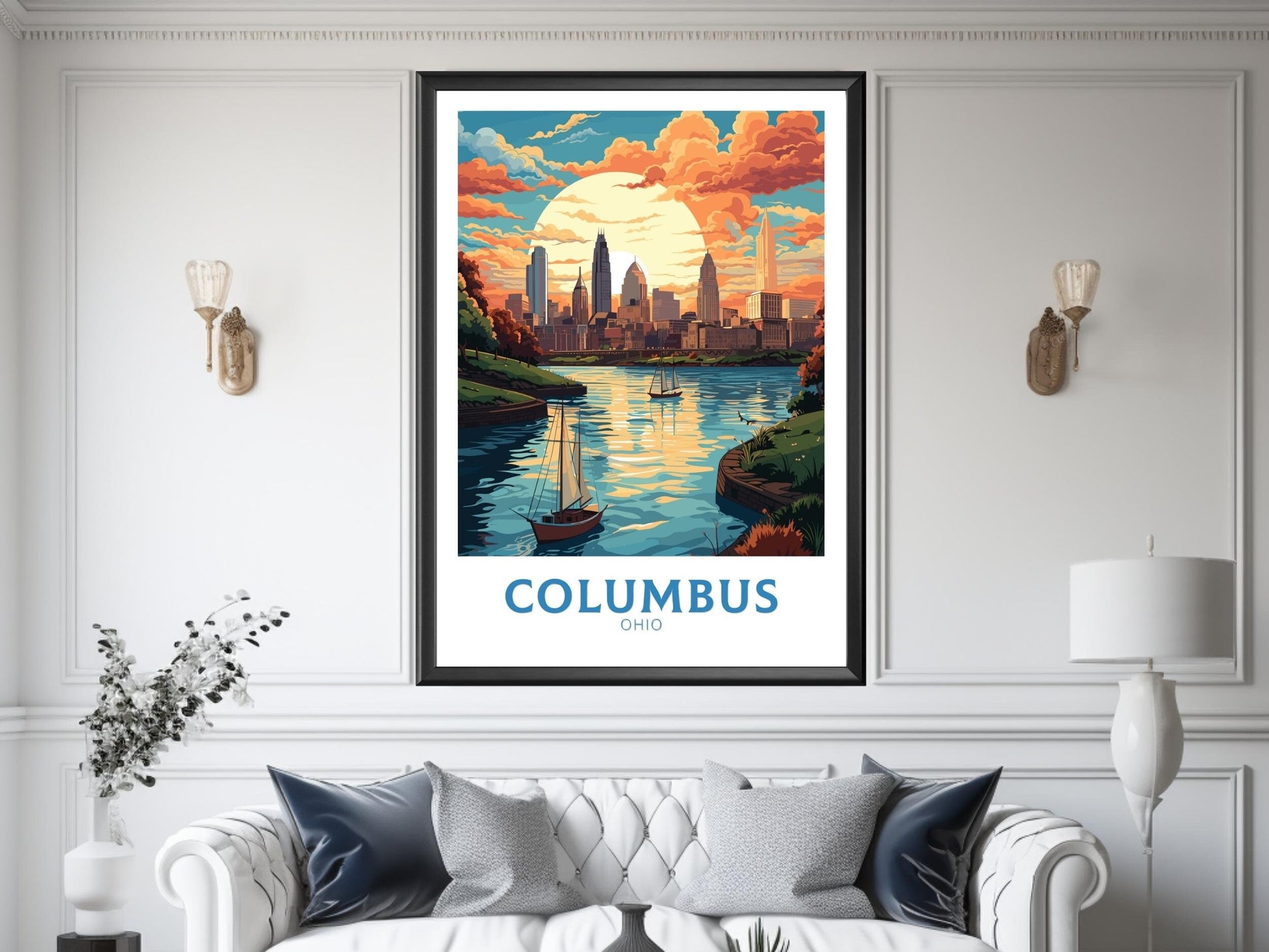 Disponible en téléchargement numérique et en tirage physique premium , cette affiche de voyage de Columbus est disponible en plusieurs formats, des formats standard de la série A aux grands formats 76 x 102 cm. Imprimée sur un papier de haute qualité aux couleurs vives et aux détails précis, elle est idéale pour les salons, les bureaux ou comme cadeau attentionné pour toute personne inspirée par la capitale de l'Ohio.