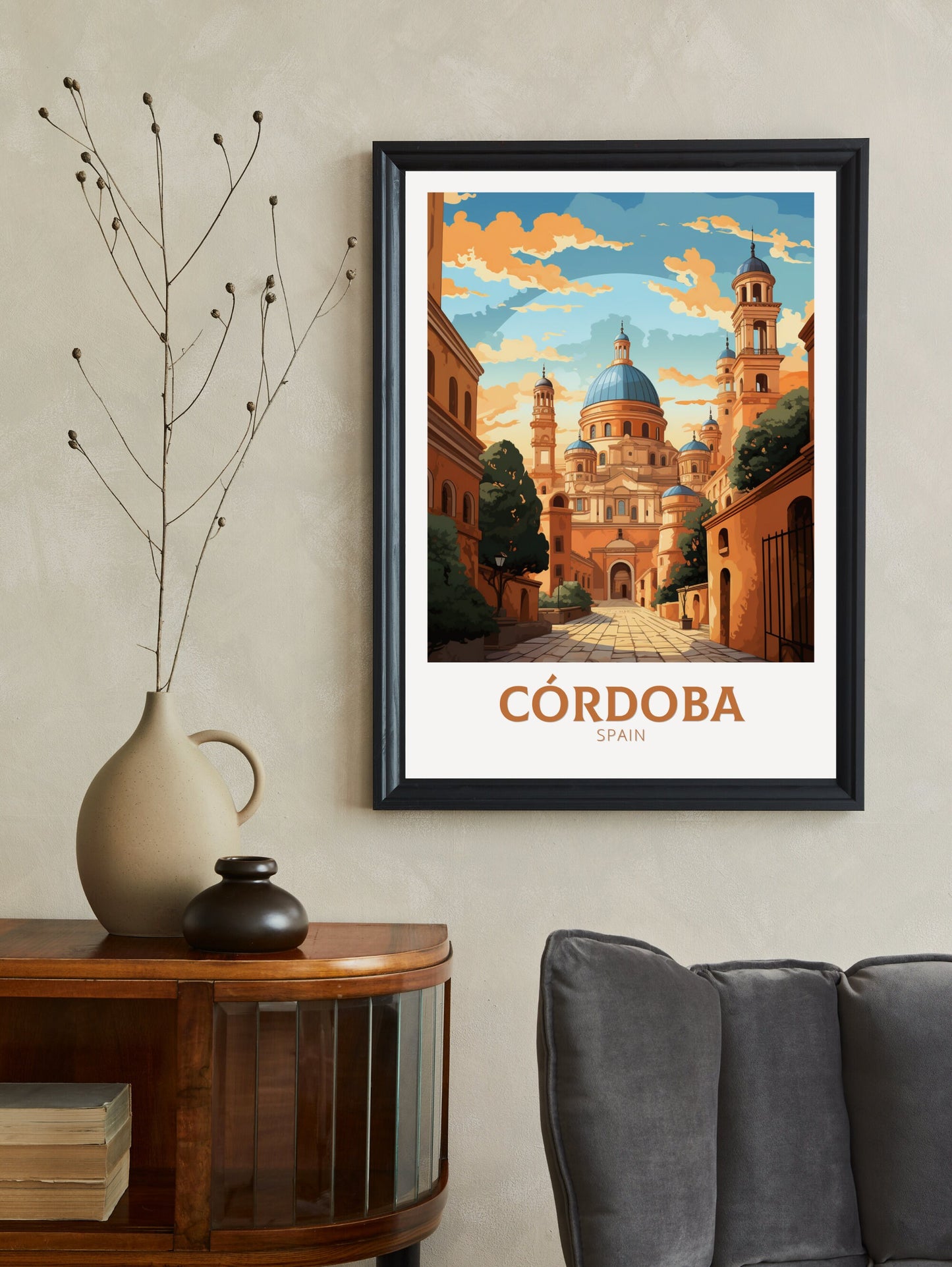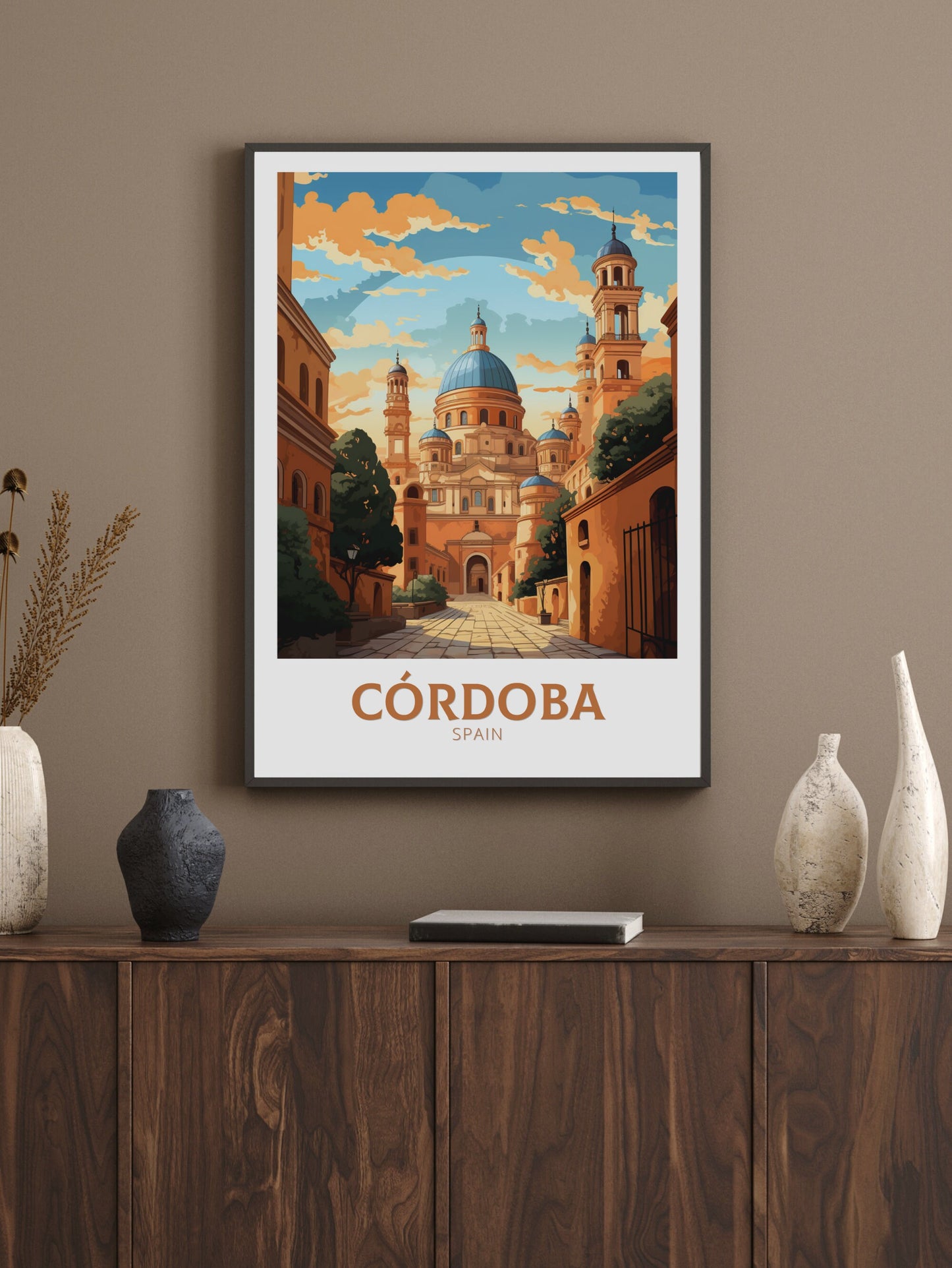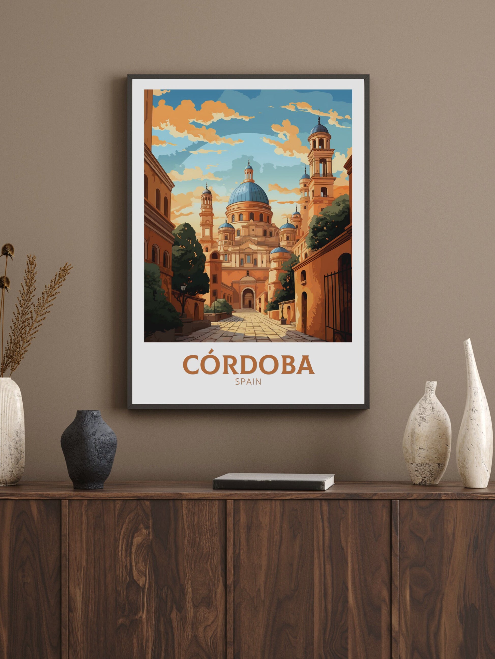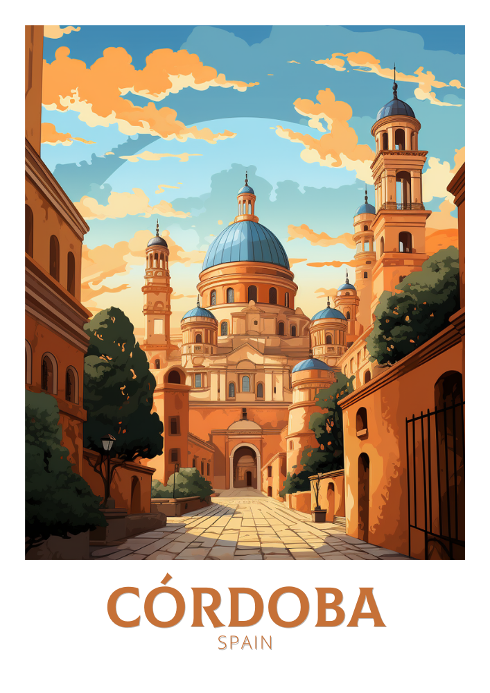 Découvrez la riche histoire et l'architecture époustouflante du sud de l'Espagne avec cette affiche de voyage de Cordoue . Mettant en vedette l'emblématique Mezquita et les charmantes rues andalouses, cette œuvre fait entrer l'esprit de Cordoue chez vous.