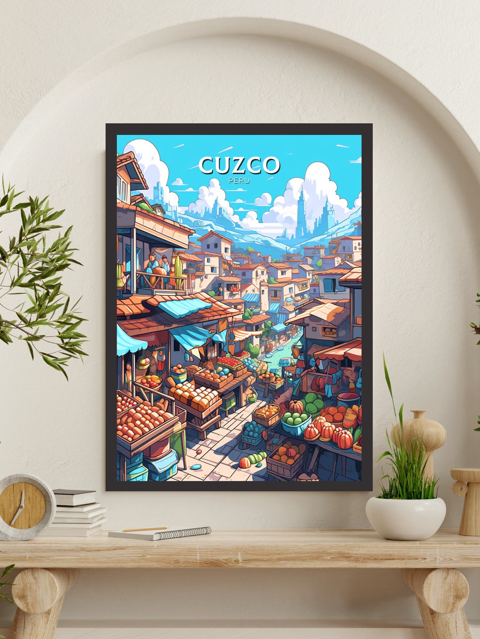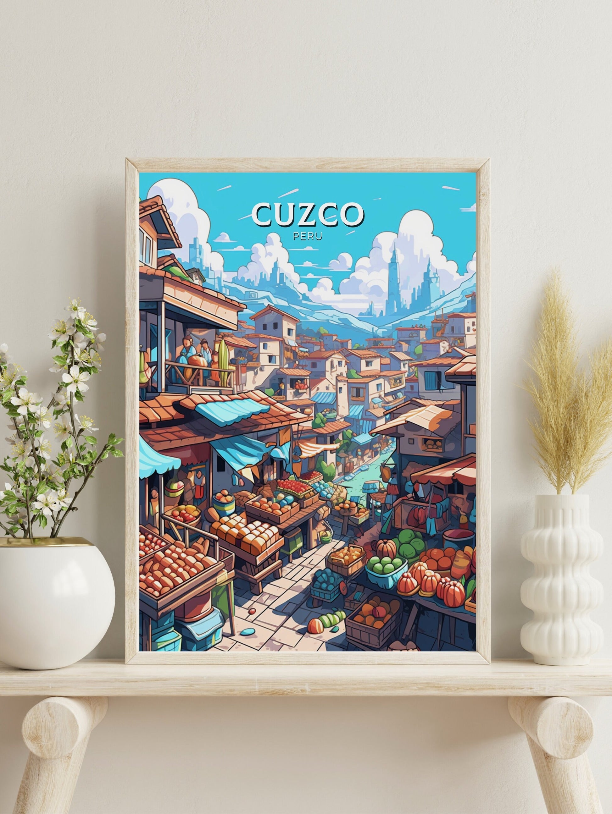 Cette œuvre mêle les ocres chauds et les bleus andins froids à l'essence ancestrale de Cuzco, évoquant le charme d'un voyage vintage avec une touche de modernité. Imprimée sur un papier de qualité supérieure, elle offre un éclat durable et une finition lisse, ce qui en fait un cadeau idéal pour les aventuriers ou les collectionneurs d'art. Cette affiche Cuzco apporte une touche de nostalgie péruvienne à tous vos murs.