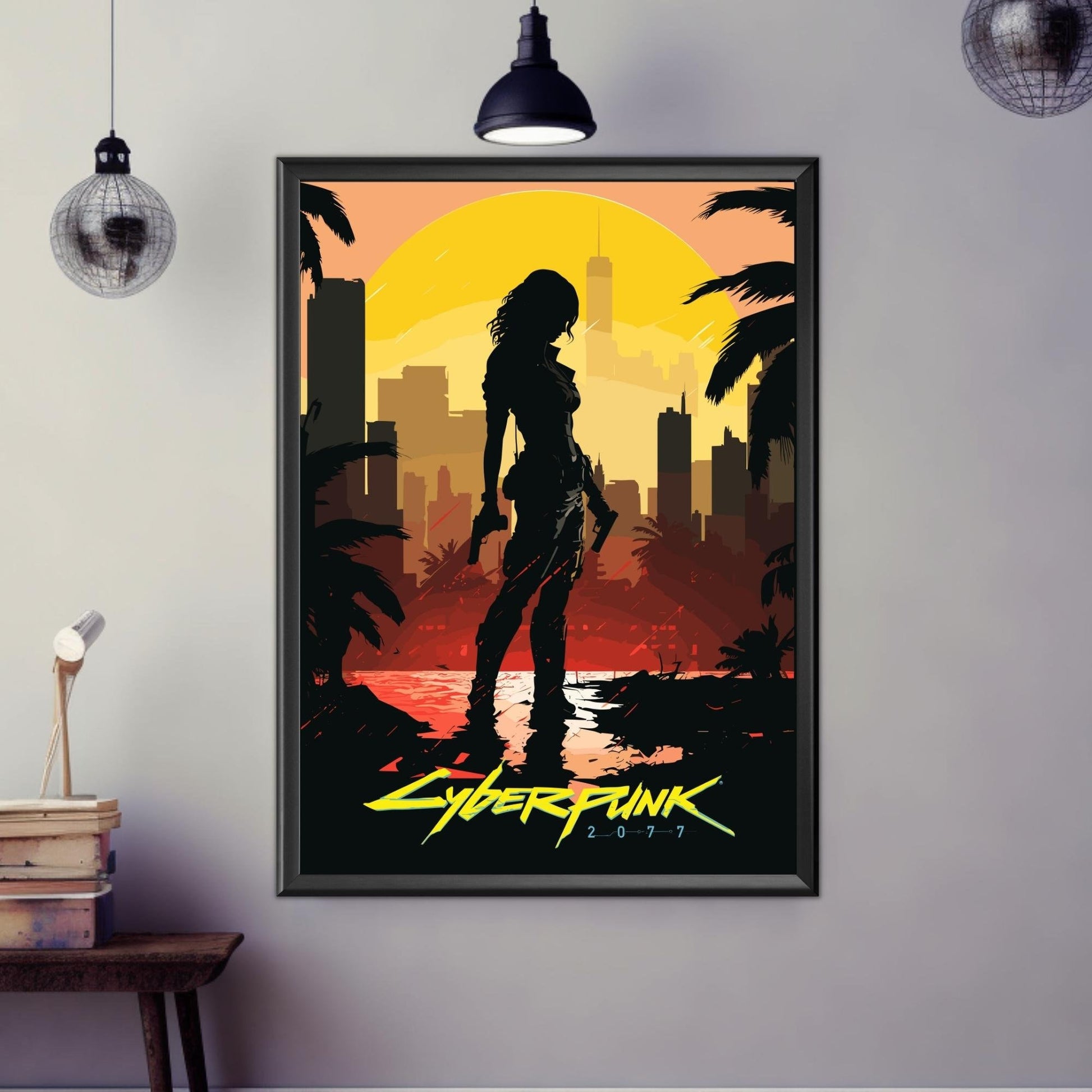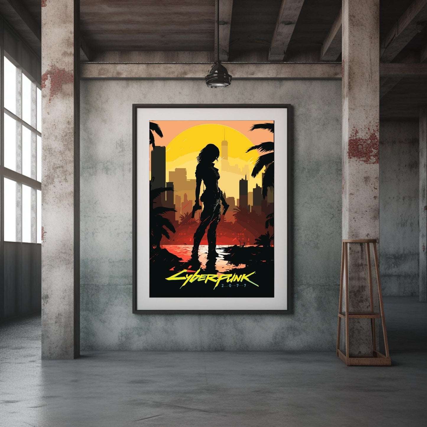 Affiche Cyberpunk 2077 – Art futuriste au néon pour les fans de Night City