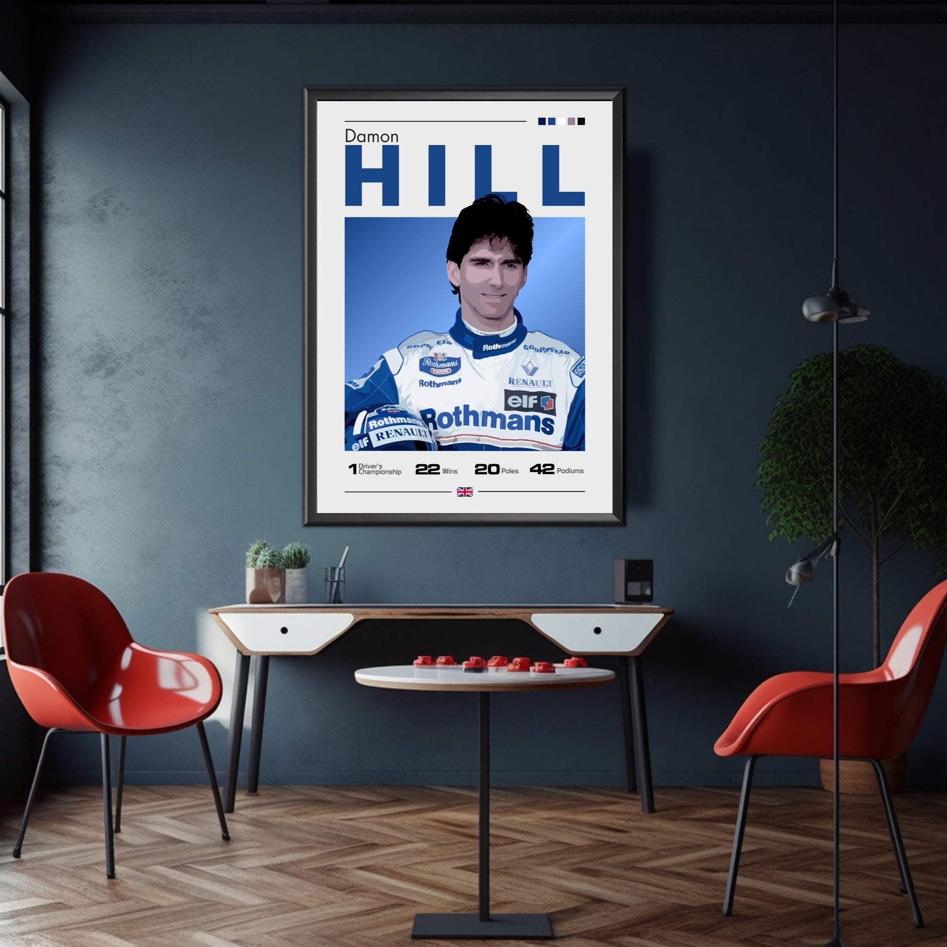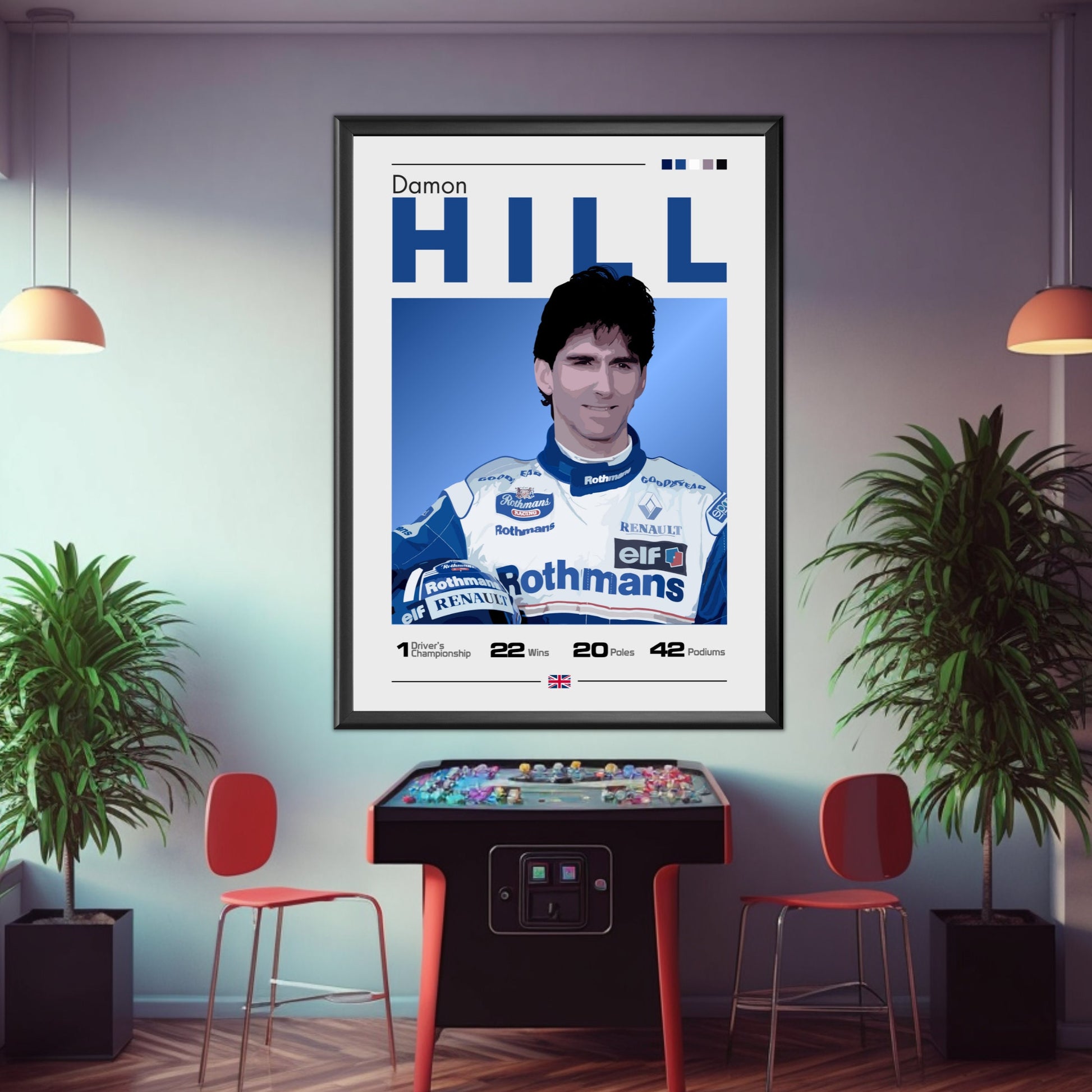 Affiche Damon Hill – Champion du monde de F1 1996, décoration murale pour les fans