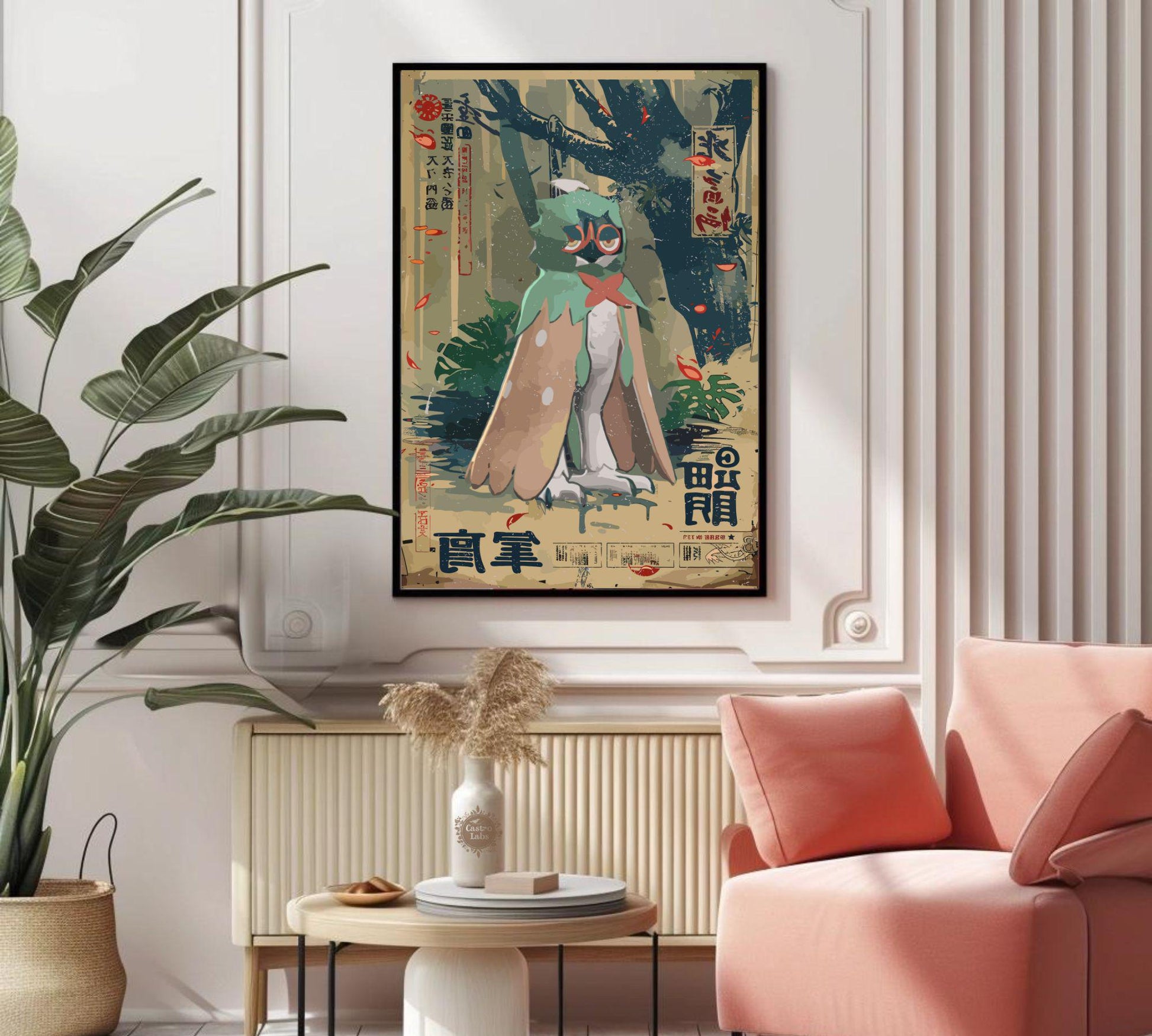 Affiche Pokémon Decidueye - Illustration d'anime de style japonais