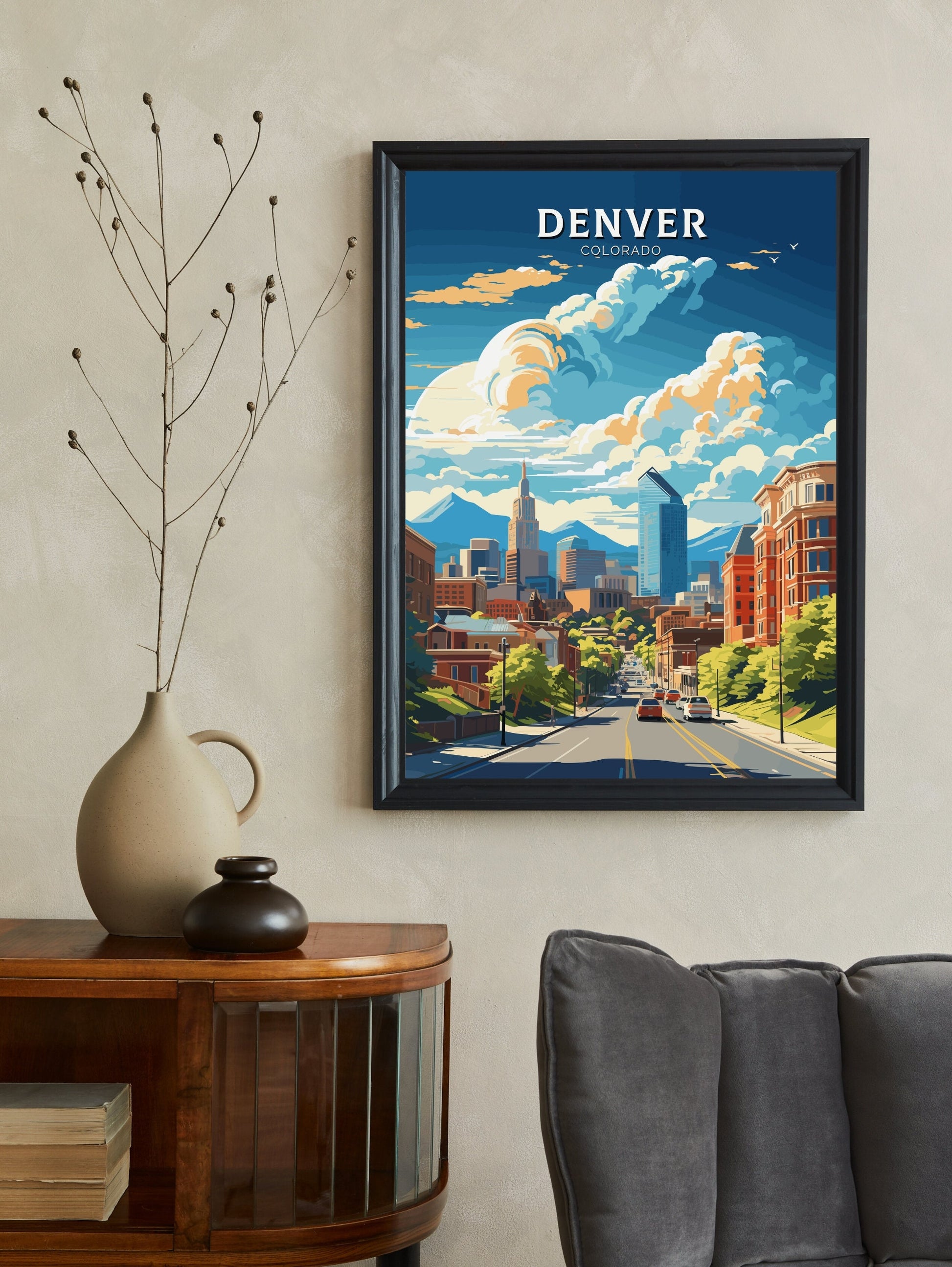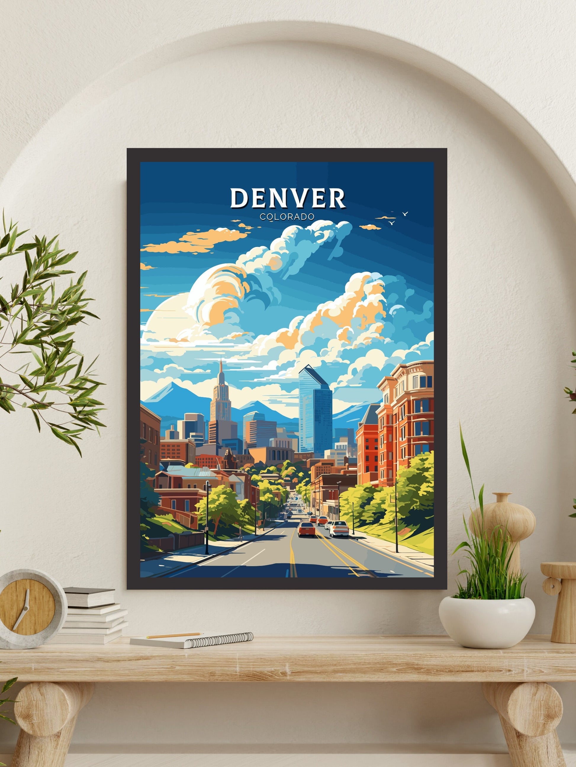 Disponible en téléchargement numérique et en tirage physique premium , cette affiche de voyage de Denver est disponible en plusieurs formats, du format standard de la série A au grand format 76 x 102 cm. Imprimée sur un papier de haute qualité aux couleurs vives et aux détails précis, elle est idéale pour les salons, les bureaux ou comme cadeau attentionné pour toute personne inspirée par les paysages urbains et naturels uniques de Denver.