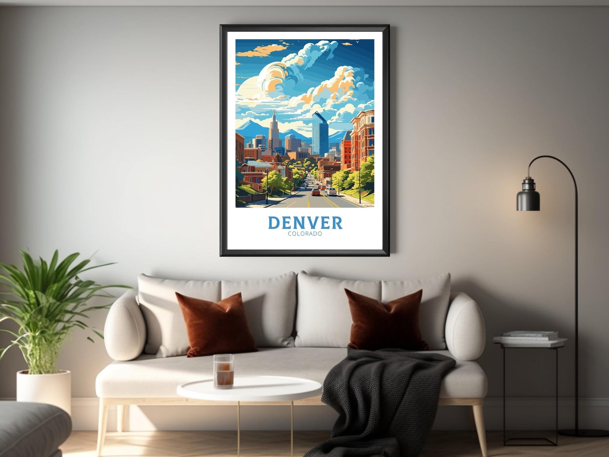 Intégrez la beauté et l'énergie de la capitale du Colorado à votre intérieur avec notre affiche de voyage Denver . Cette œuvre met en valeur la skyline de Denver, ses monuments emblématiques et les majestueuses montagnes Rocheuses. Parfaite pour les voyageurs, les citadins et les amateurs de décoration inspirée du Colorado, elle apportera une touche de charme urbain et naturel vibrant à votre maison, votre bureau ou votre mur de galerie.