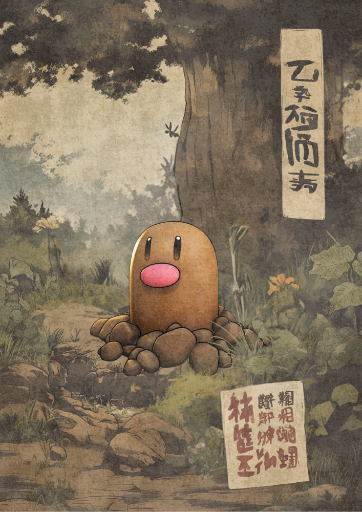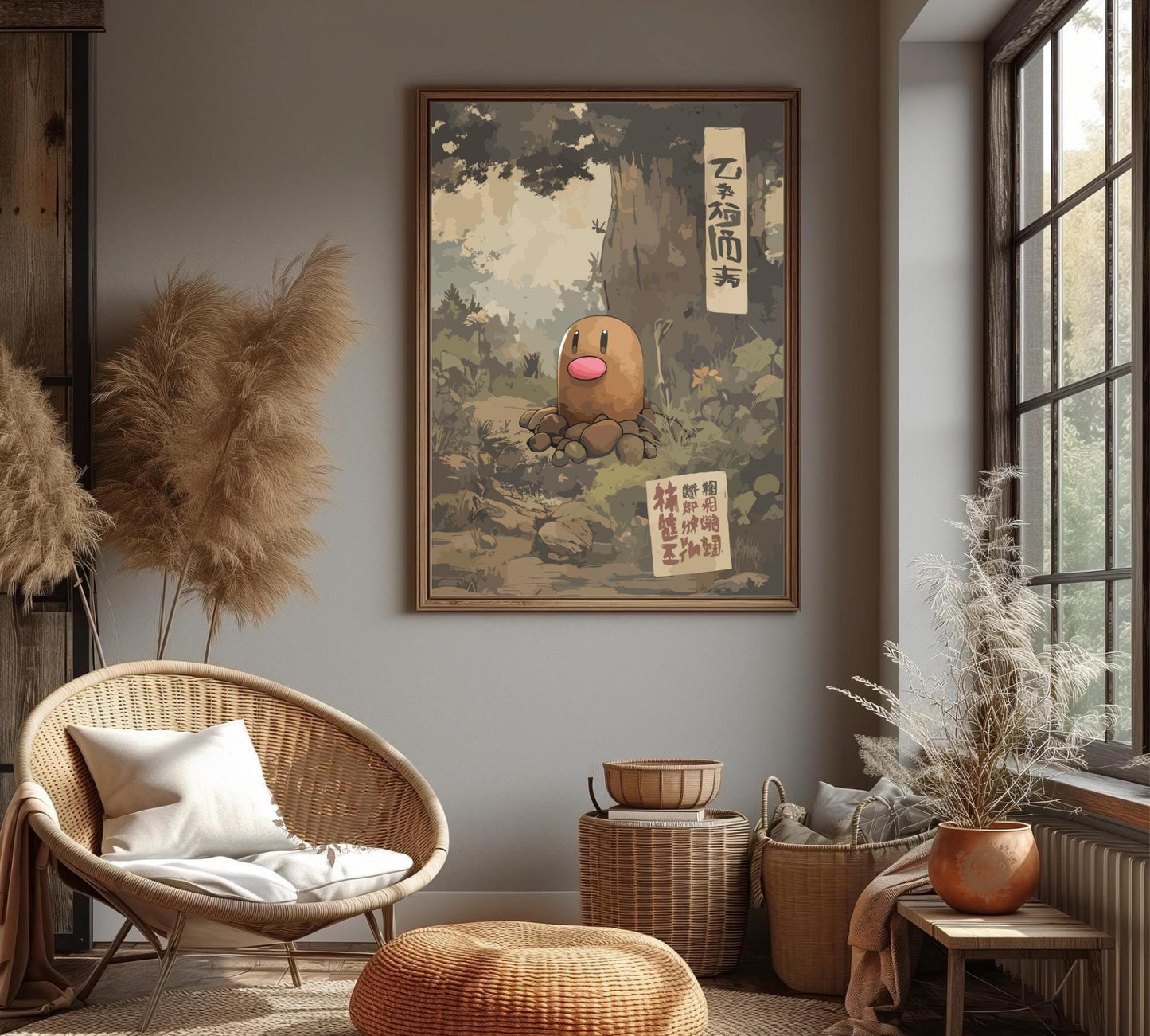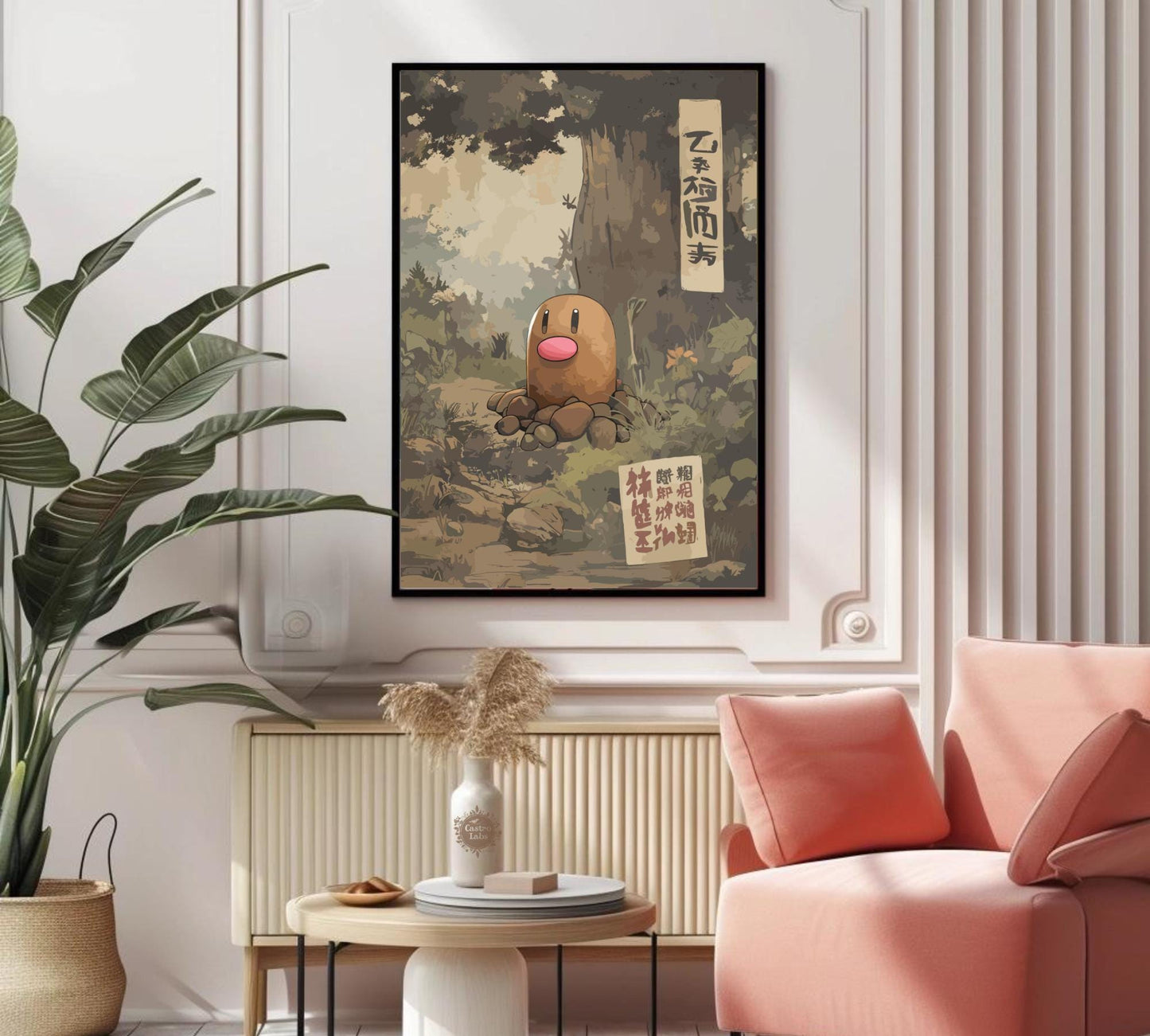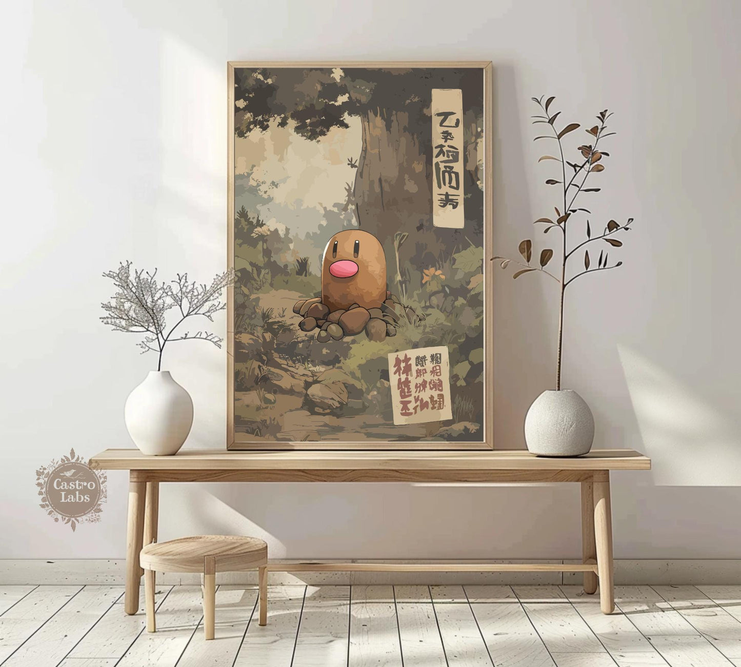 Affiche Pokémon Diglett - Illustration d'anime de style japonais