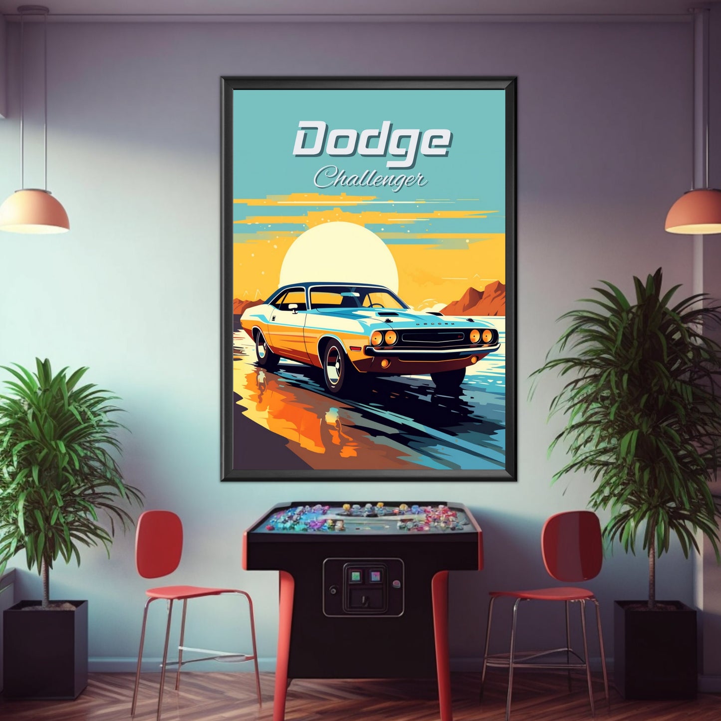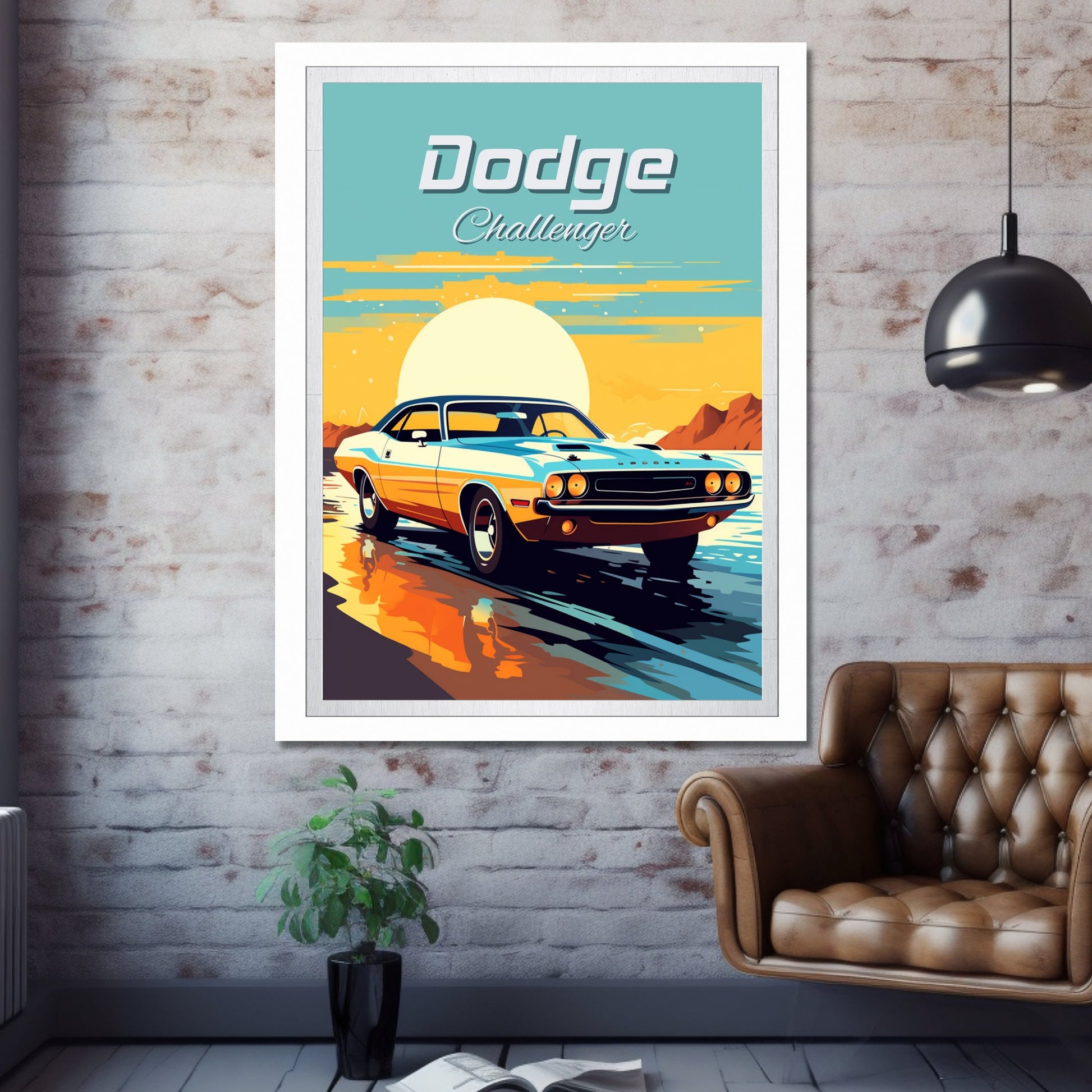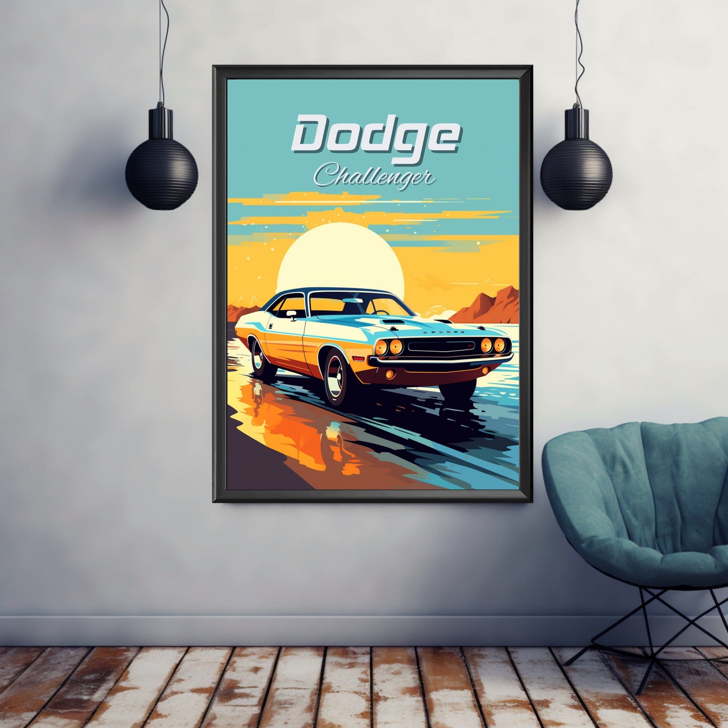 Affiche Dodge Challenger – Impression d'art mural représentant une muscle car américaine classique