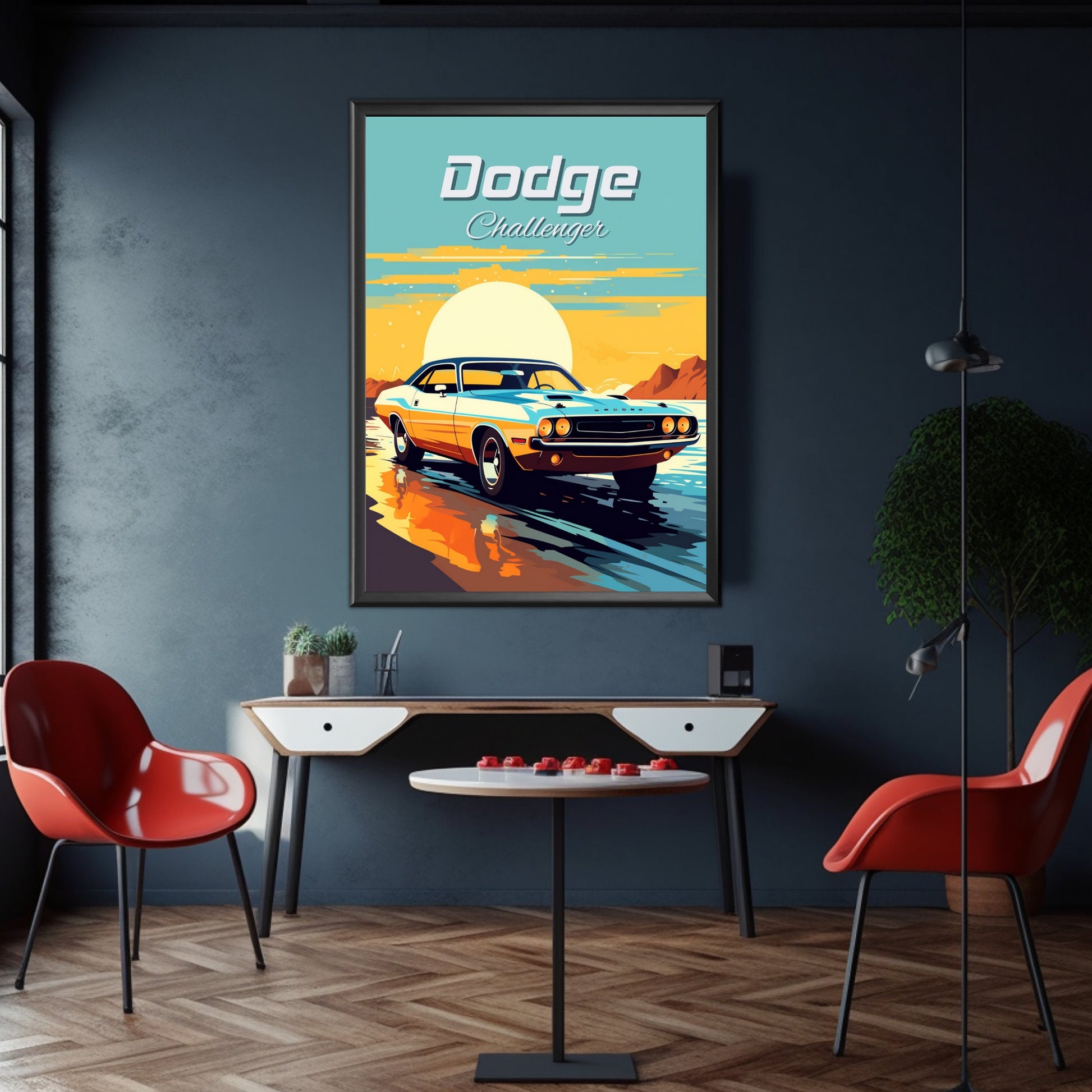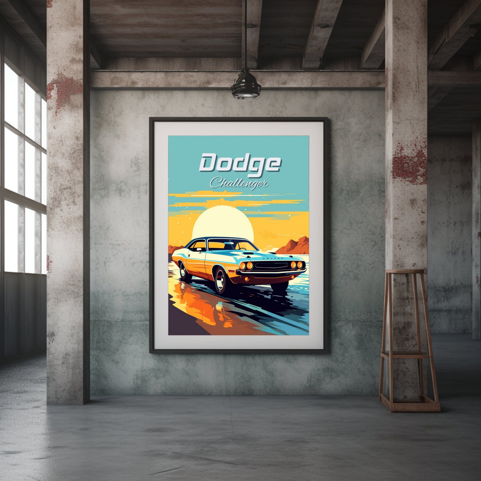 L' affiche Dodge Challenger est l'œuvre d'art murale idéale pour les amateurs de muscle cars, les collectionneurs de voitures anciennes et les passionnés de performances américaines classiques. Mettant en valeur le design audacieux et la puissance brute de la légendaire Dodge Challenger , cette impression de qualité supérieure célèbre l'âge d'or des muscle cars américaines . Idéale pour décorer un garage , un man cave , un showroom ou tout autre espace dédié aux voitures de collection , cette affiche murale Challenger apporte puissance et histoire à vos murs.