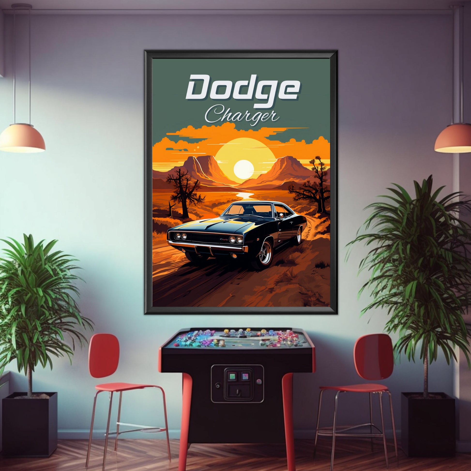 Affiche de voiture Dodge Charger – Affiche murale classique américaine