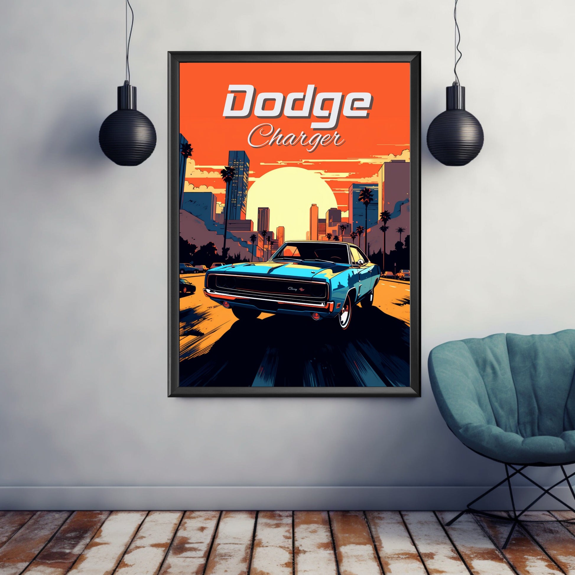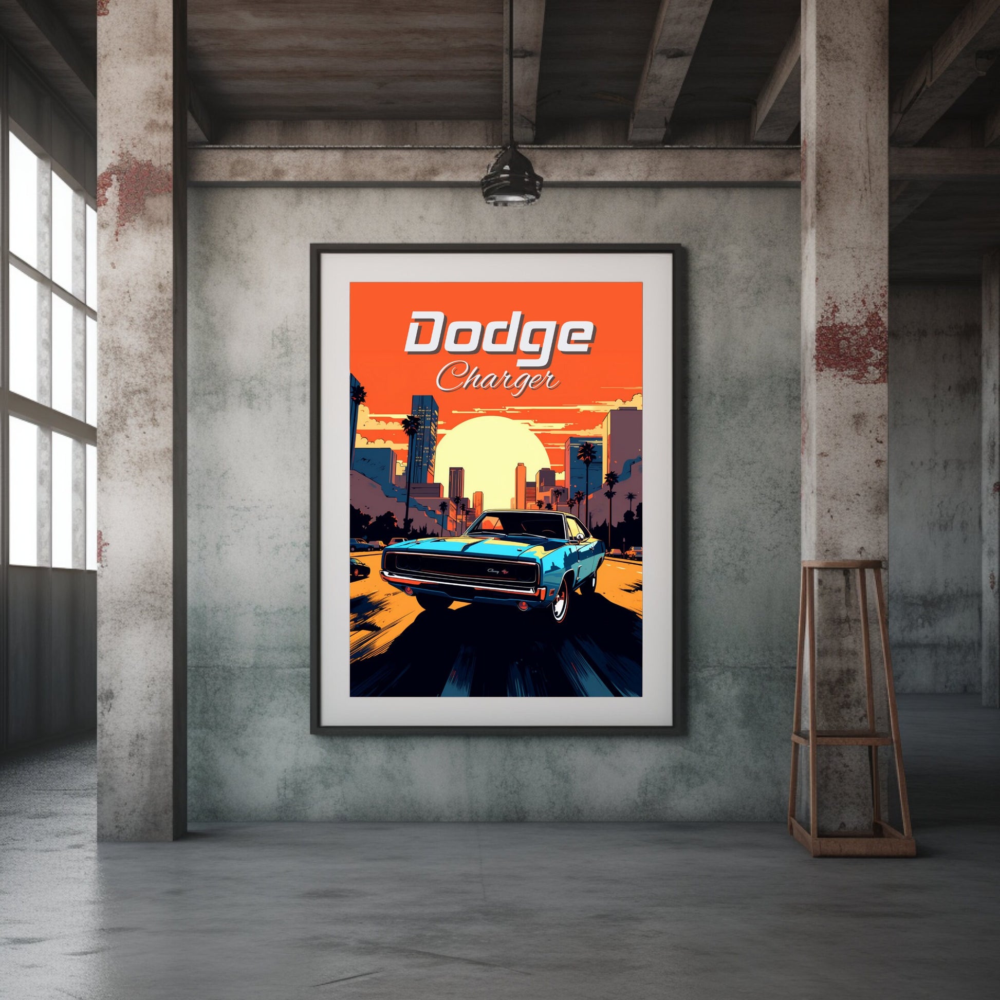 Affiche Dodge Charger Sunset – Impression d'art mural classique