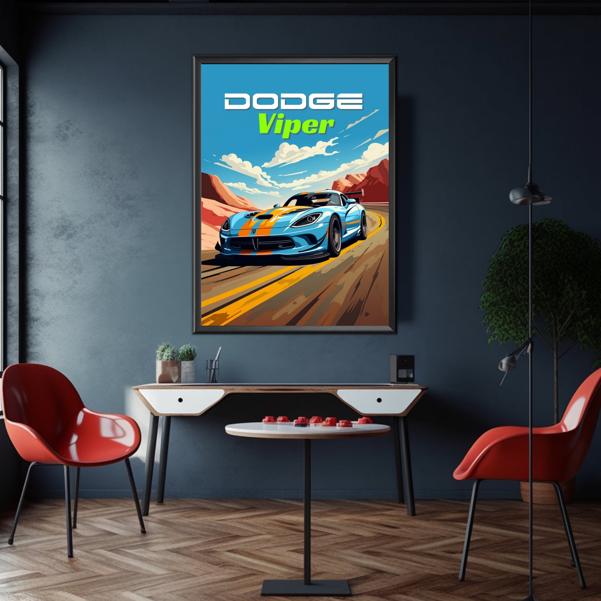 Affiche Dodge Viper – Impression d'art mural de voiture de sport américaine classique