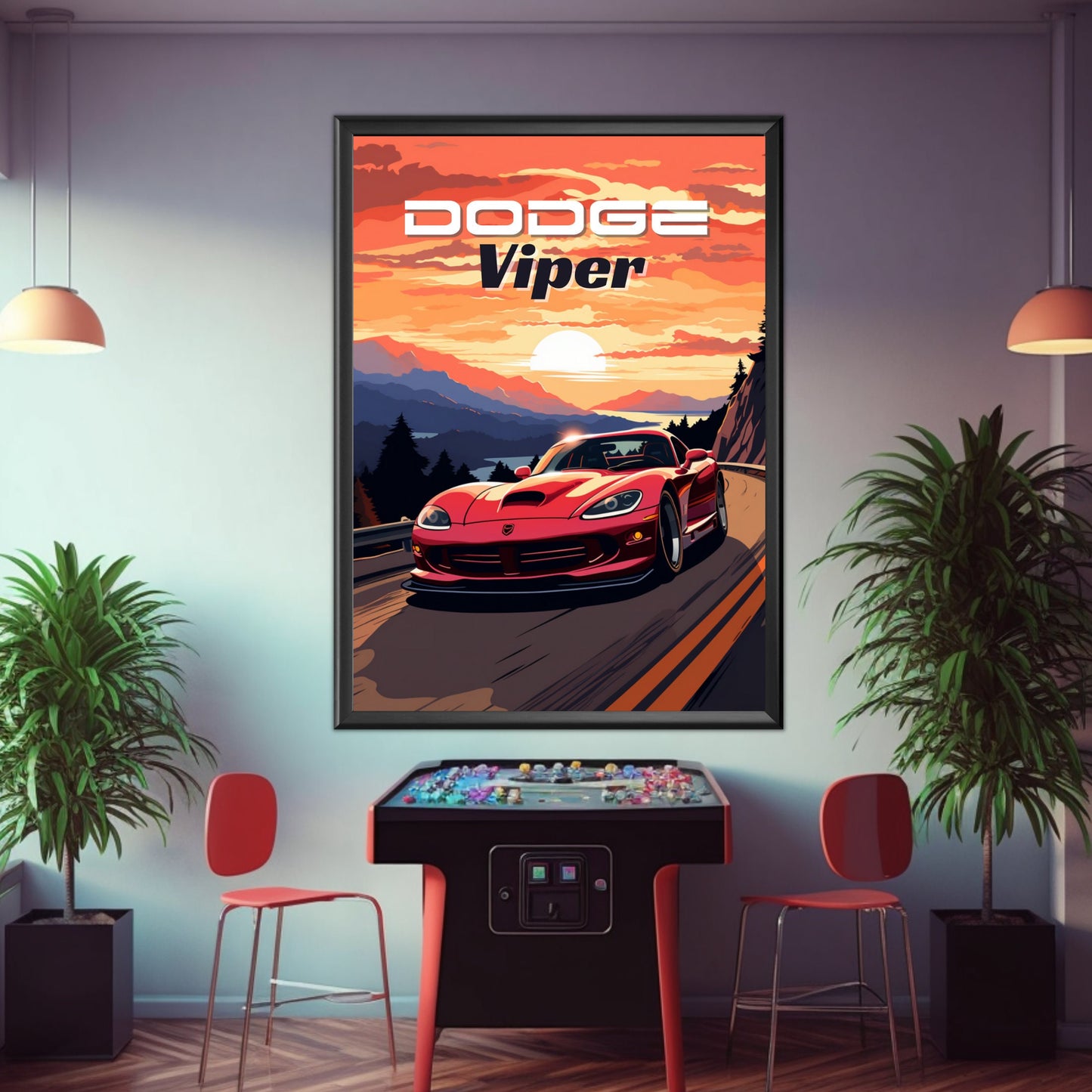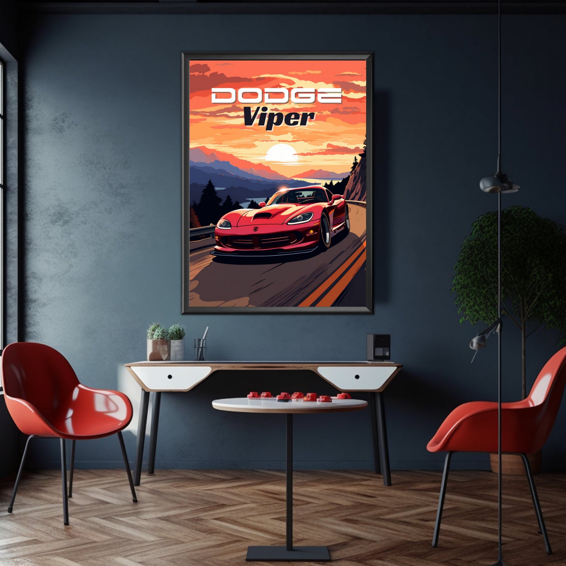 Affiche Dodge Viper – Affiche murale classique de voiture de sport américaine