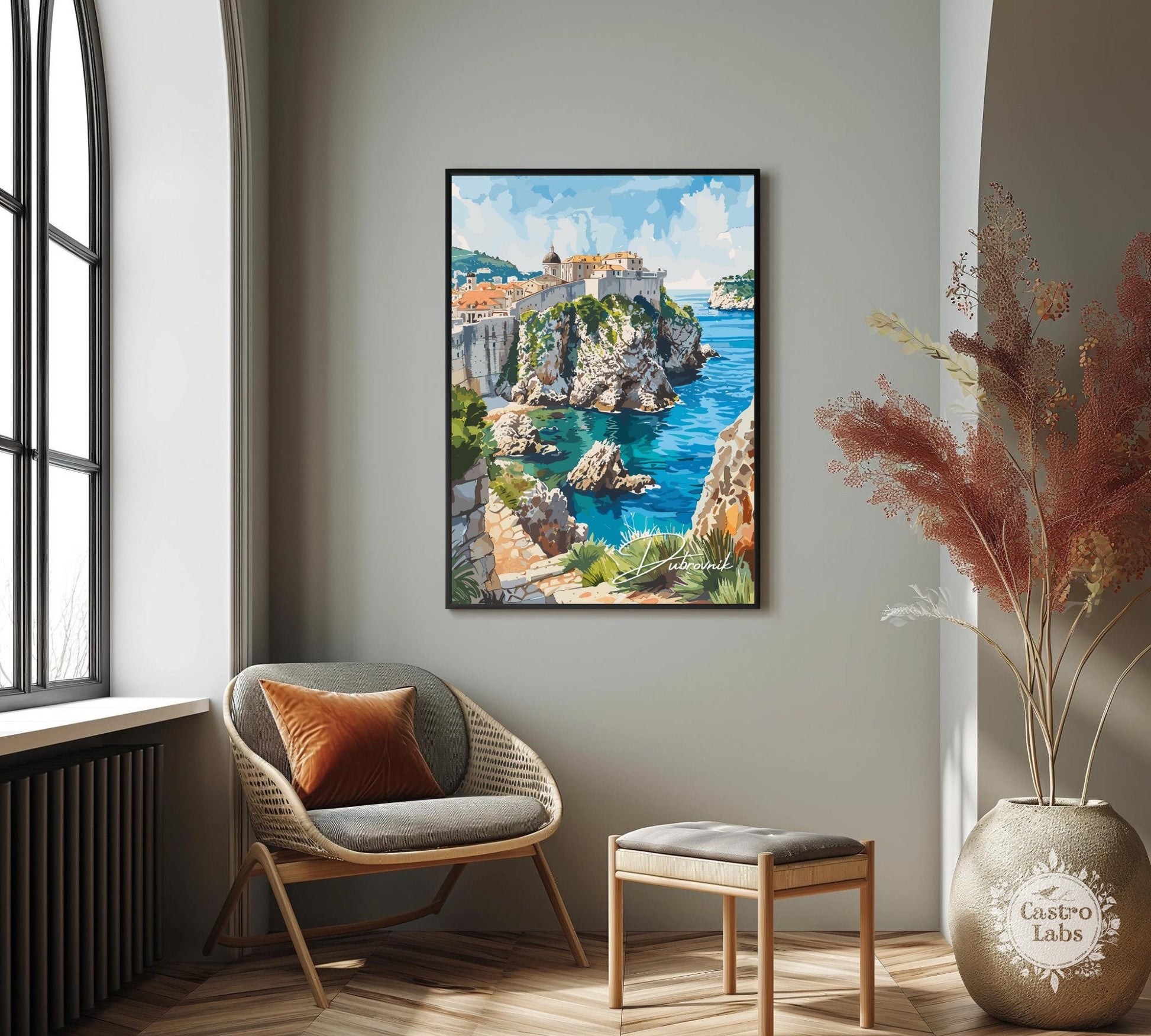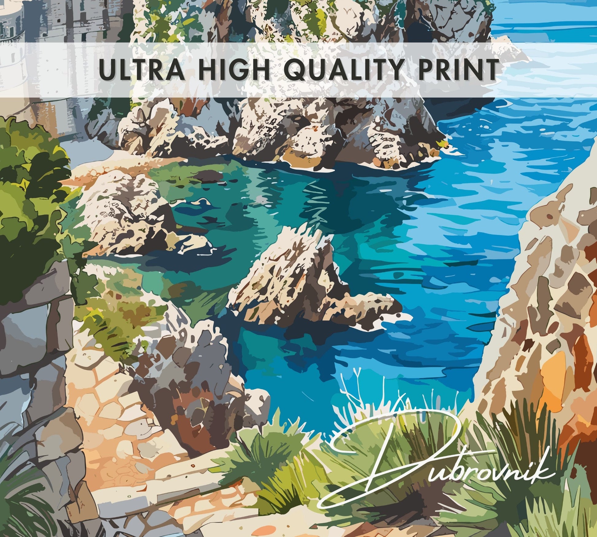 Célébrez la magie de Dubrovnik avec cette élégante affiche de voyage.