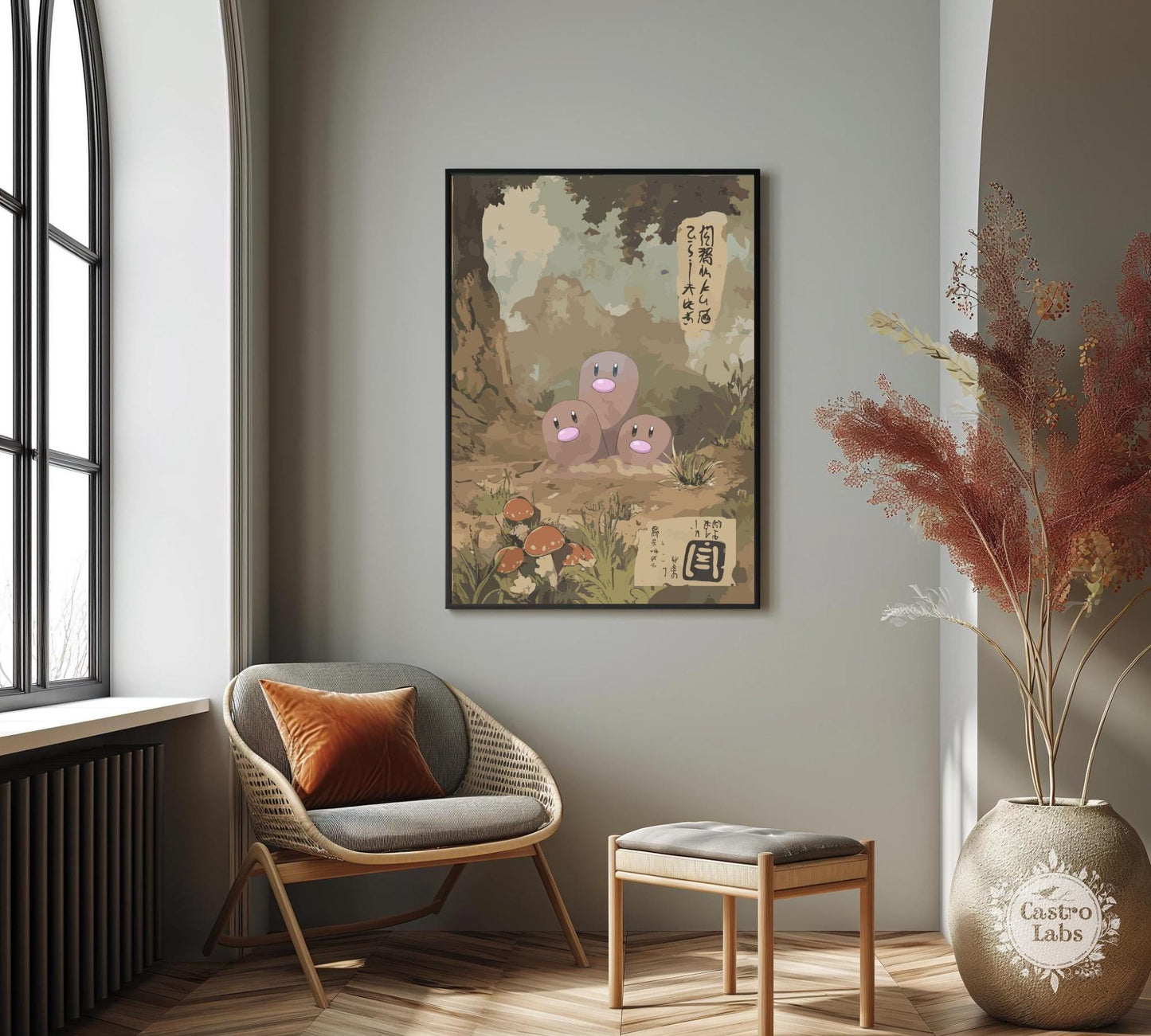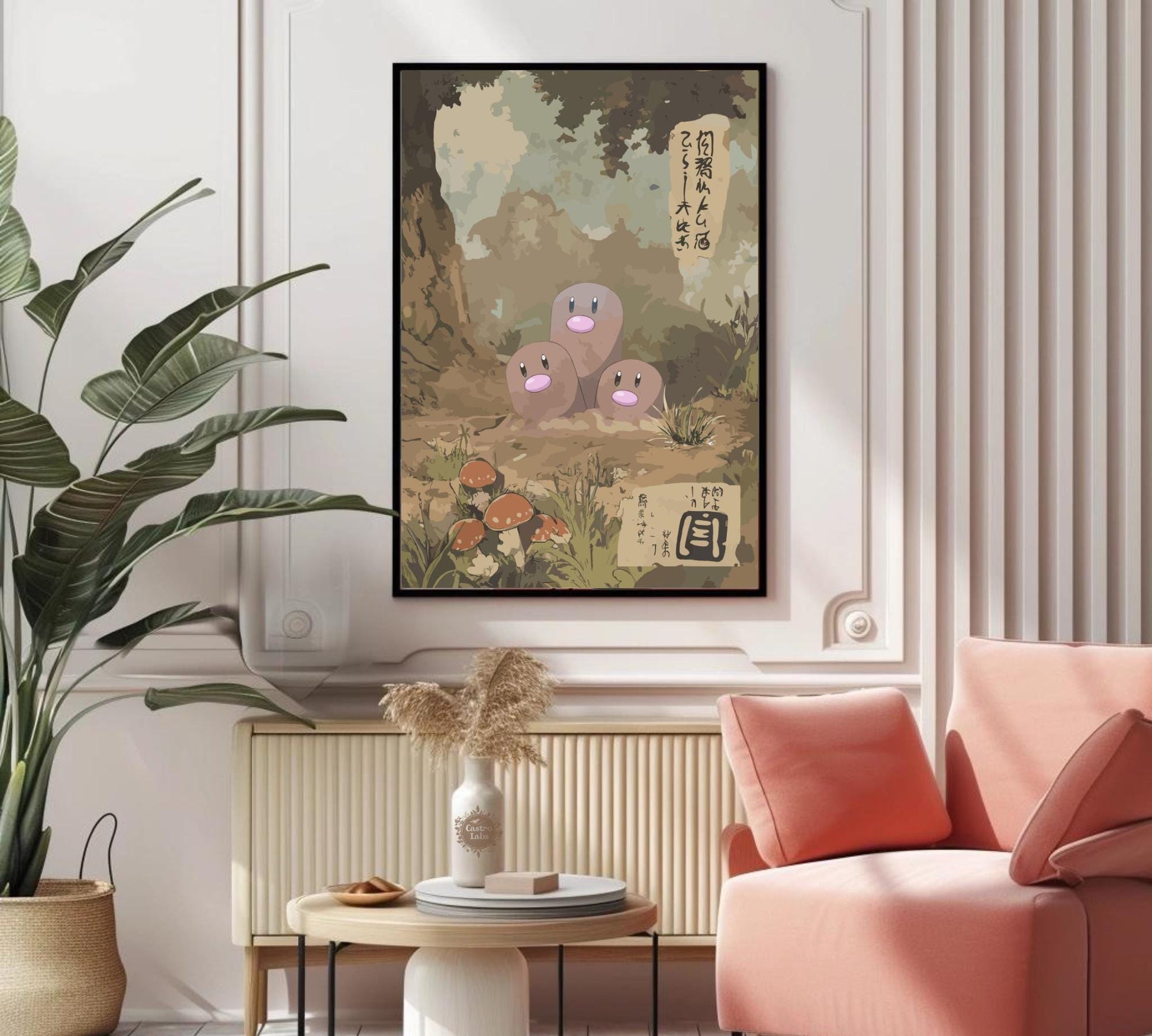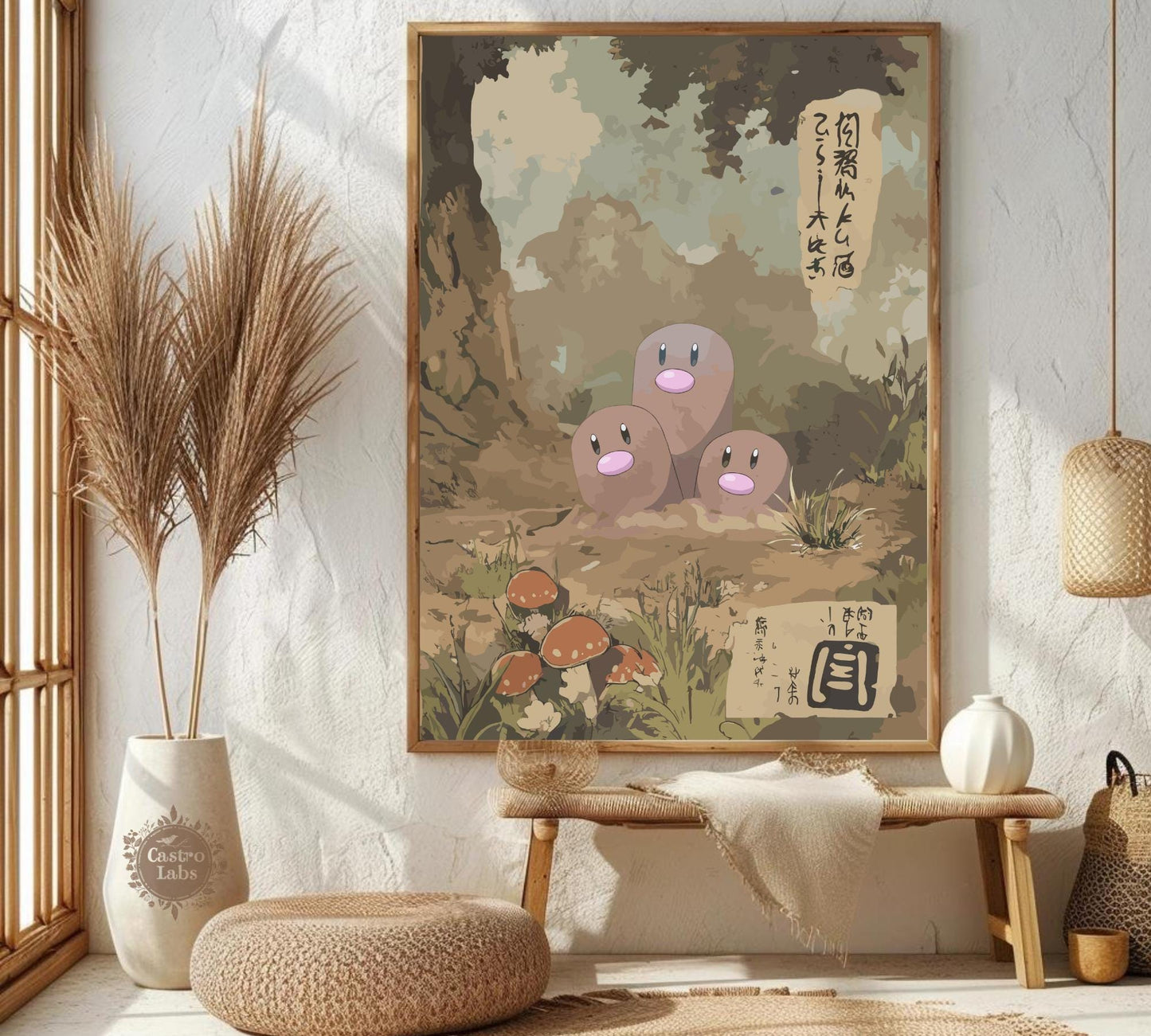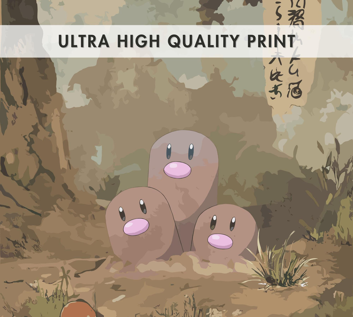 Affiche Pokémon Trio-Dug – Illustration d'anime de style japonais